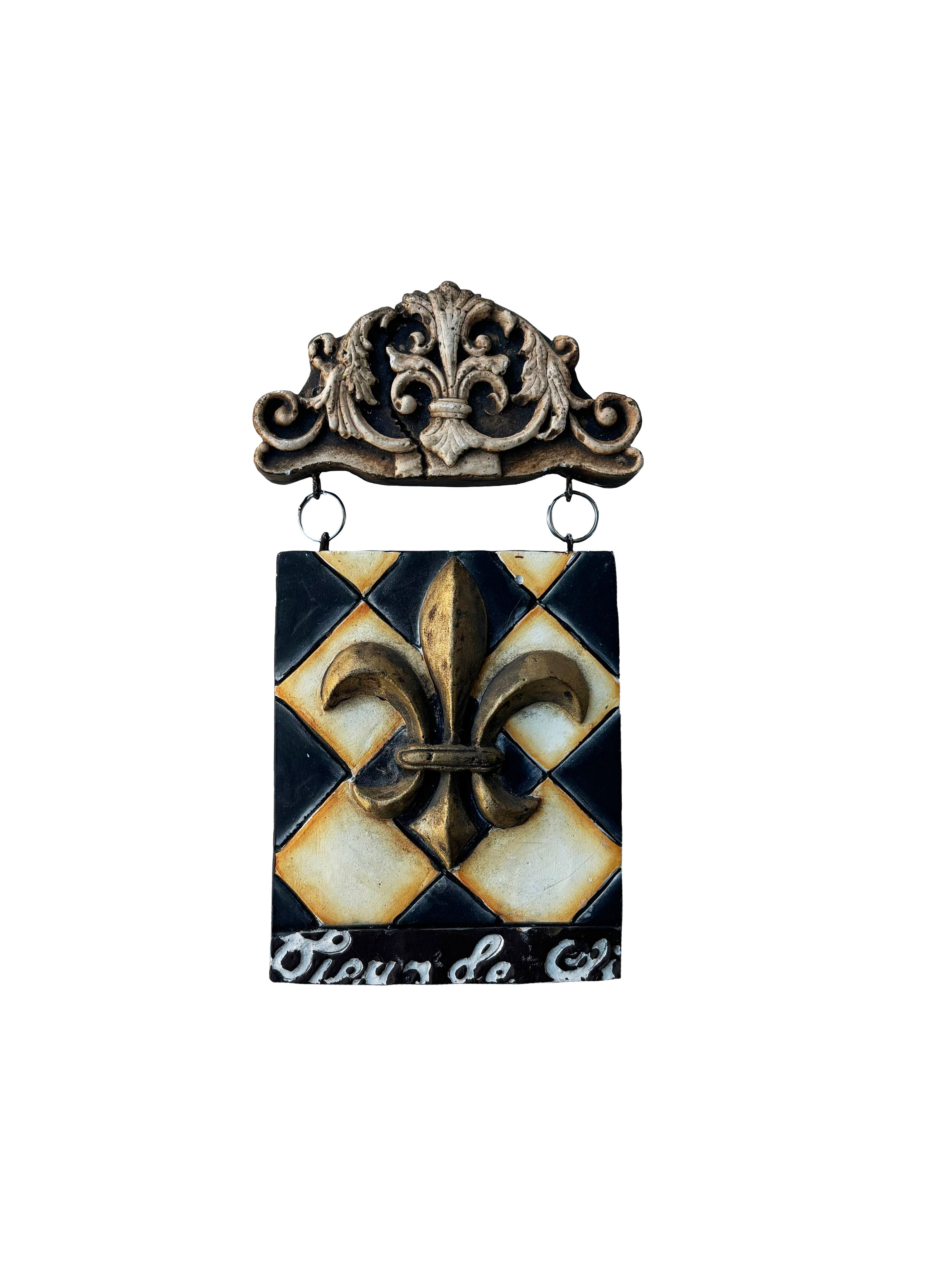Get the perfect souvenir to commemorate your time in New Orleans!! This plaque features a fleur de lis on a black and gold checkered background.