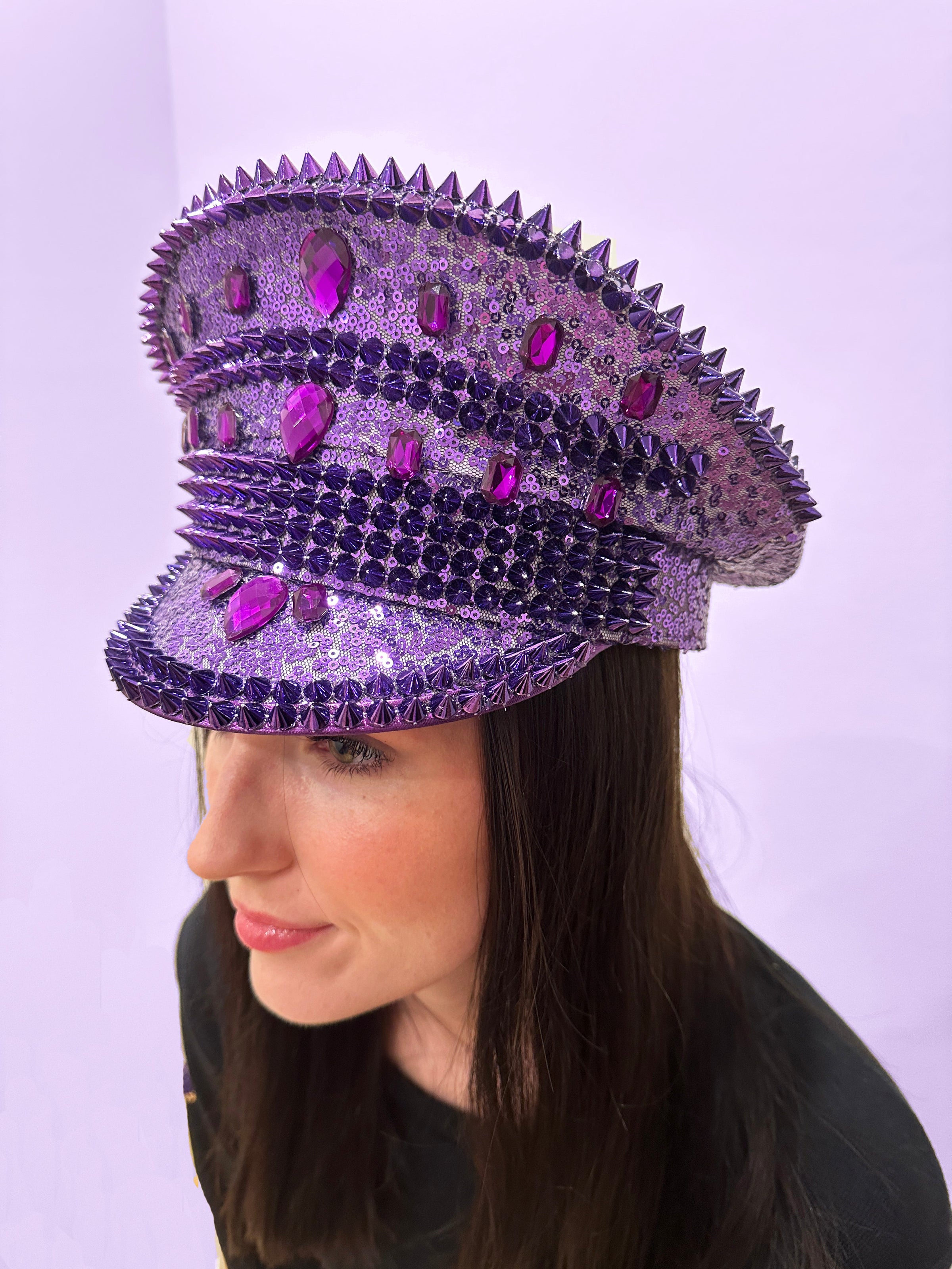 Conduct your own symphony in style with this Purple Conductor Hat! Featuring luxurious sequins, this hat is the perfect accessory to set you apart from the crowd. Take the lead and stand out like a star!
