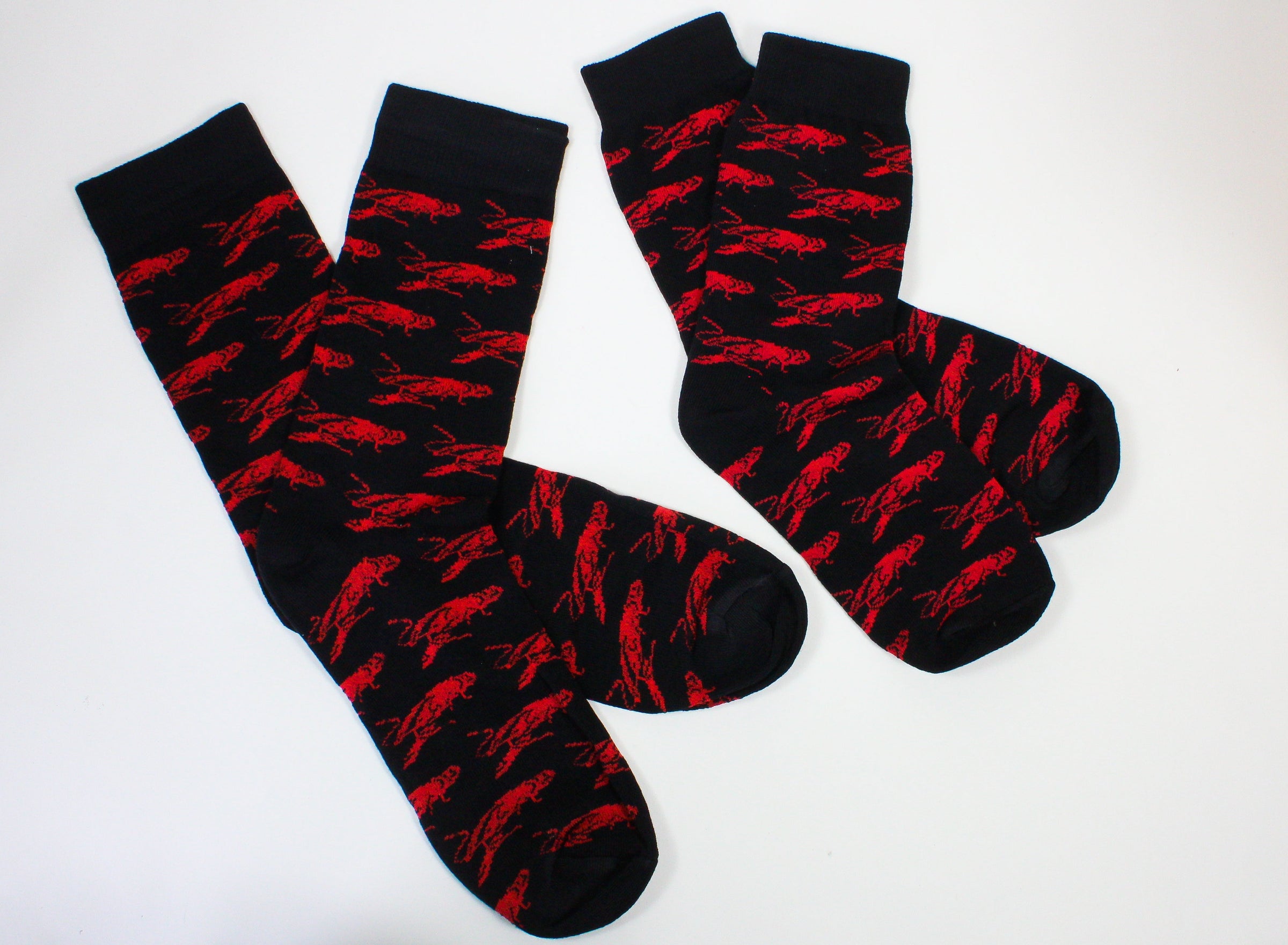 Rock out with your socks out! Enjoy these awesome red, crawfish themed socks!