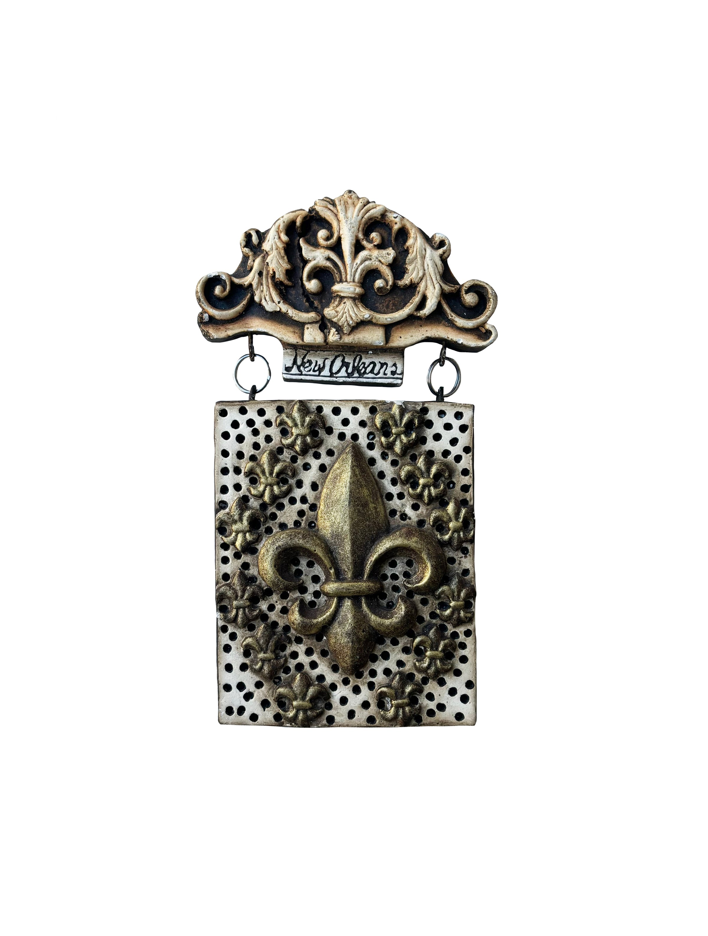 Get the perfect souvenir to commemorate your time in New Orleans!! This plaque features a dotted background and a large fleur de lis in the center surrounded by mini fleur de lis.