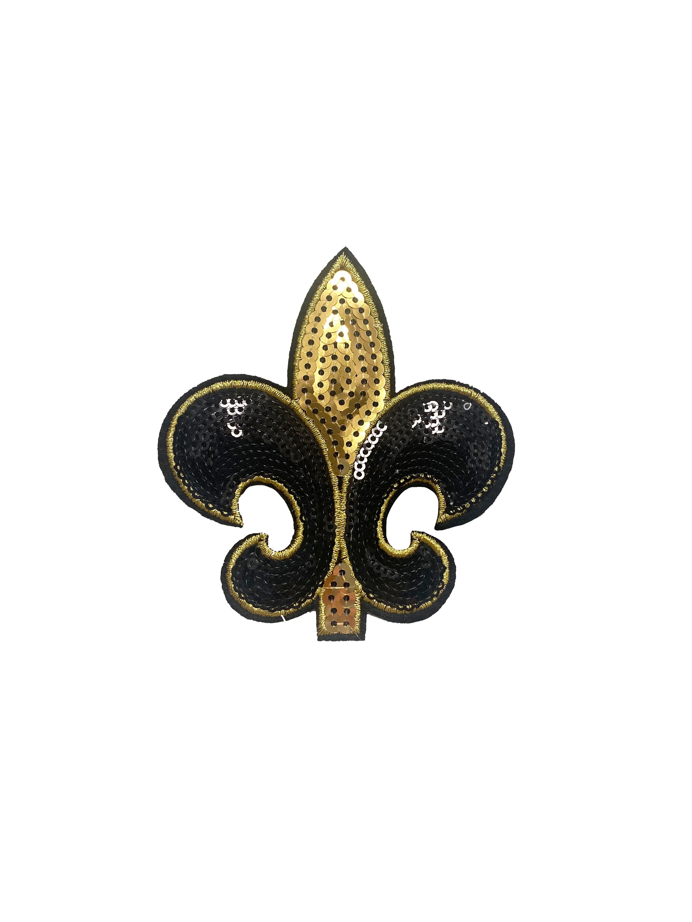 Fleur de Lis Sequin Iron On Patch Black and Gold - Large