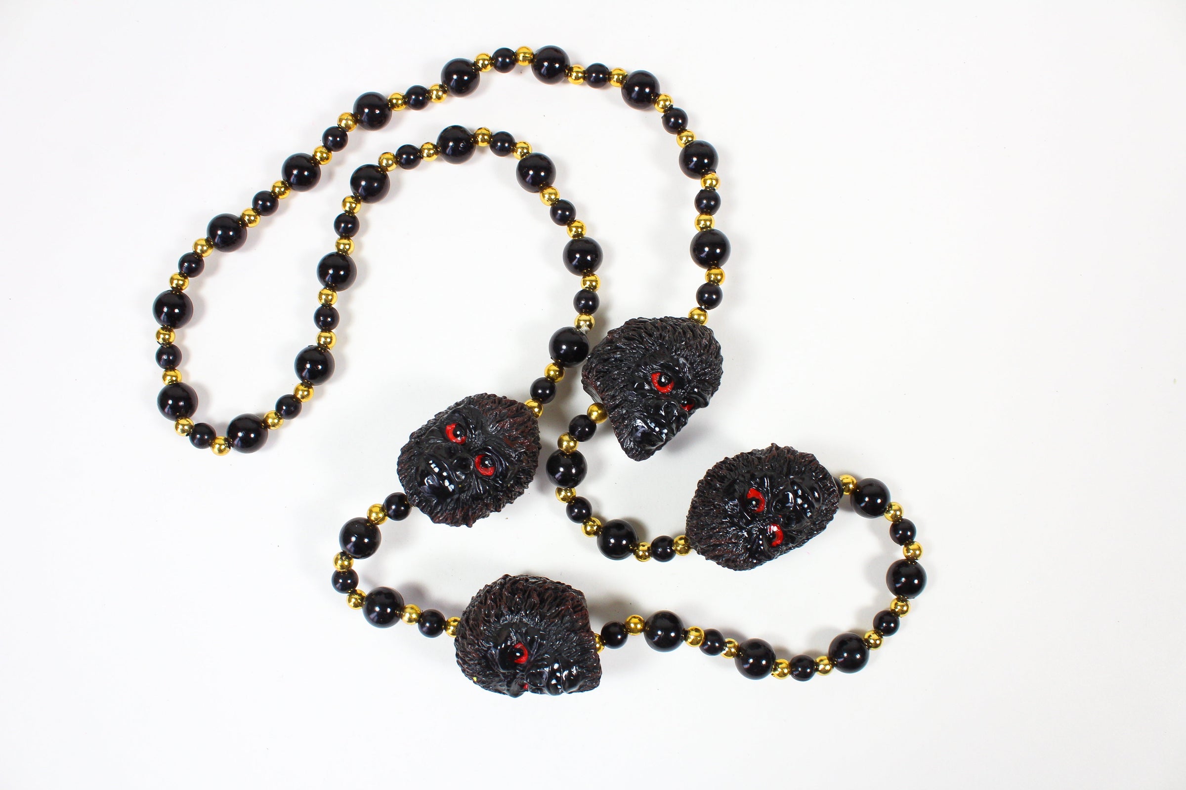 The bead features a black beaded chain with 4 gorilla heads with red eyes.