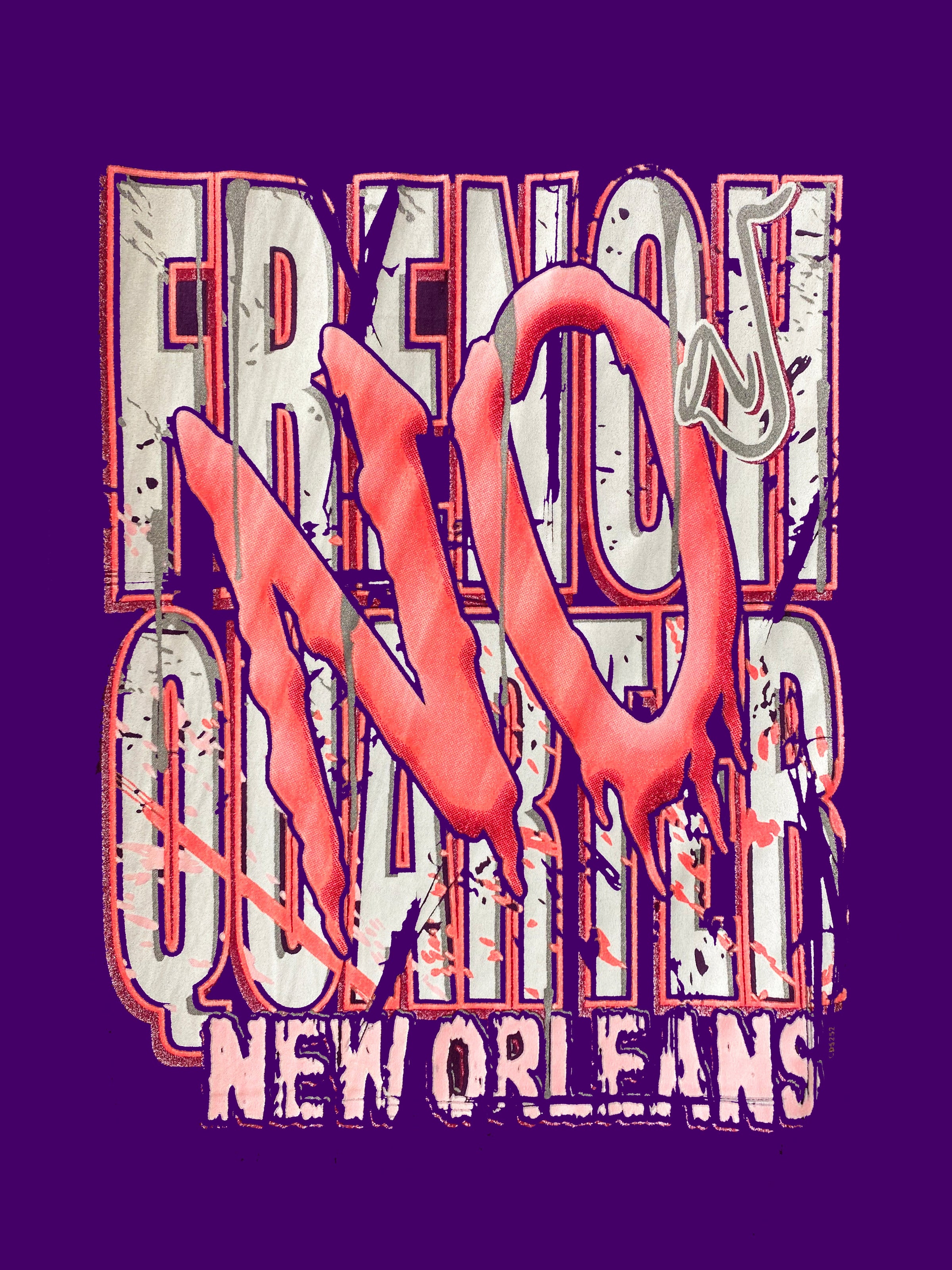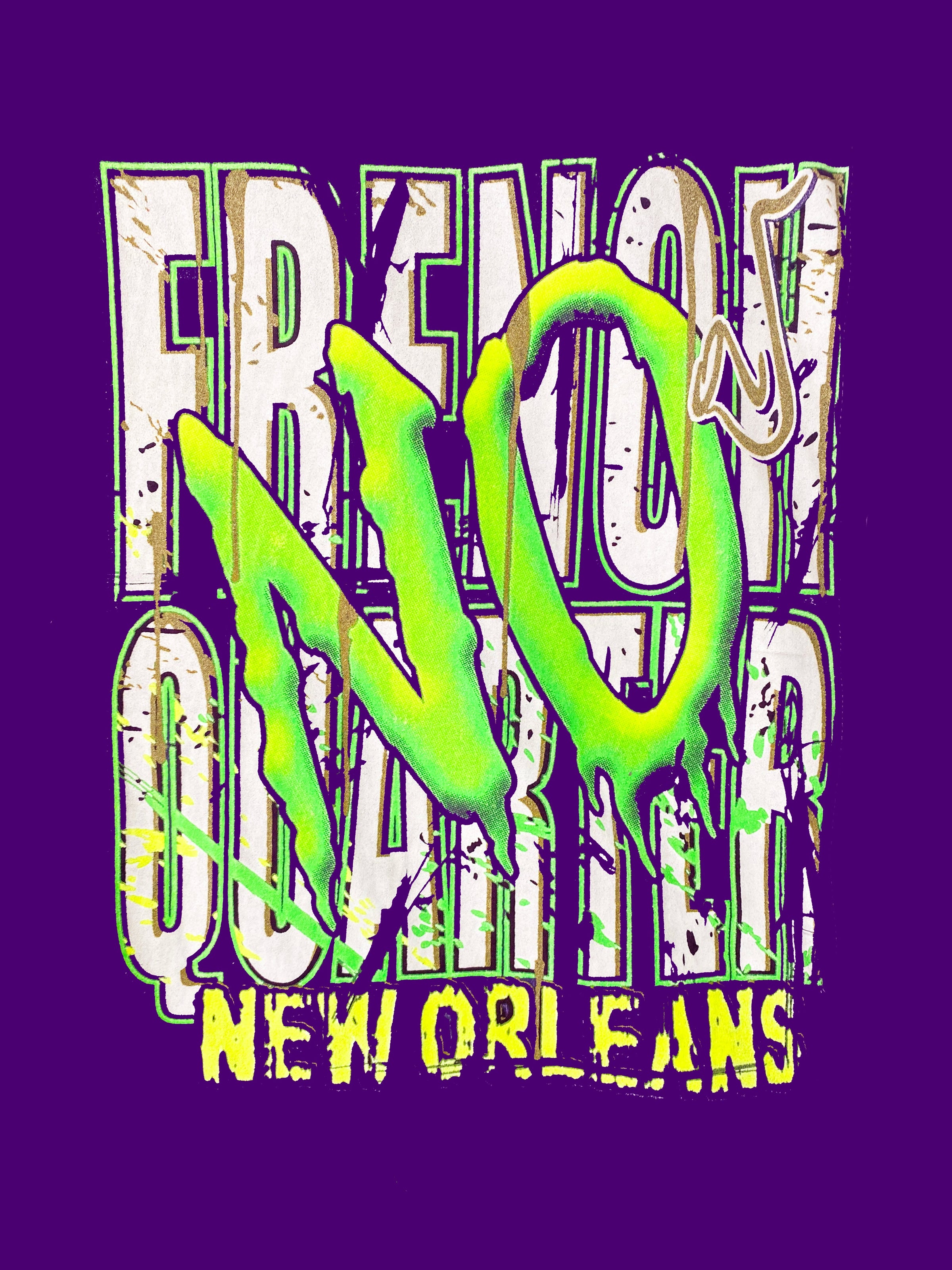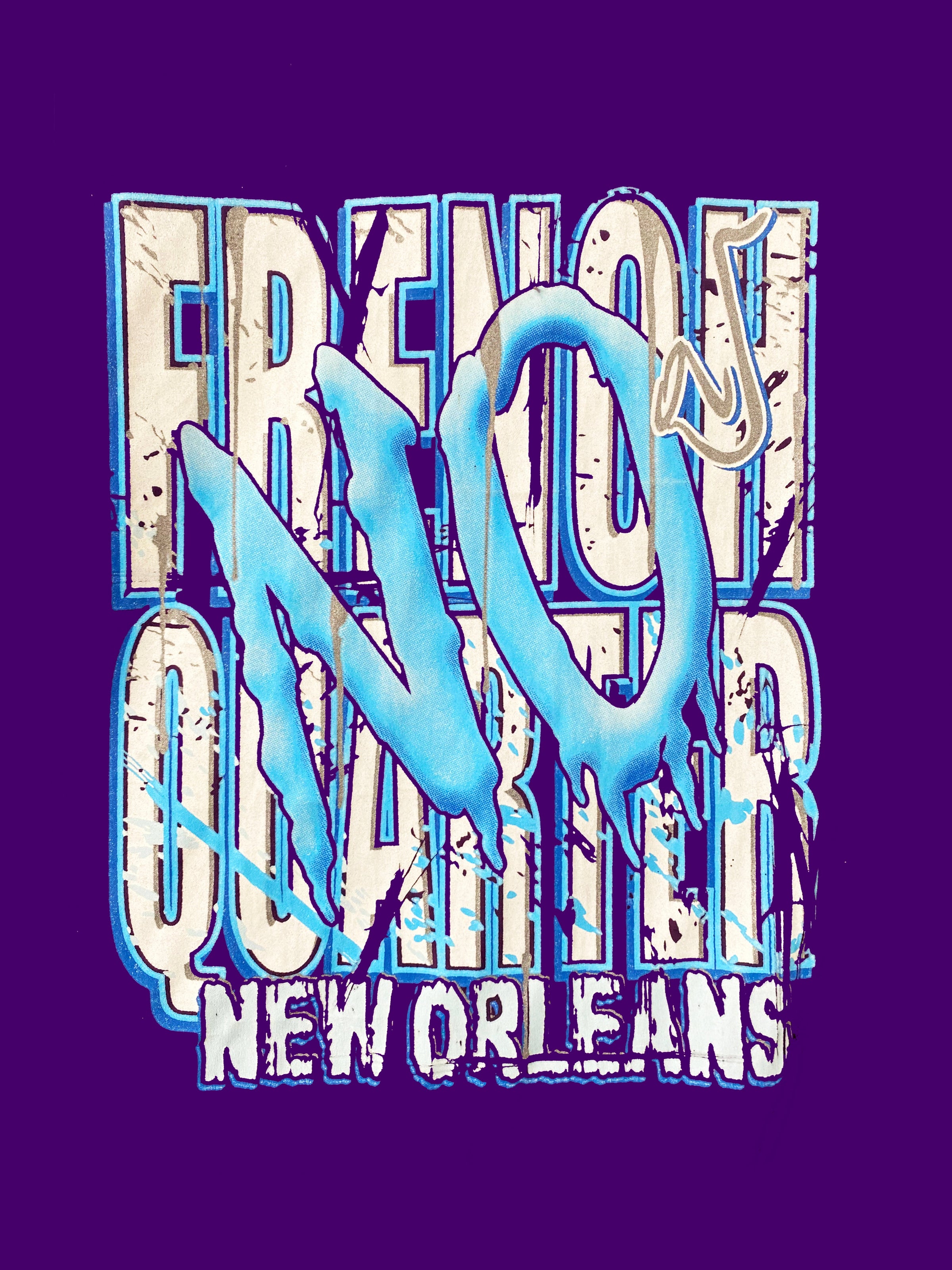 This New Orleans French Quarter N.O. T-Shirt features a striking graffiti style graphic with the iconic N.O. lettering. Show off your love for the Big Easy in style. Made with high-quality materials, this shirt is a must-have for any French Quarter lover.