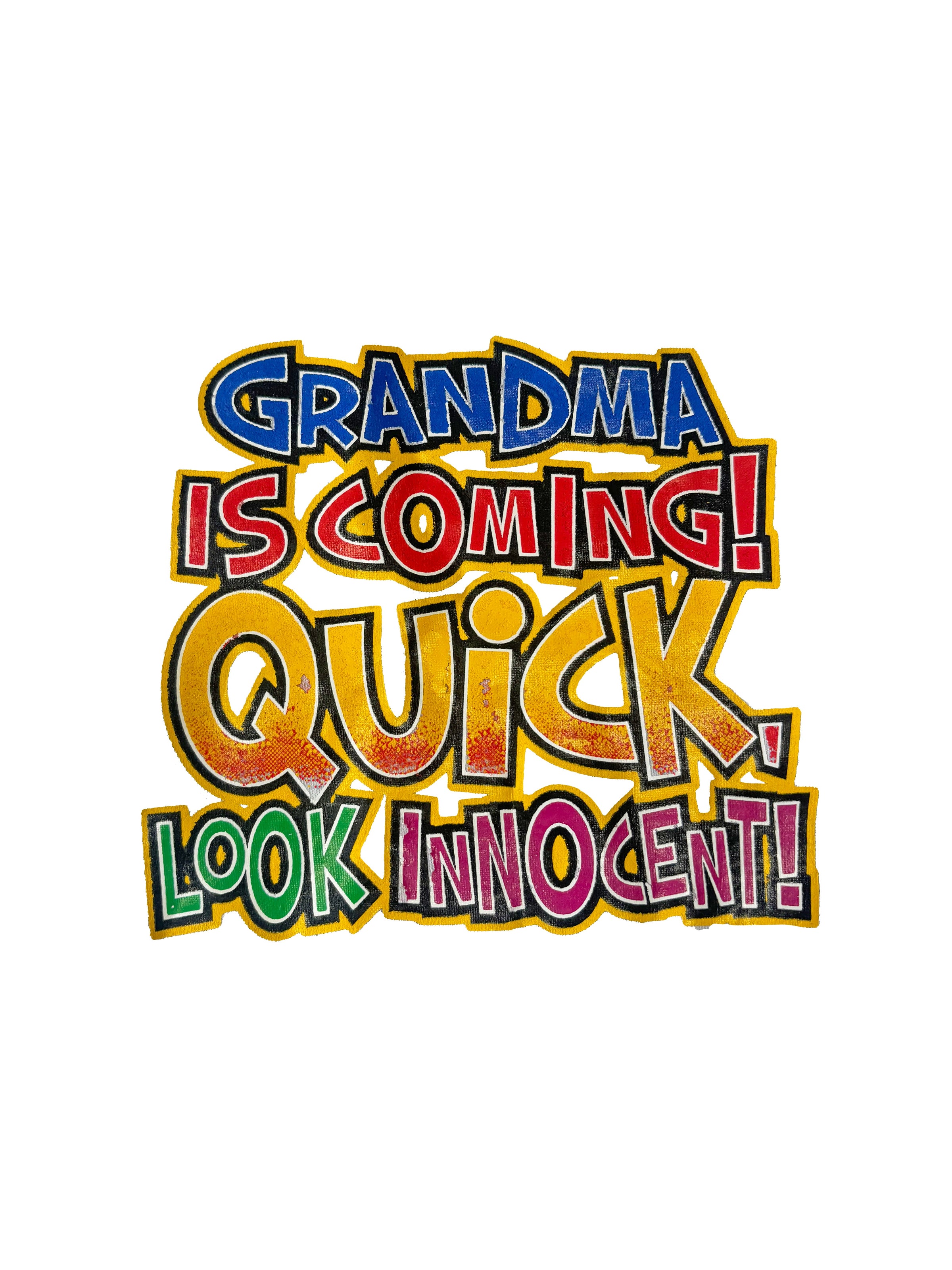 Get ready for grandma's visit with this playful t-shirt for kids. With its cheeky message, "Grandma Is Coming! Quick Look Innocent!", your little one will surely charm their way into grandma's heart. Perfect for family gatherings, photos, or just to make grandma smile.