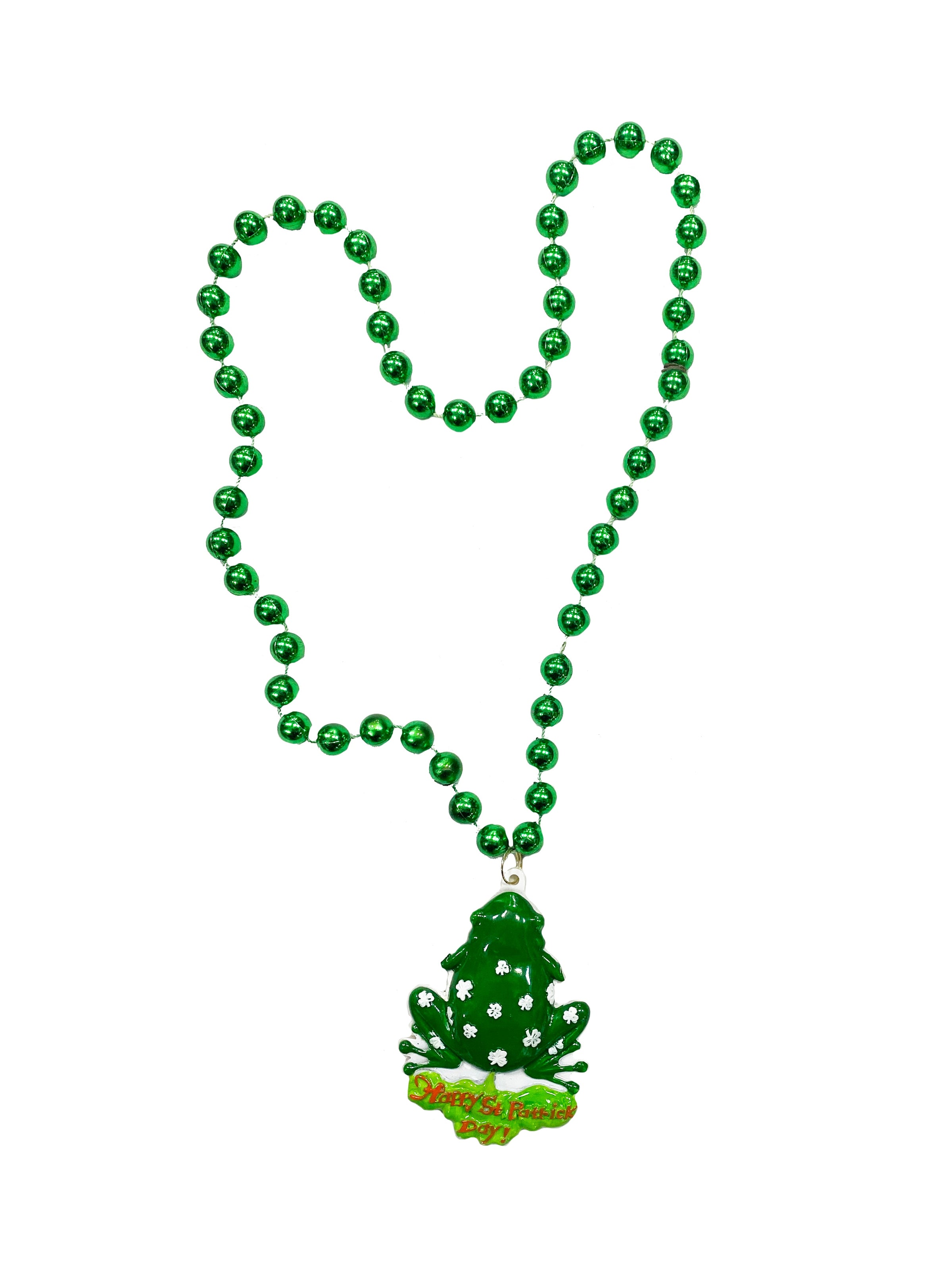 This jolly frog bead is the perfect accessory for your St. Patrick's Day festivities. With its four leaf clovers and vivid green color, this bead will add a playful touch to any outfit. Get ready to hop into the holiday spirit with this fun and festive accessory!