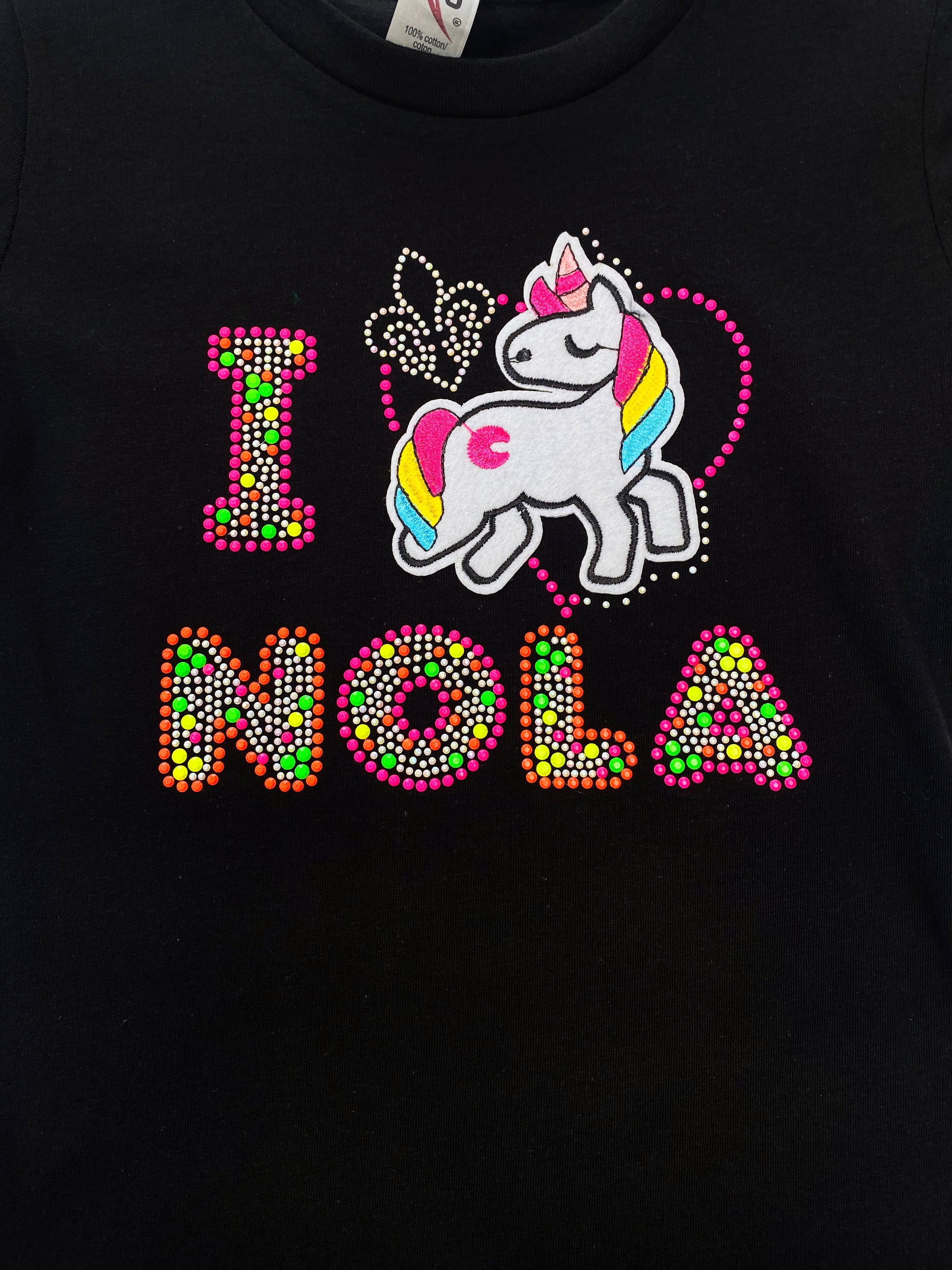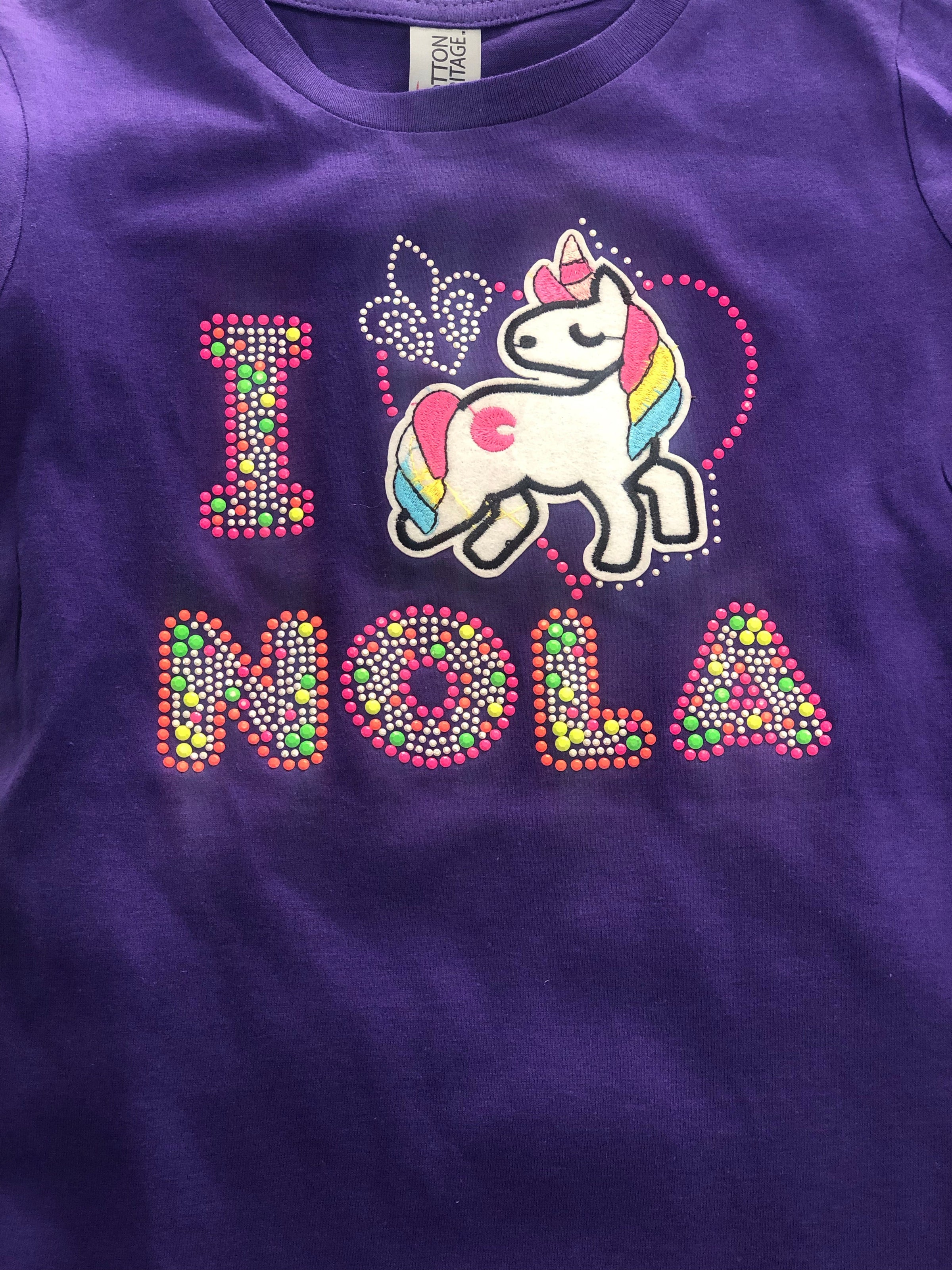 The sweetest little T-shirt for that special unicorn in your life... beautiful rhinestone print that come printed in multiple color T-Shirts