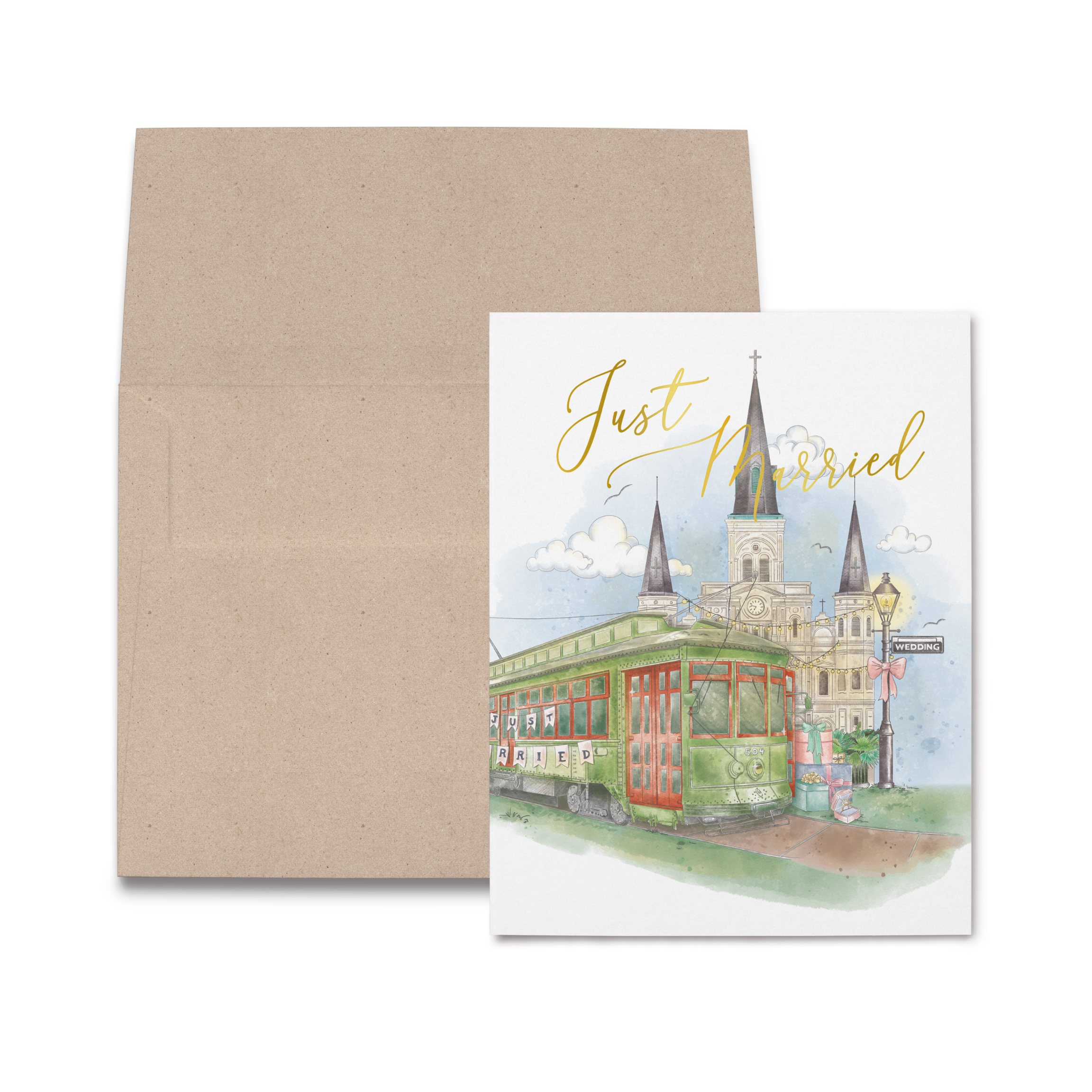 This wedding card is the ideal choice for a Nola Wedding! With elegant gold foil, it adds a touch of sophistication to any gift.