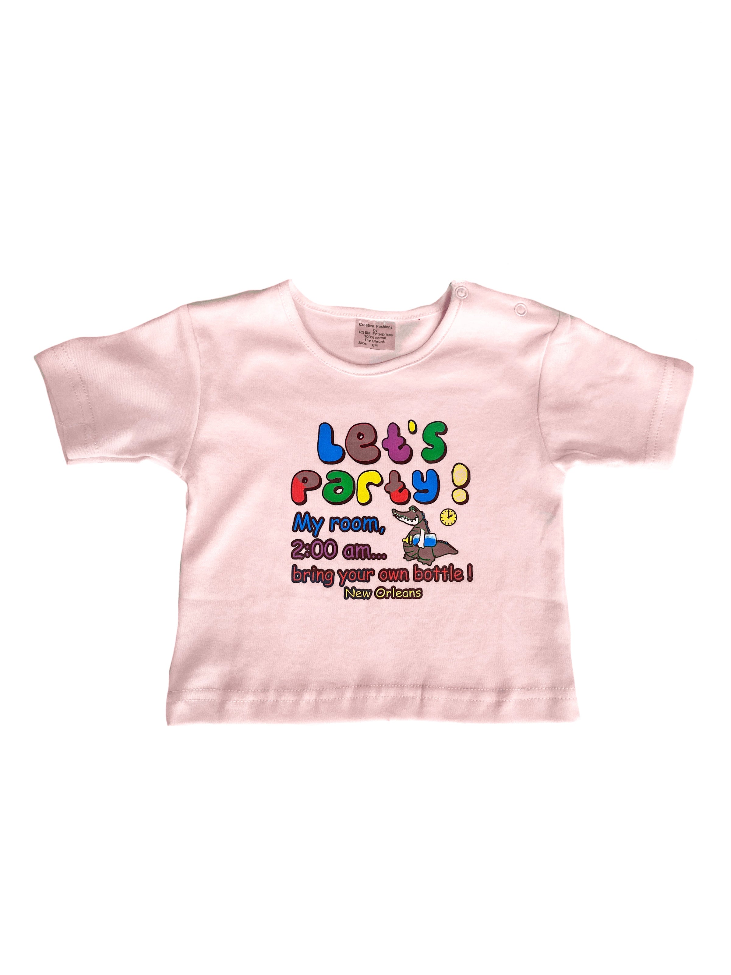 Get ready to party with our Let's Party Kid's T-Shirt! This unique t-shirt features a playful "Let's party" slogan and an alligator graphic, perfect for those 2am dance parties in your room. Don't forget to BYOB (bring your own bottle) and let the good times roll!