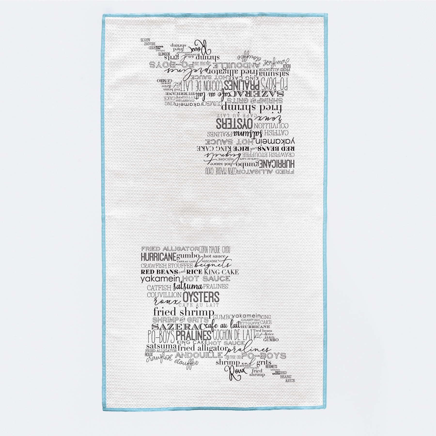 Bring the energy and artistry into your kitchen with Nola Tawk’s newly revamped kitchen towel. Designed for both style and performance, this eco-friendly kitchen towel is made from recycled plastics and features exclusive artwork by local New Orleans artists.
