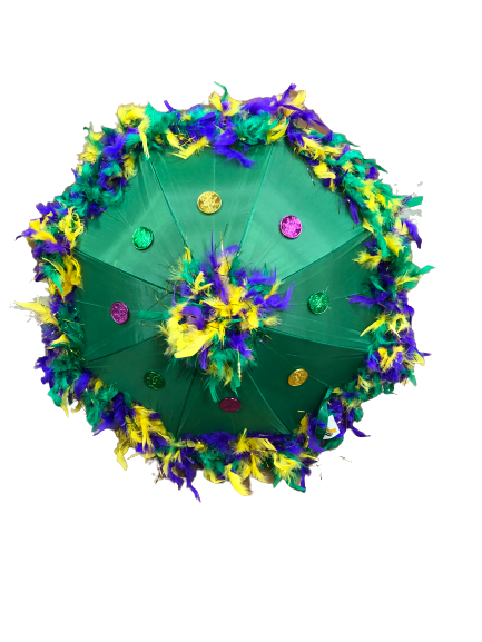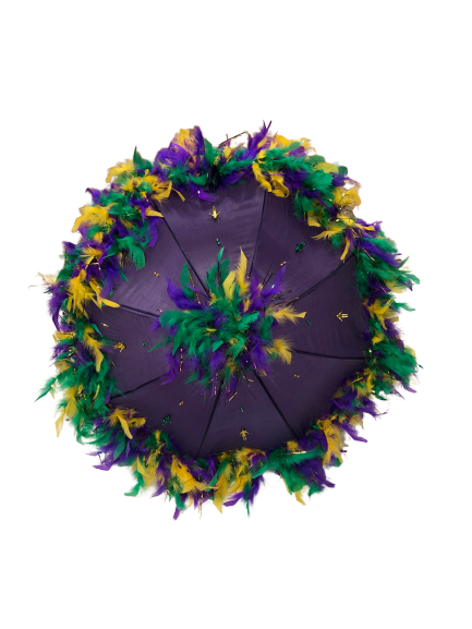 Mardi Gras Feathered Parasol - Purple, Green, and Gold Feathers