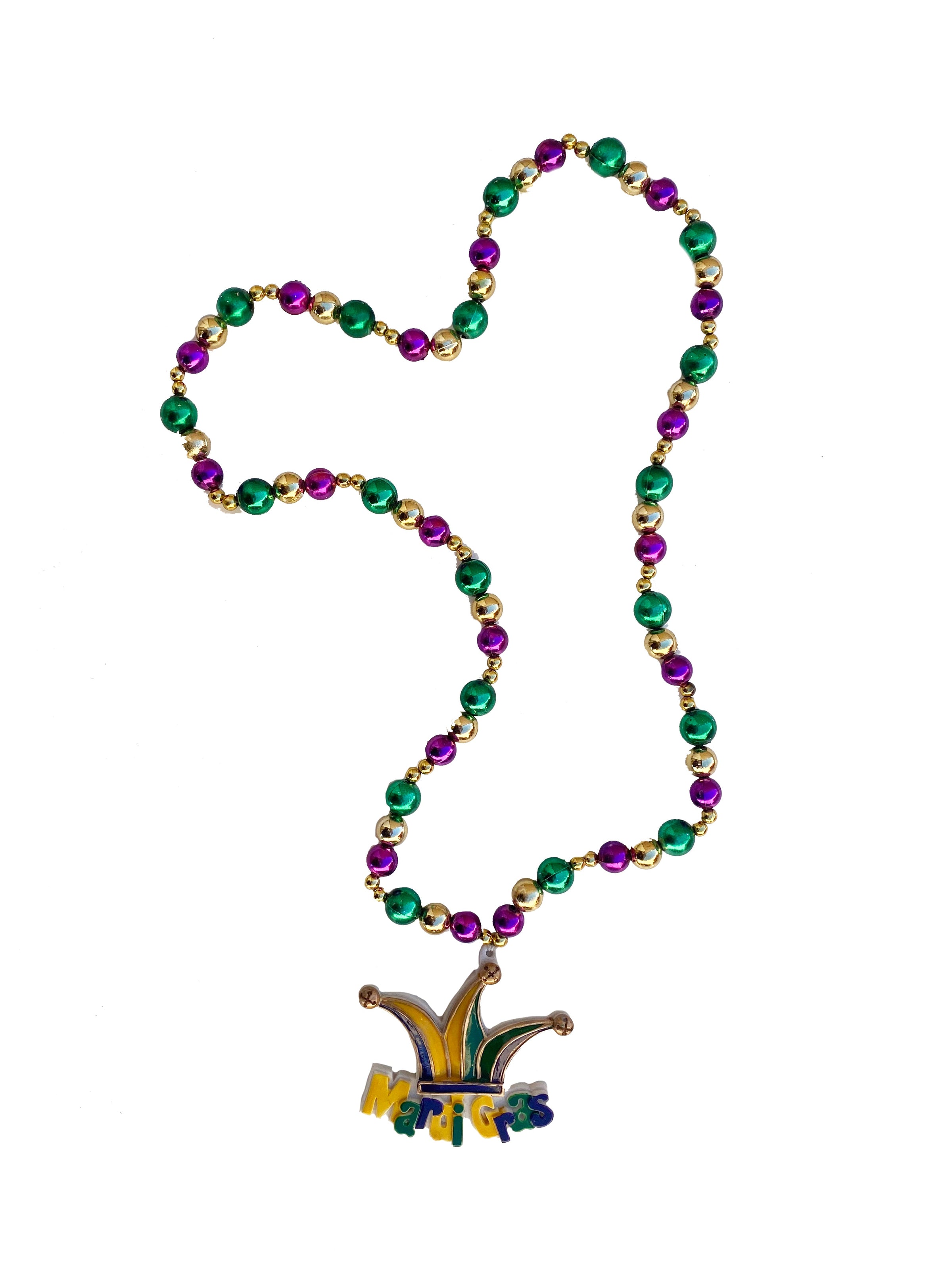 Get ready to party with our Mardi Gras Jester Hat bead! This quirky and playful hat features a fun jester design and is adorned with beads in the traditional Mardi Gras colors of purple, green, and gold. Stand out at your next celebration with this unique and festive accessory.