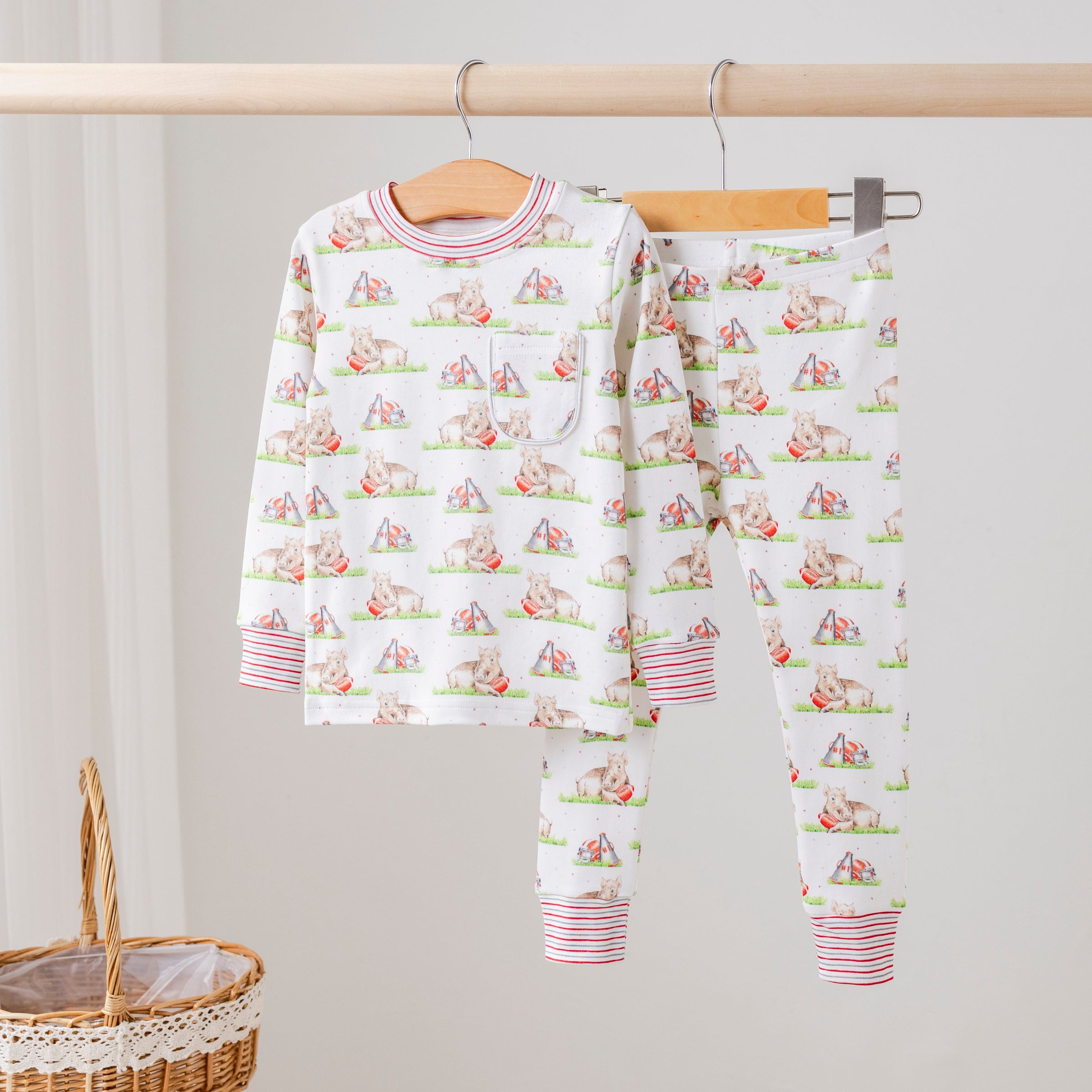 Drift off to sweet dreams of Razorback pride in our Mascot Mania in Arkansas Organic Cotton Pajama Set!
