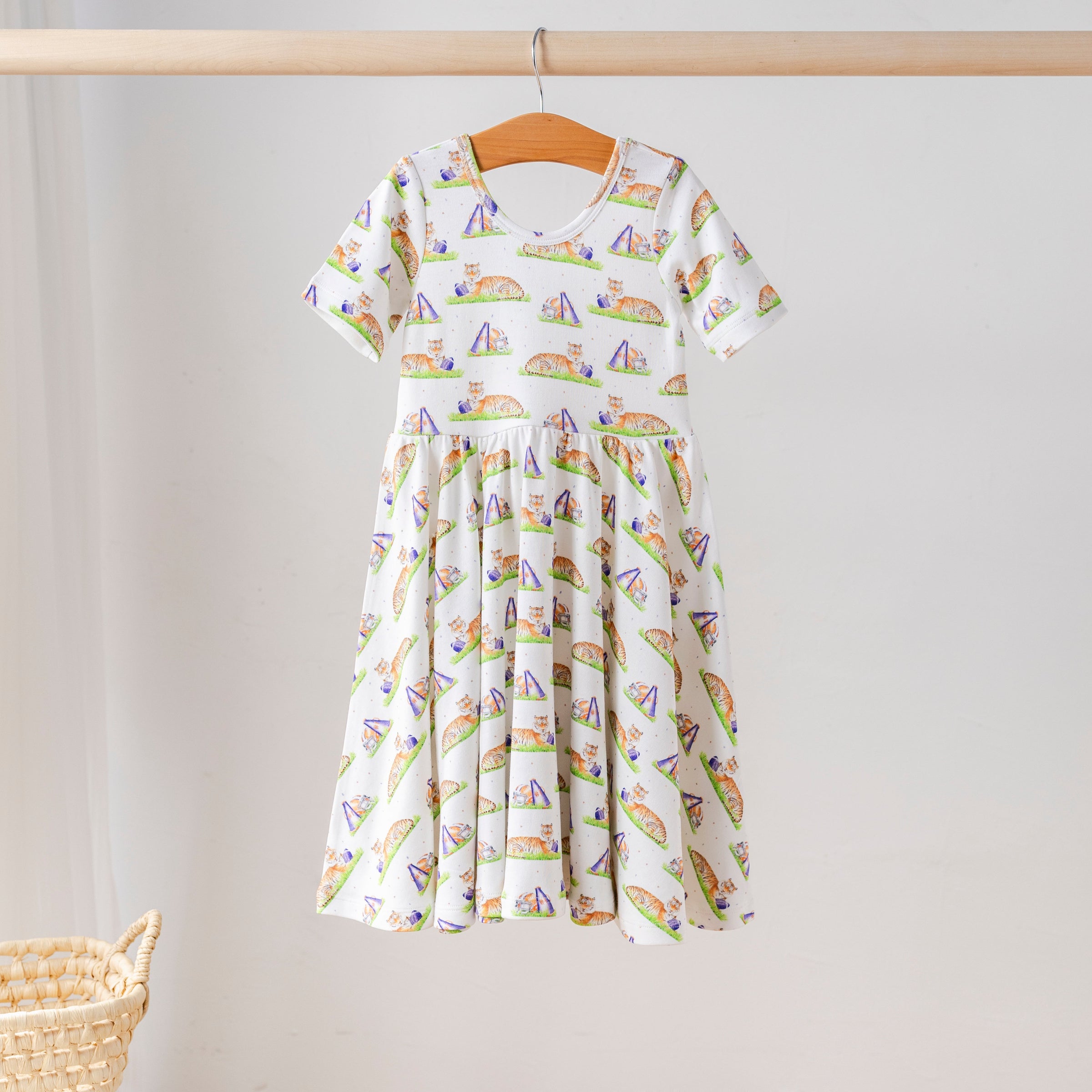 Let your little one cheer on the Tigers in style with our Mascot Mania in Auburn Organic Cotton Dress! Featuring a playful orange-and-blue tiger print with tailgating tents, this dress is perfect for game days, tailgates, school spirit events, and picture-perfect moments.