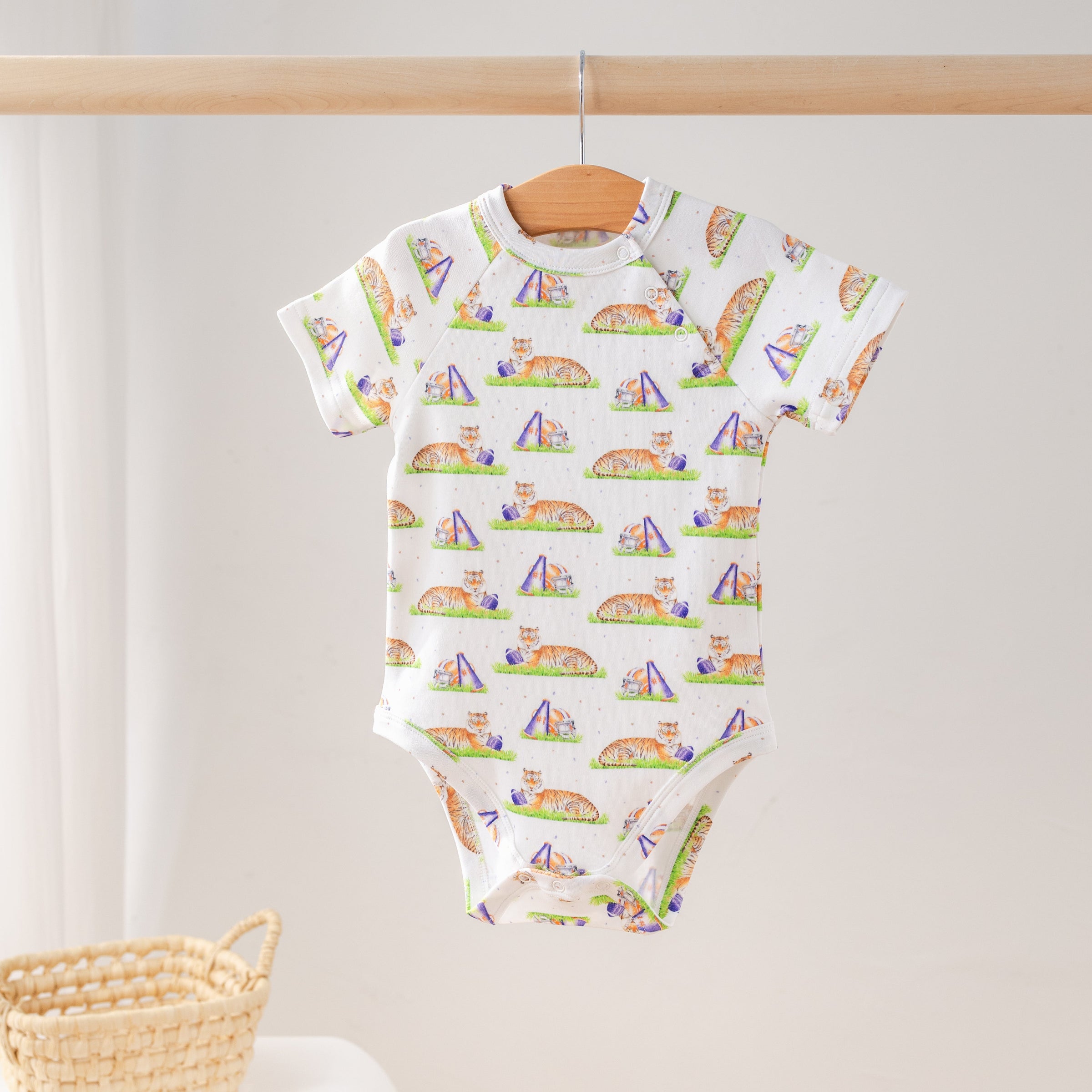 From cheering in the stands to snuggling at home, the Mascot Mania in Auburn Organic Cotton Baby Onesie is the cutest way to share your Tiger pride with your tiniest fan.