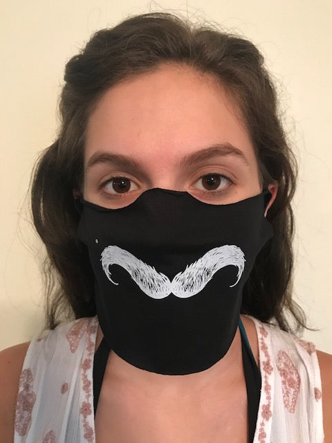 Mask Up in style! This black reusable face mask features a moustache and ear loops. One size fits most.