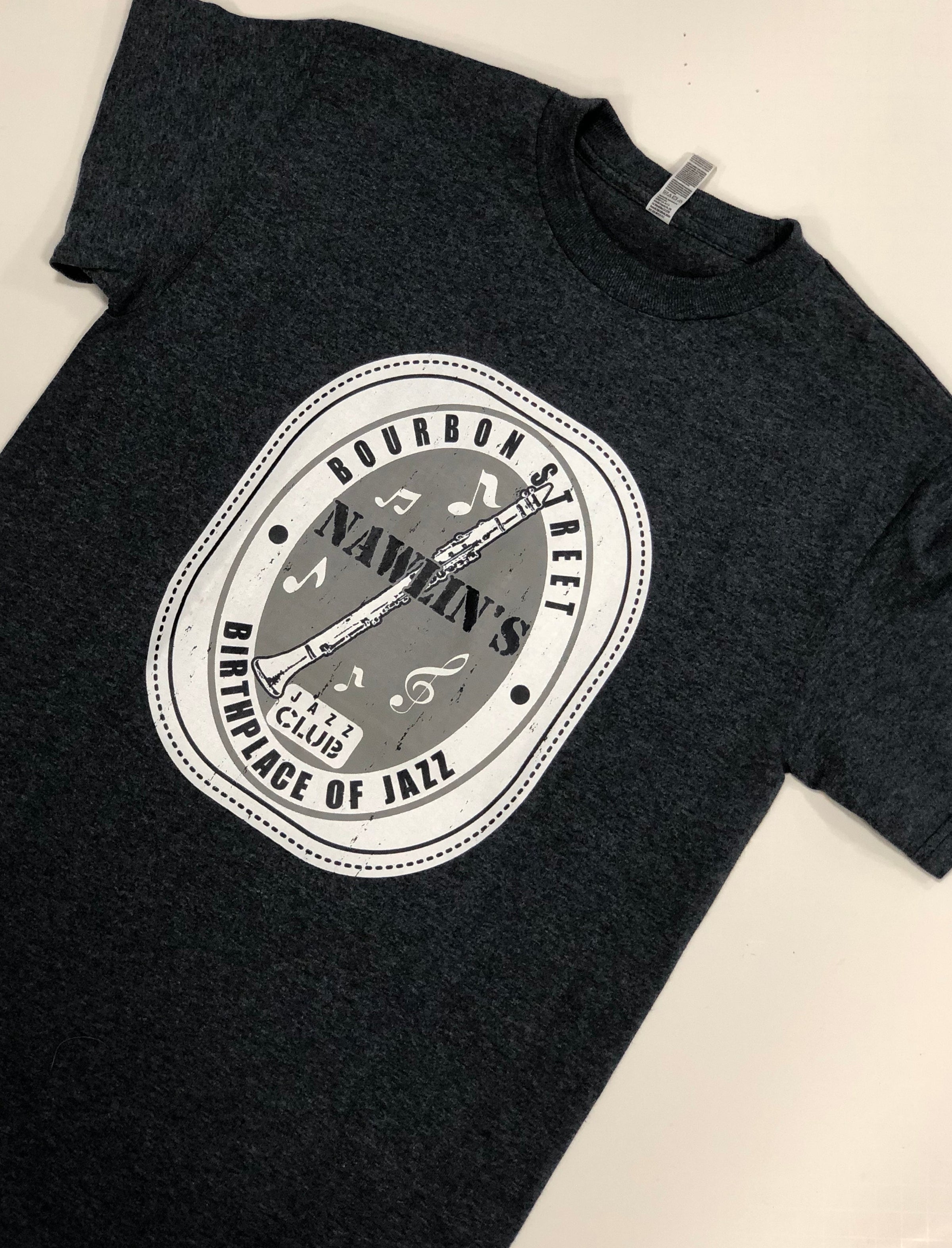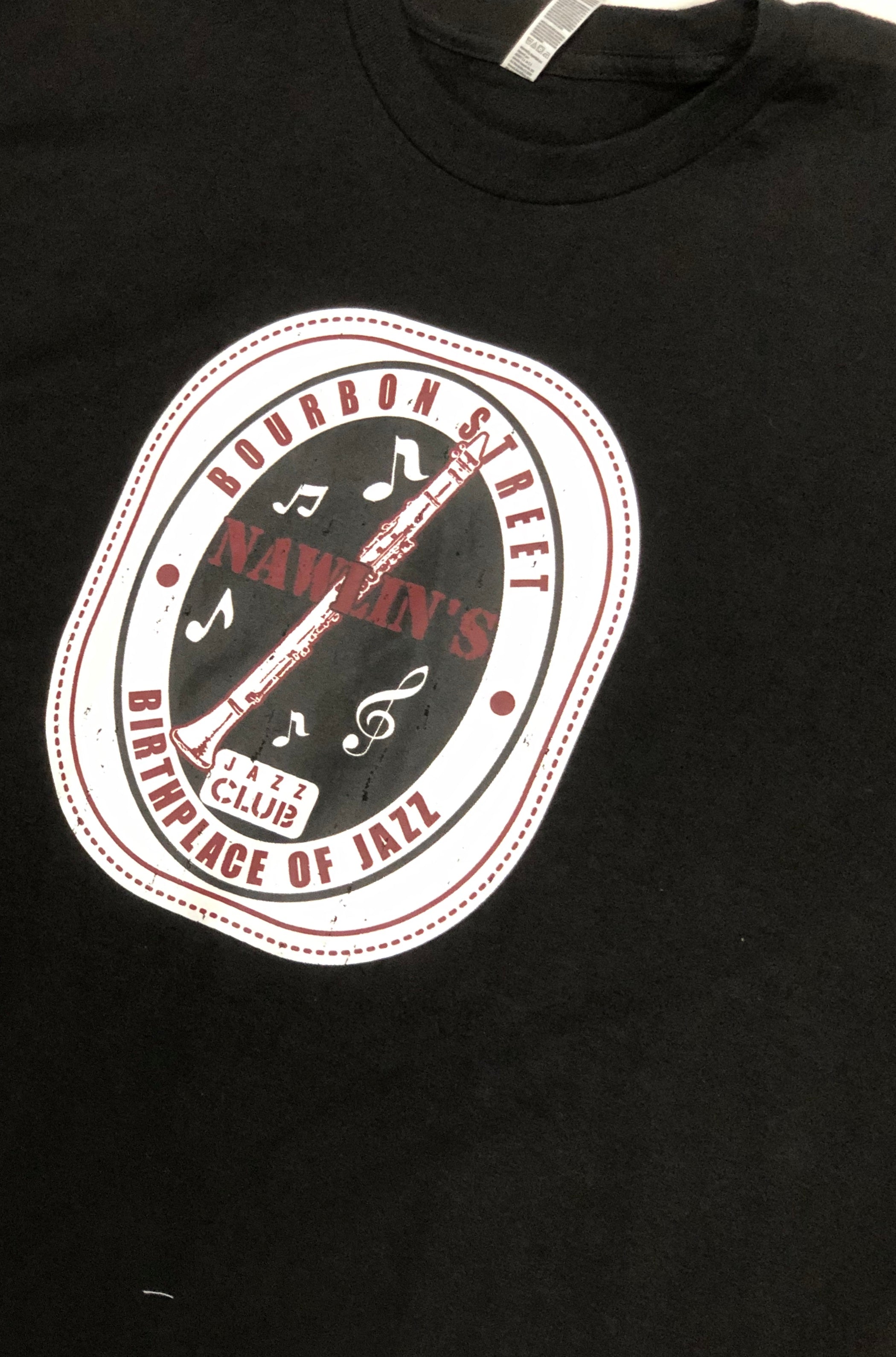 New Orleans is a city of music! This T-shirt features an oboe and reads "Bourbon Street Nawlins Birthplace of Jazz"