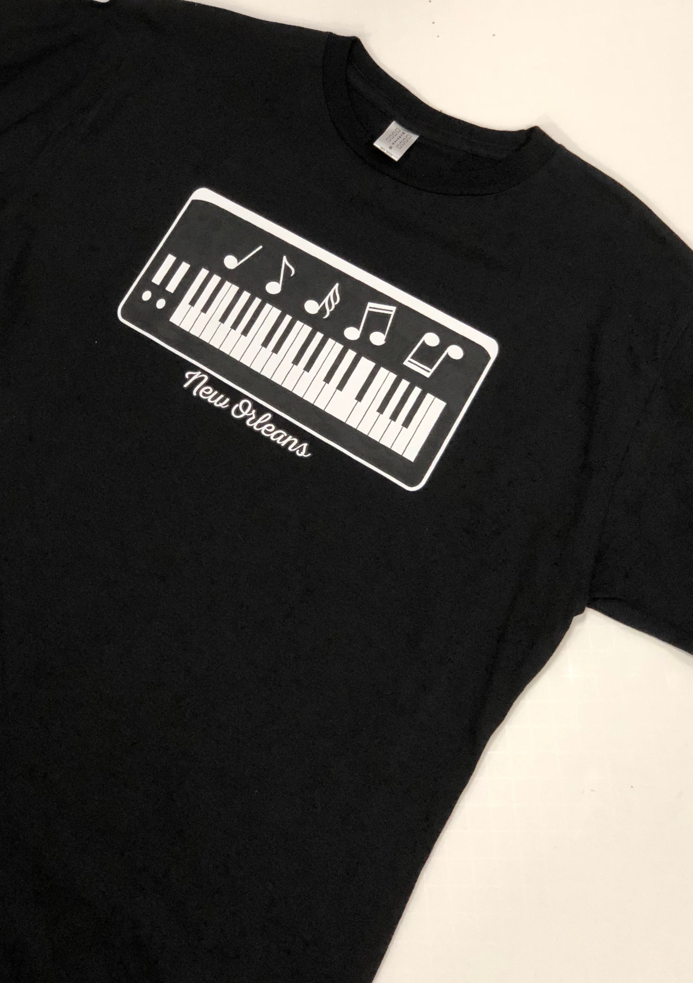 New Orleans is a city of music! This T-shirt features a keyboard and underneath it reads New Orleans