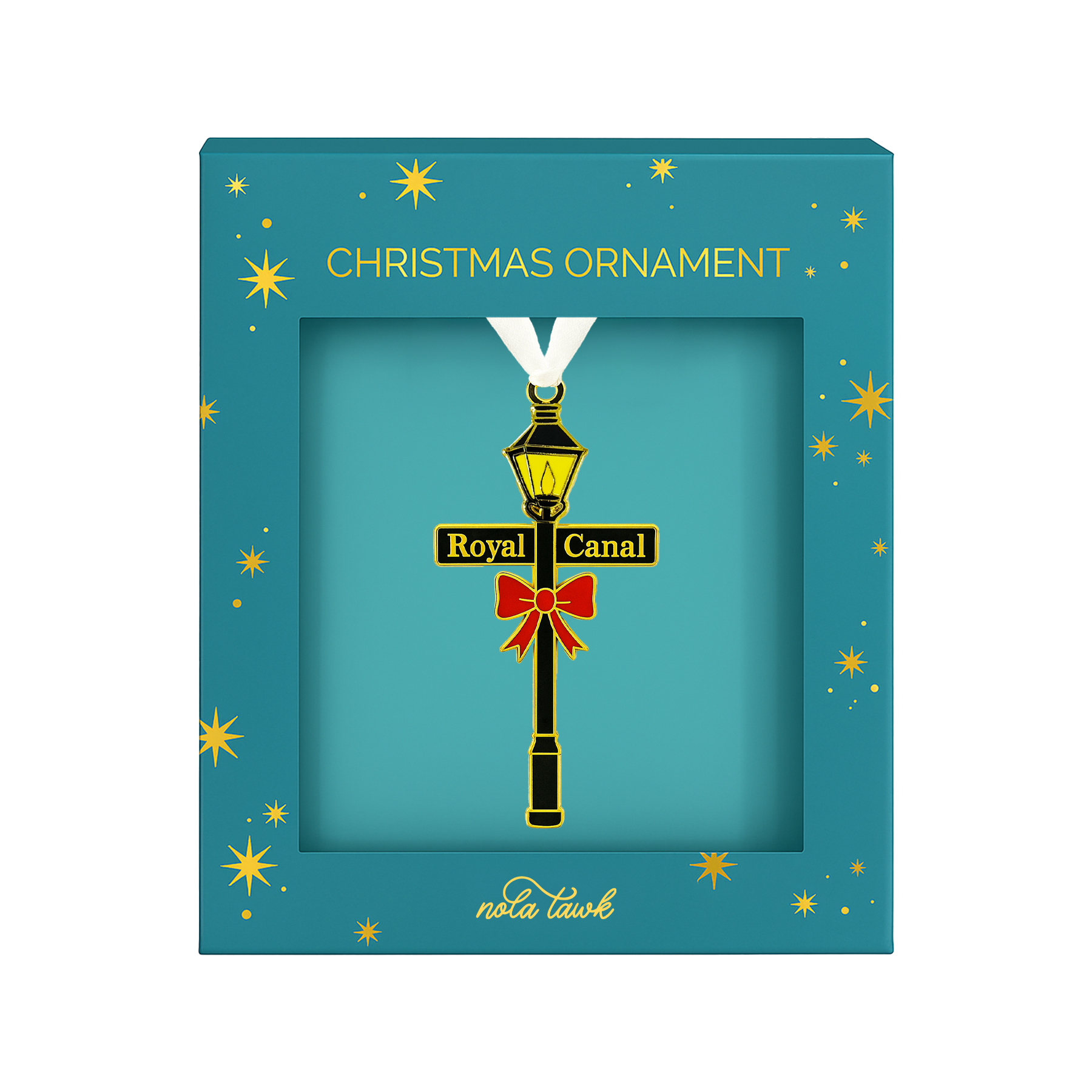 Bring a little French Quarter charm to your holiday décor. This enamel ornament captures the iconic New Orleans lamp post — a timeless symbol of cozy streets, glowing lights, and Southern magic. Finished in gleaming gold metal with a crisp white ribbon for hanging, it arrives ready to gift in a beautiful keepsake box.