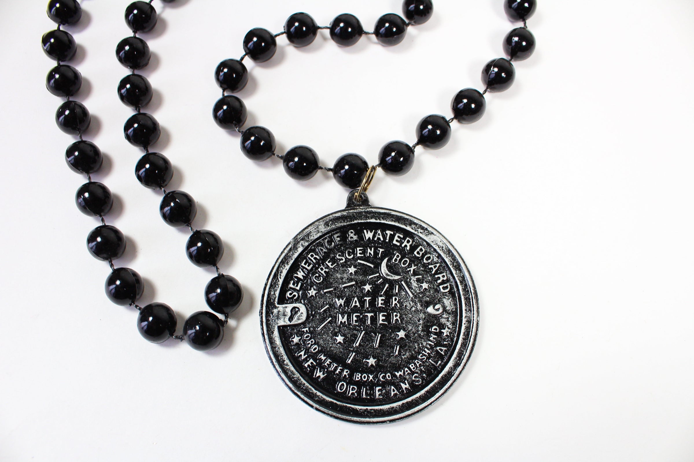 One of a kind water meter bead! Limited quantities in stock! Product features a black bead with a circular medallion of the New Orleans Water Meter