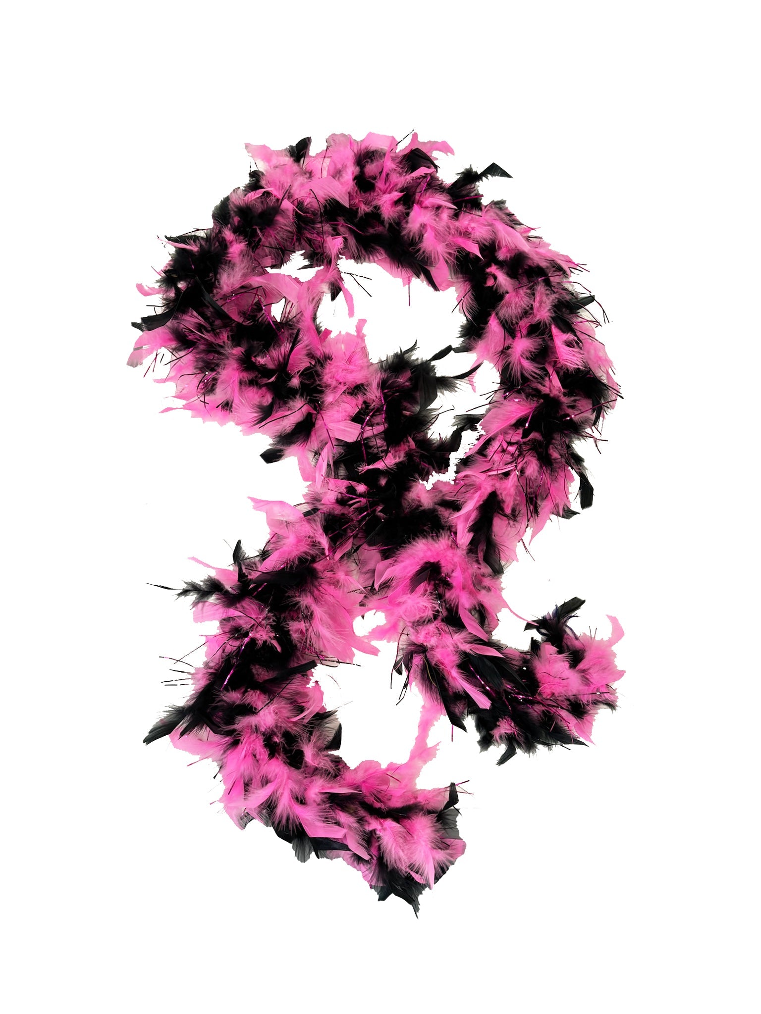 This boa is a mixture of bright pink and black feathers throughout. Boa is 6' long.