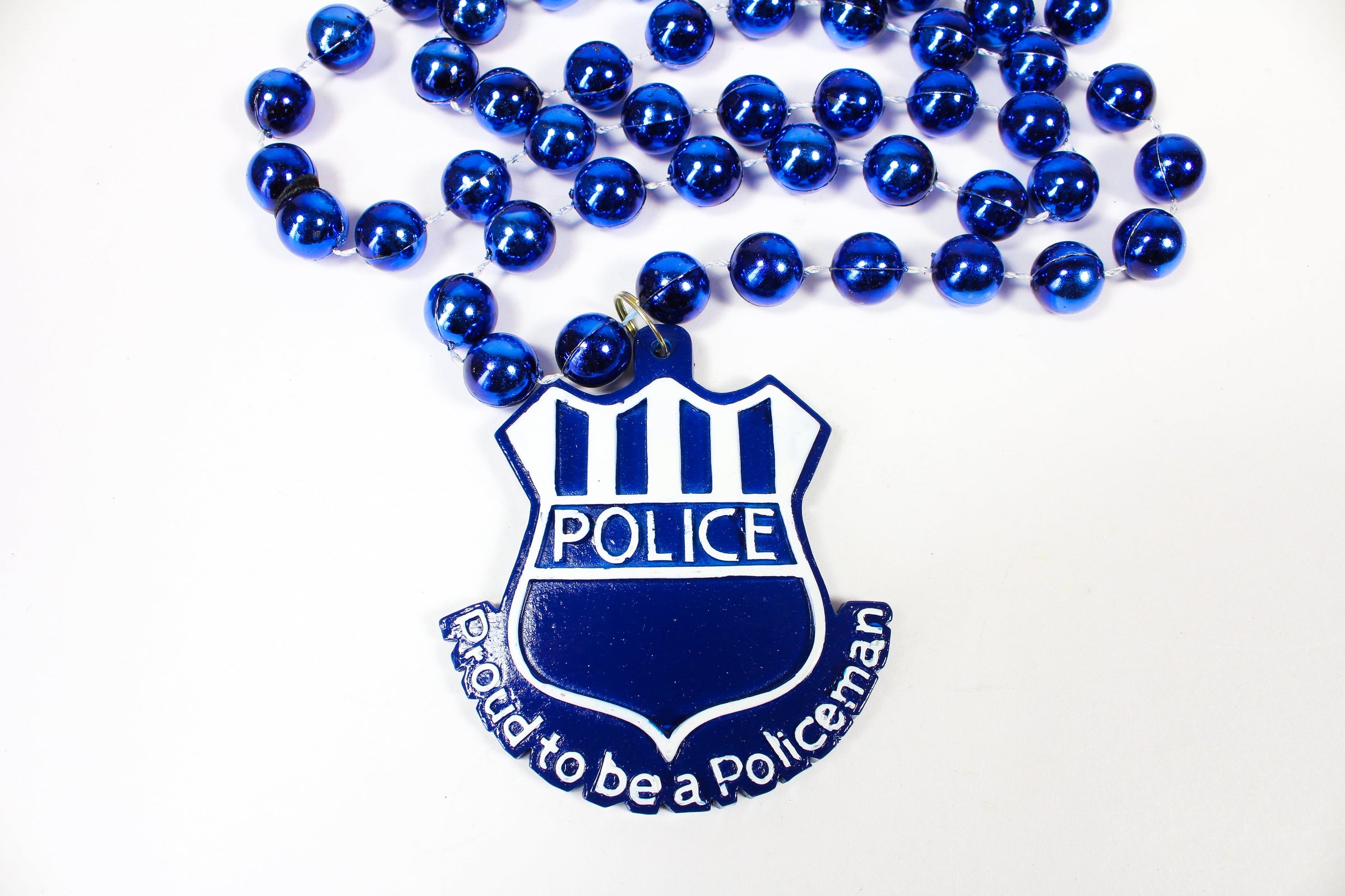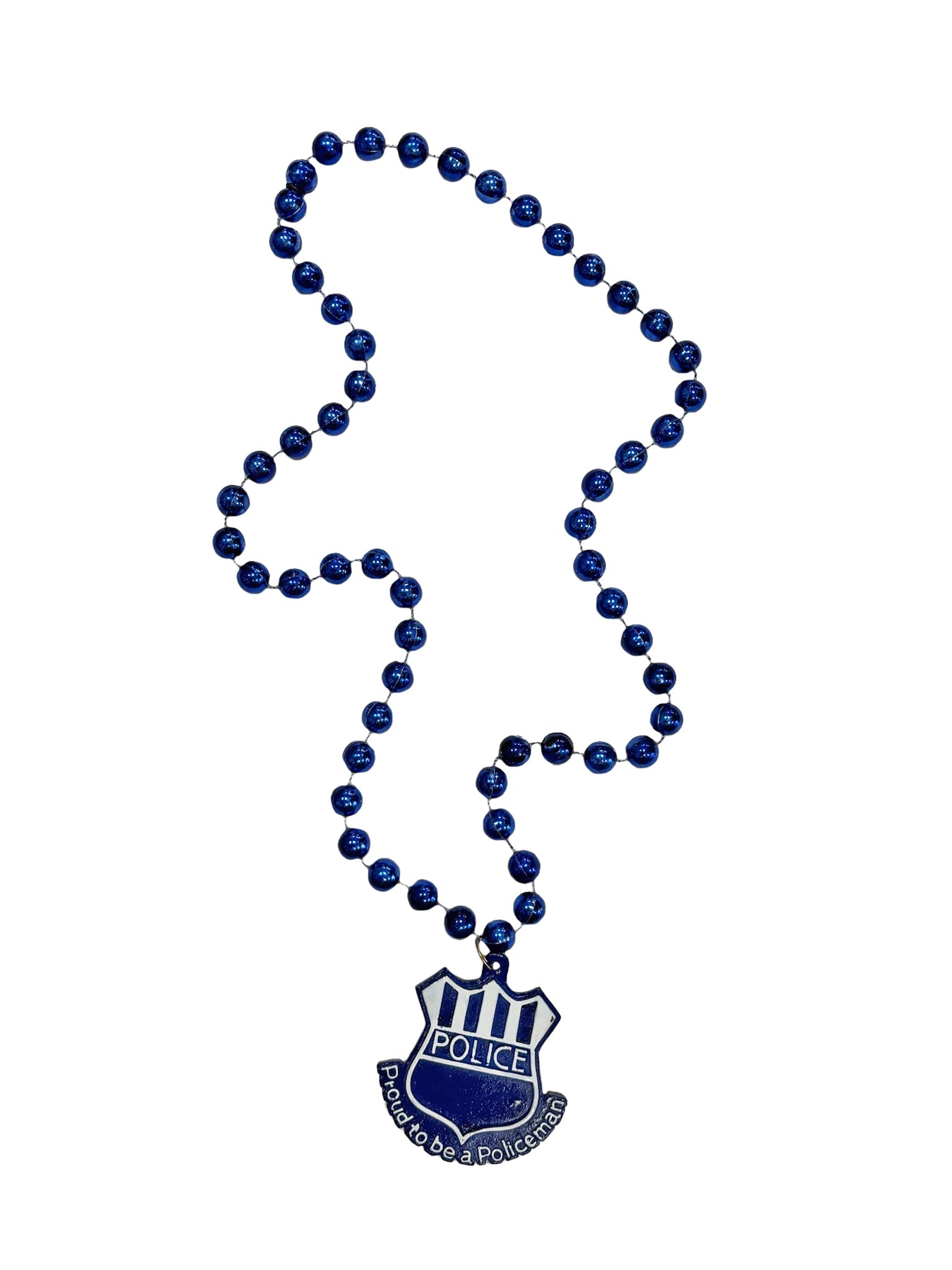 Blue Bead with a badge medallion reading "Proud to be a Policeman."