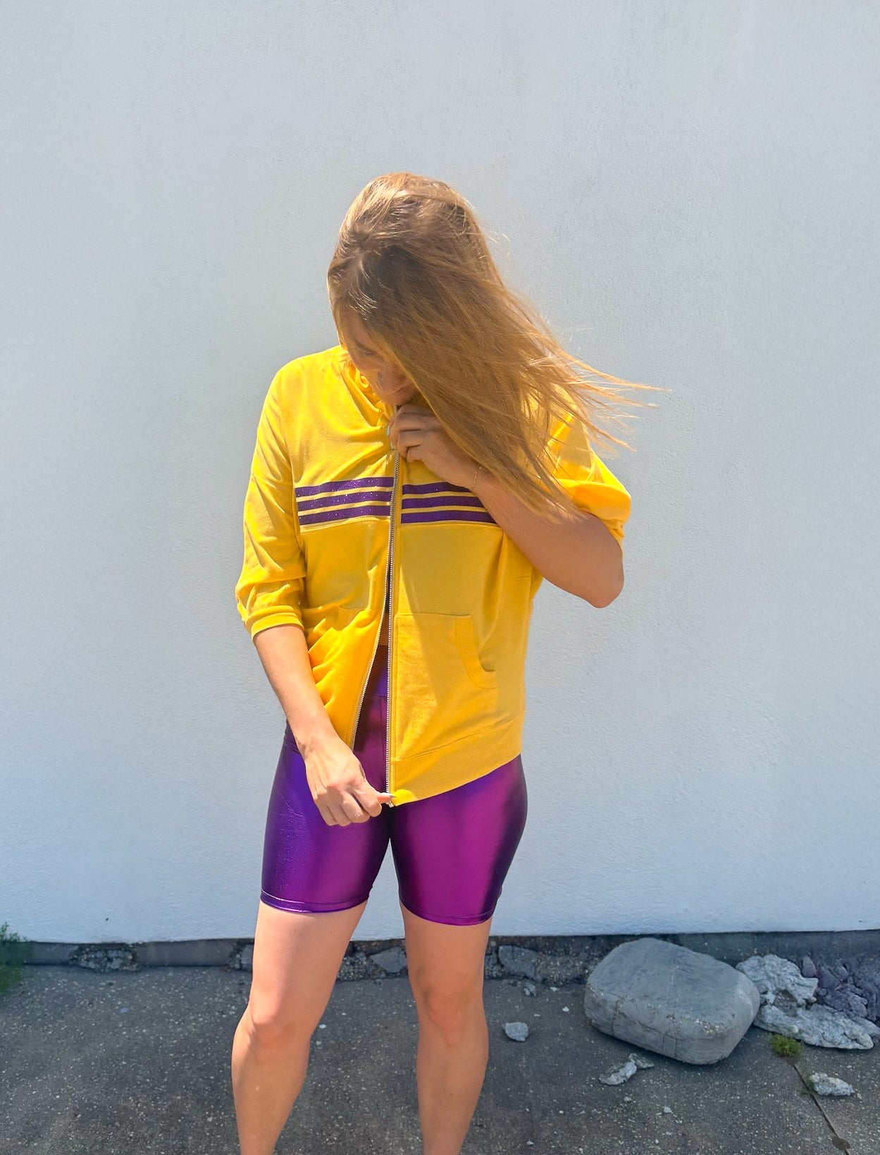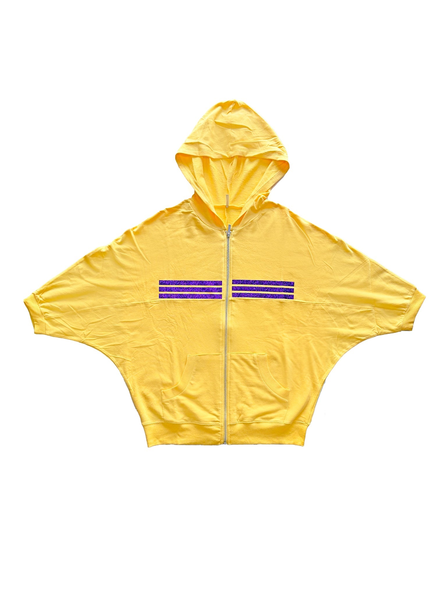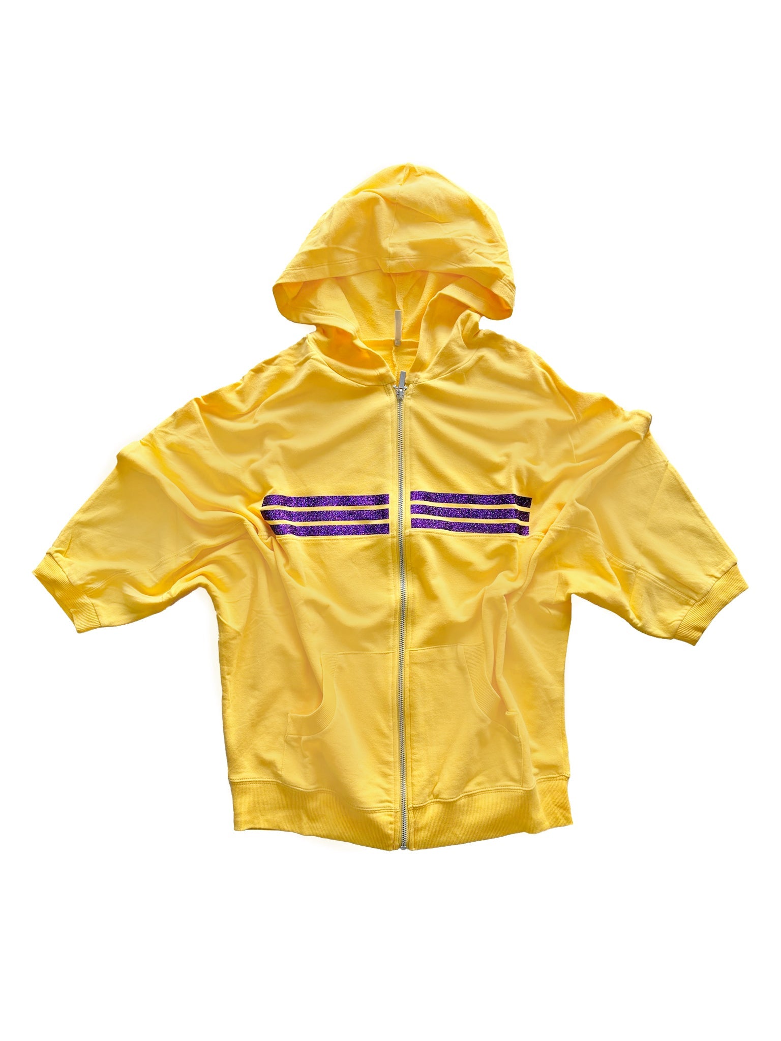 Purple and Gold Glitter Stripe 3/4 Sleeve Zip Up Hoodie