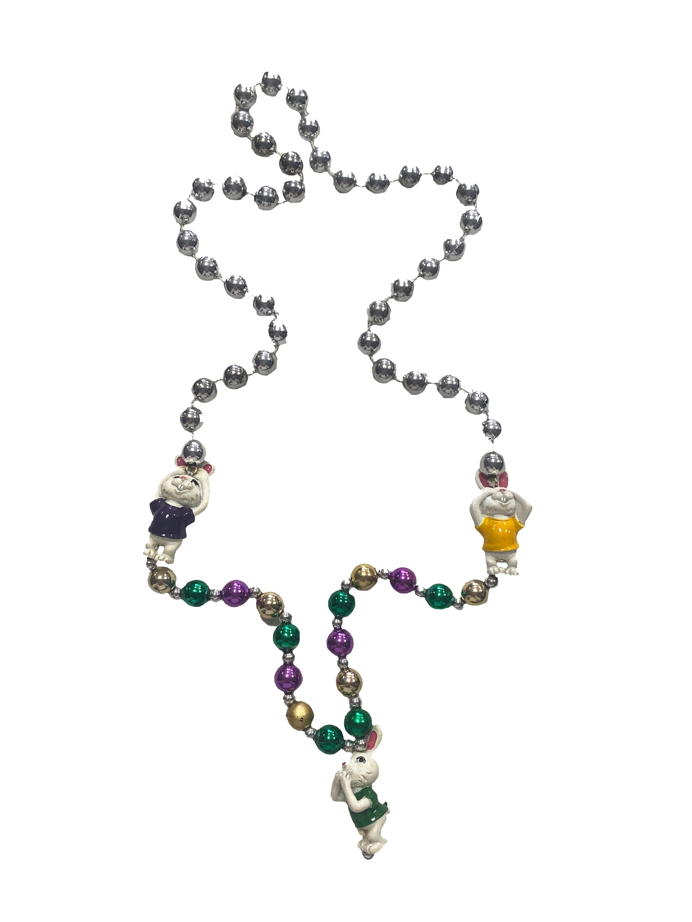Rabbit Trio Hear, See, Speak No Evil on Purple, Green, and Gold Specialty Bead