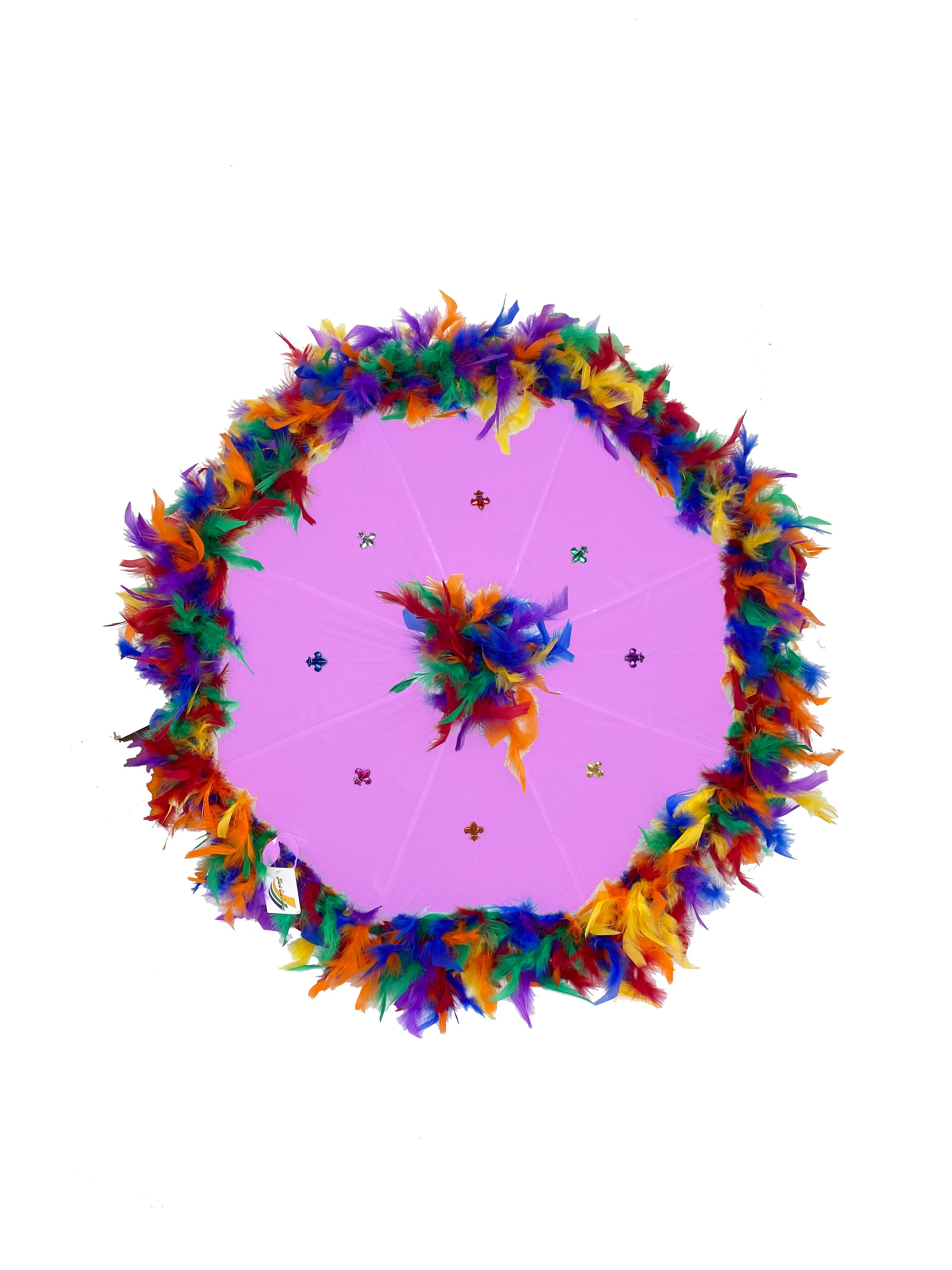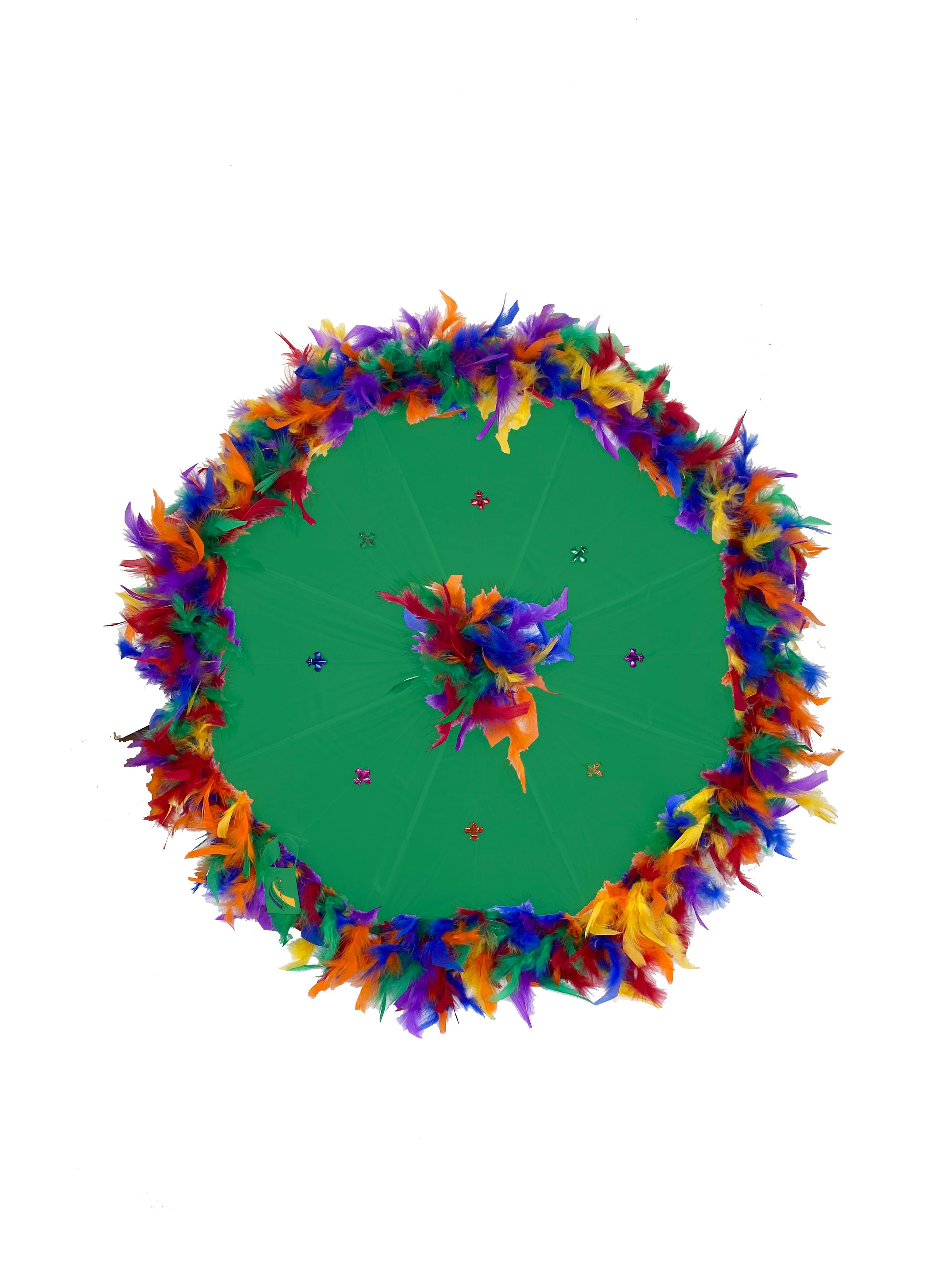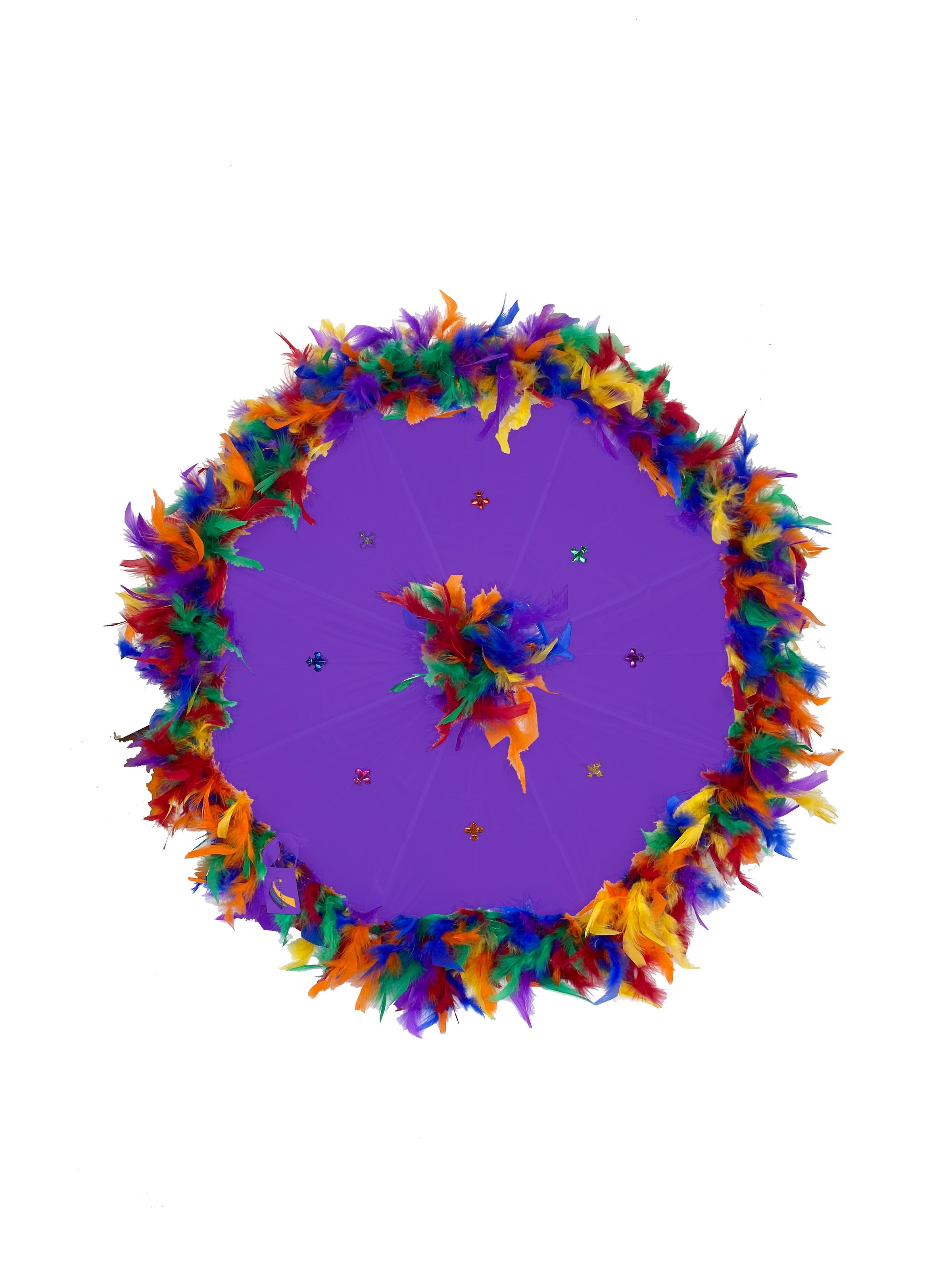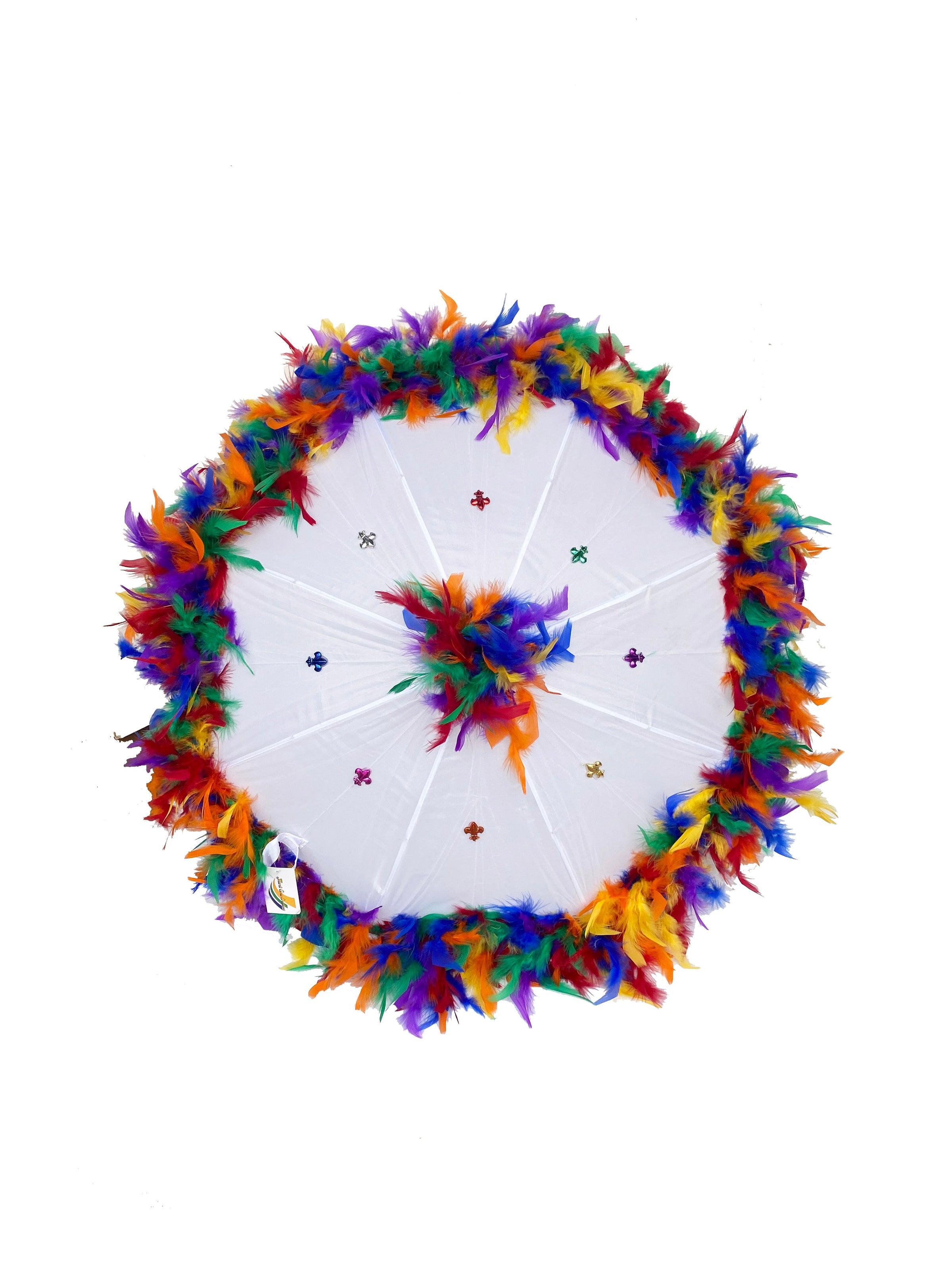 Add a splash of color to any event with our Rainbow Feathered Parasol! Perfect for Pride, Decadence, or Mardi Gras, this parasol will make you stand out in the best way possible. Don't miss out, grab yours now!