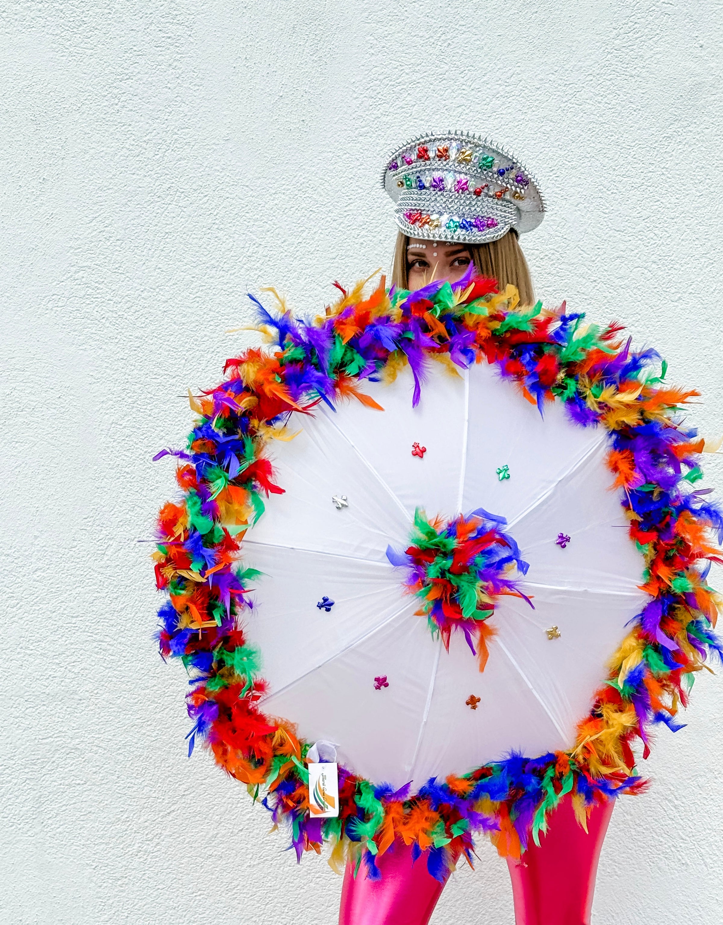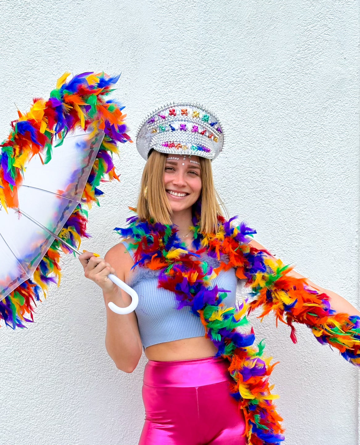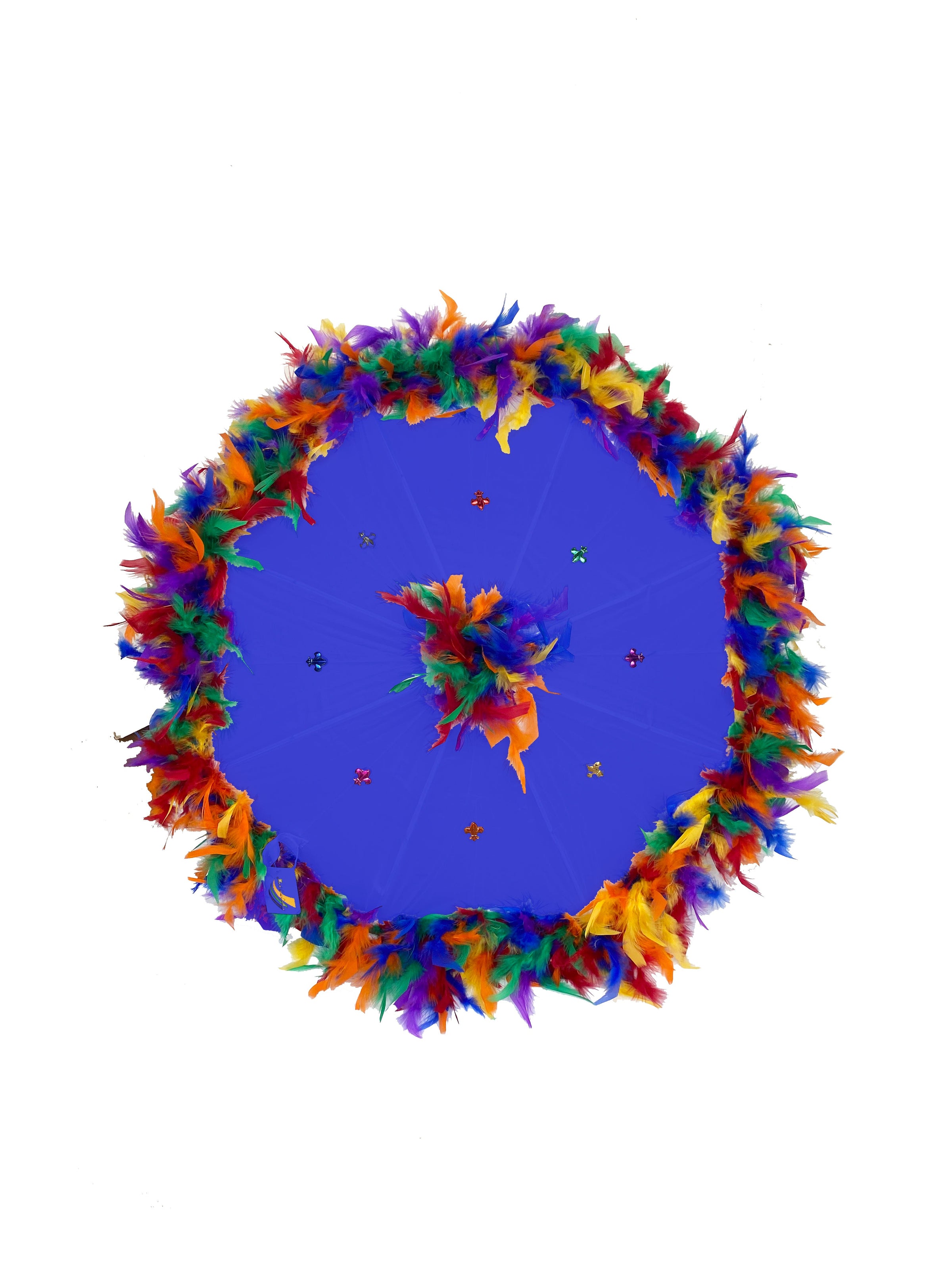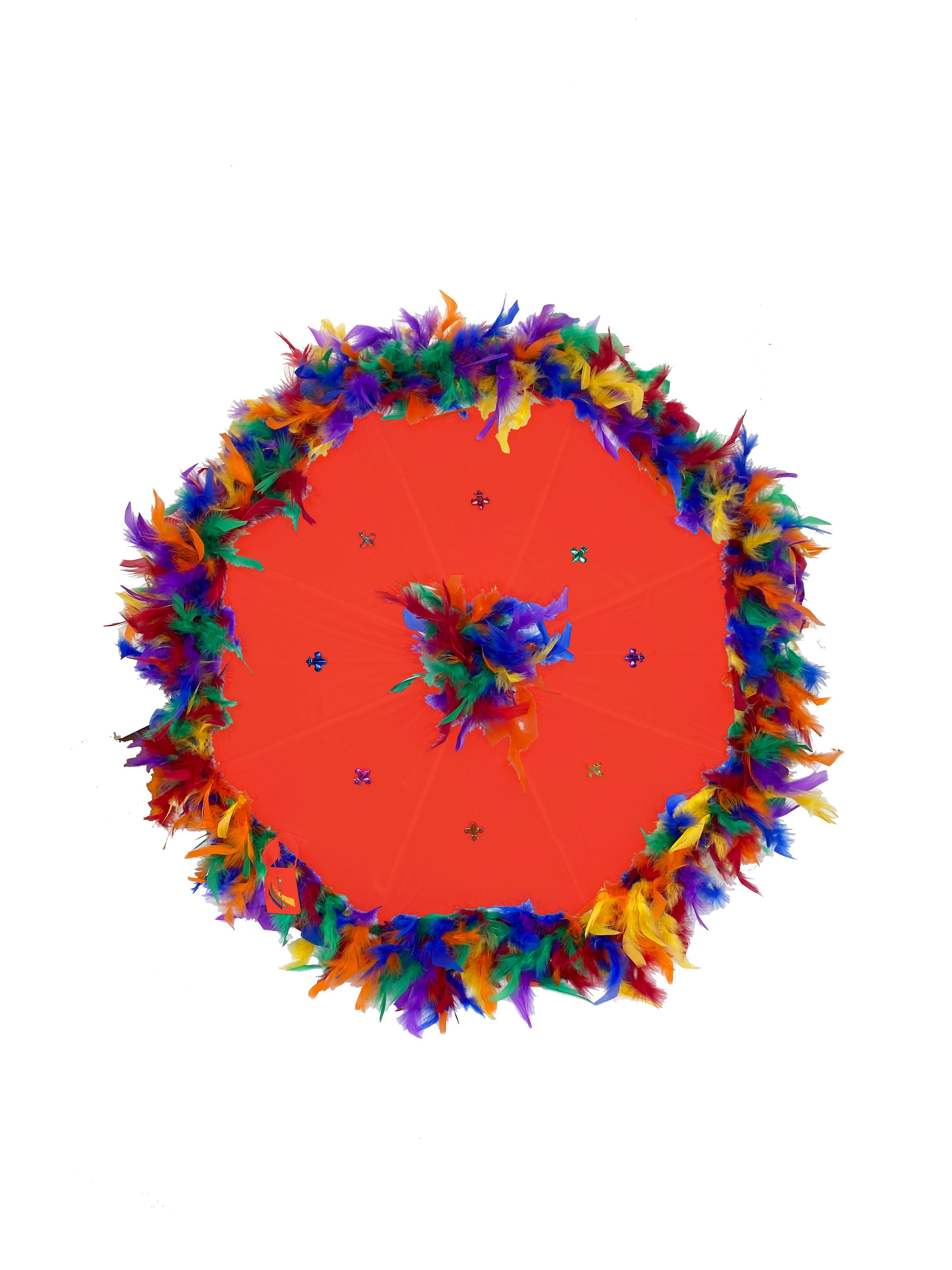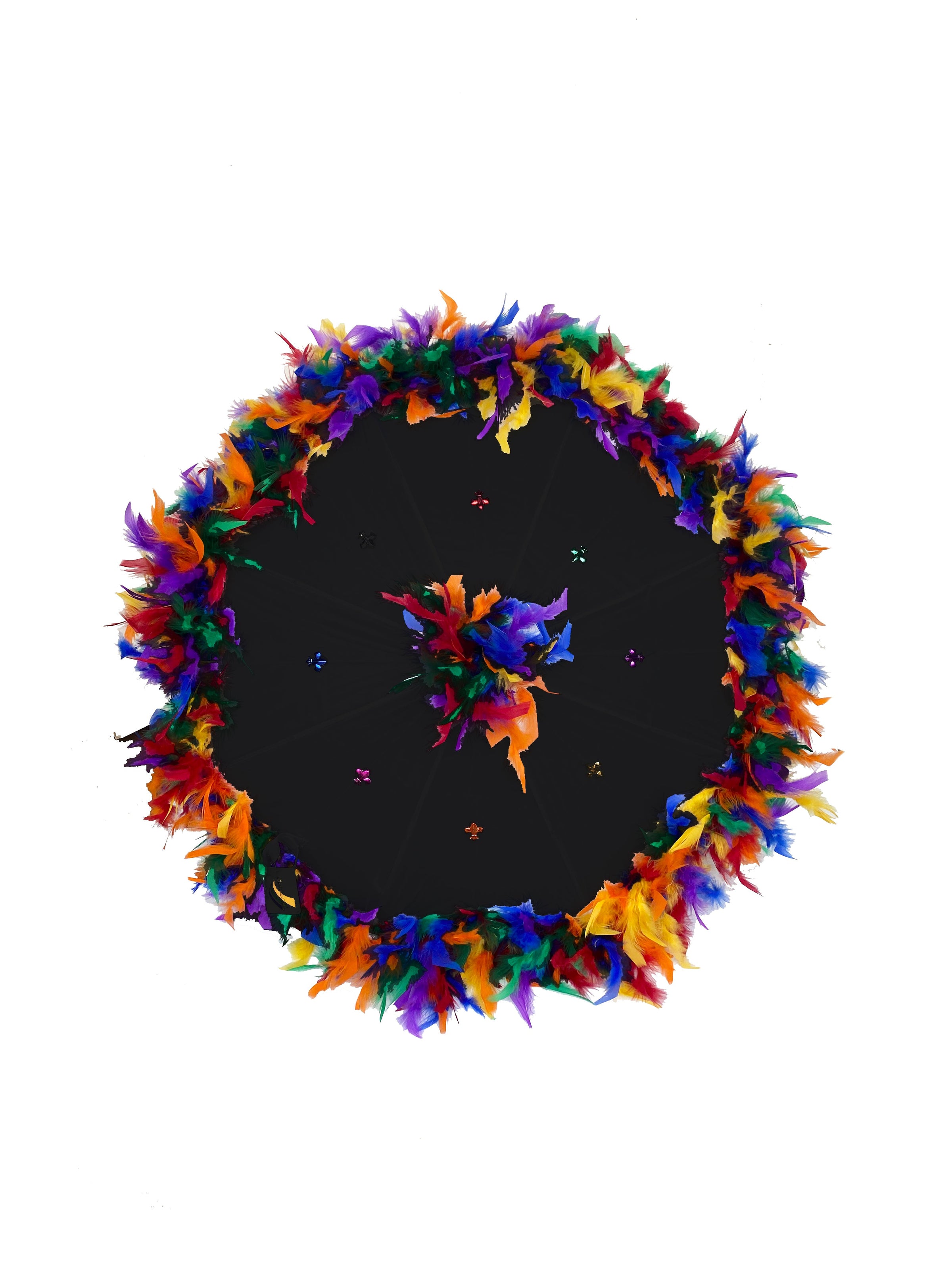 Add a splash of color to any event with our Rainbow Feathered Parasol! Perfect for Pride, Decadence, or Mardi Gras, this parasol will make you stand out in the best way possible. Don't miss out, grab yours now!