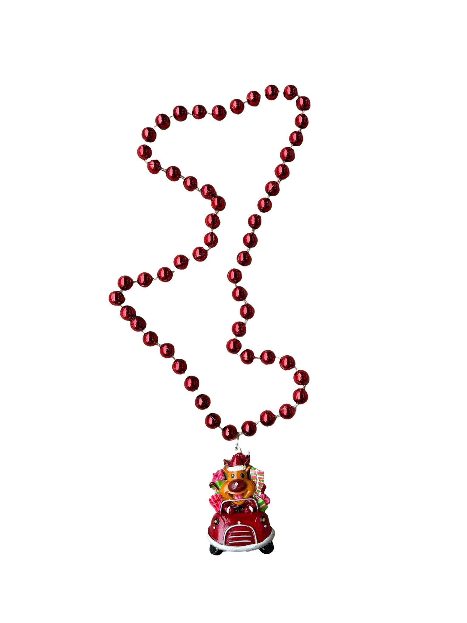 Get in the holiday spirit with our Reindeer with Presents on a Red Specialty Bead! This unique bead features a reindeer riding in a vintage car, adding a playful touch to your holiday outfit. (Limited stock available, so get yours before they're gone!)