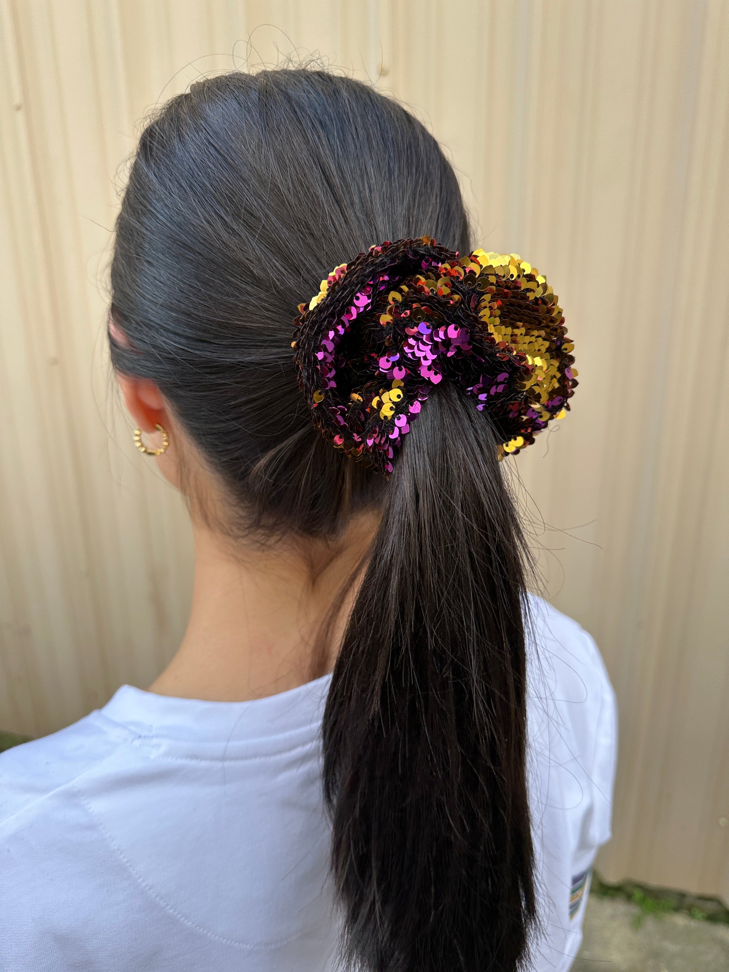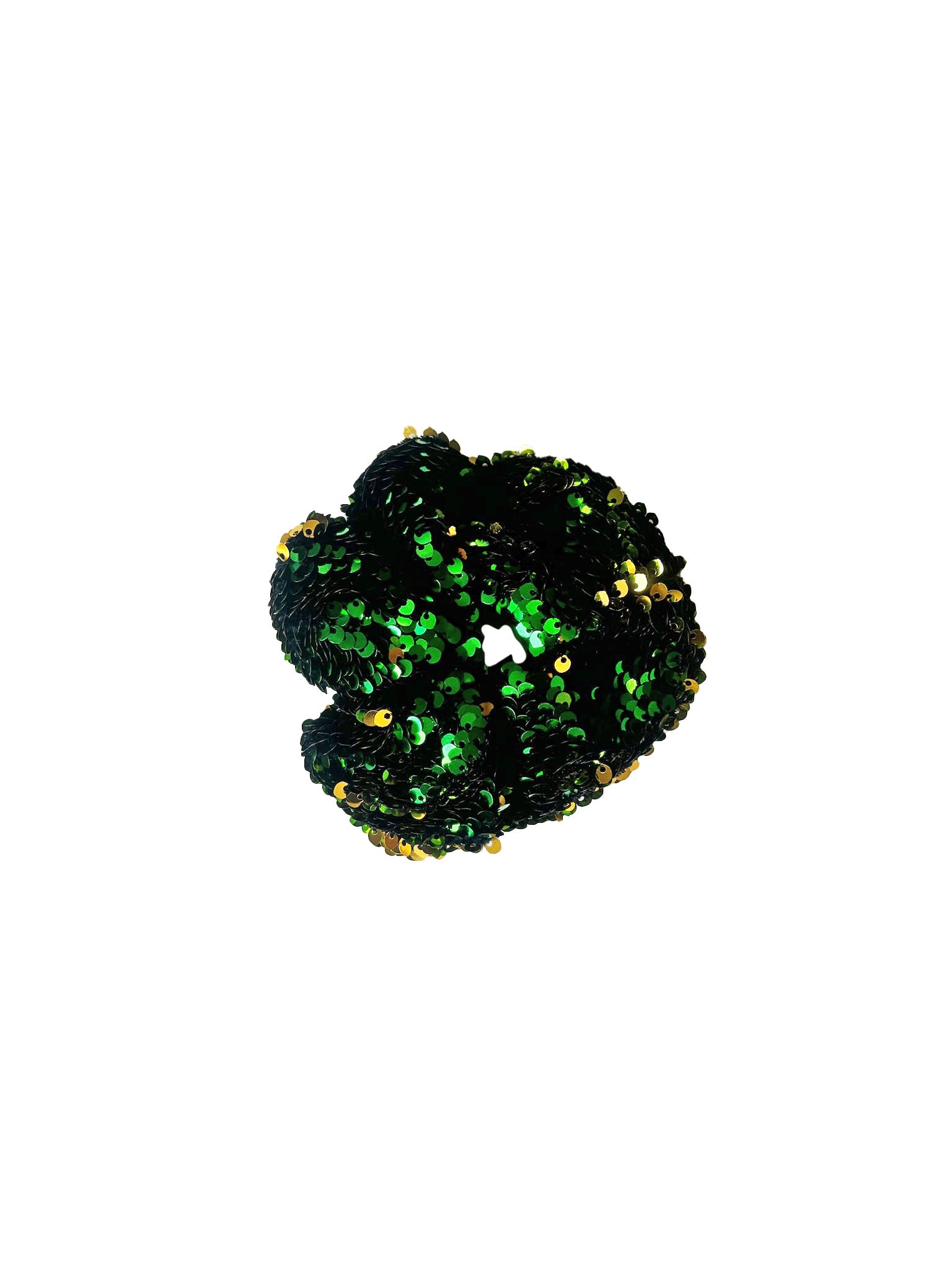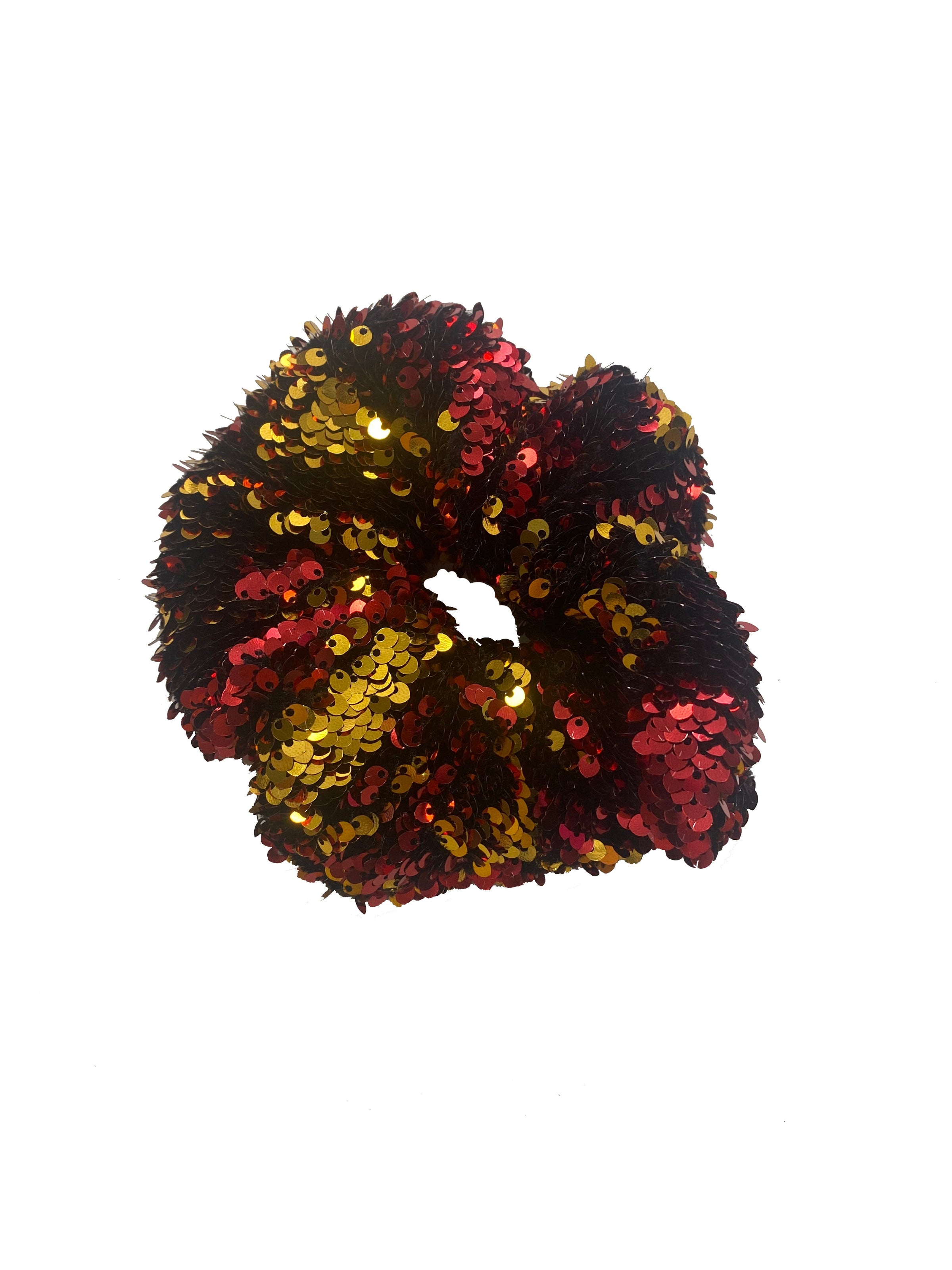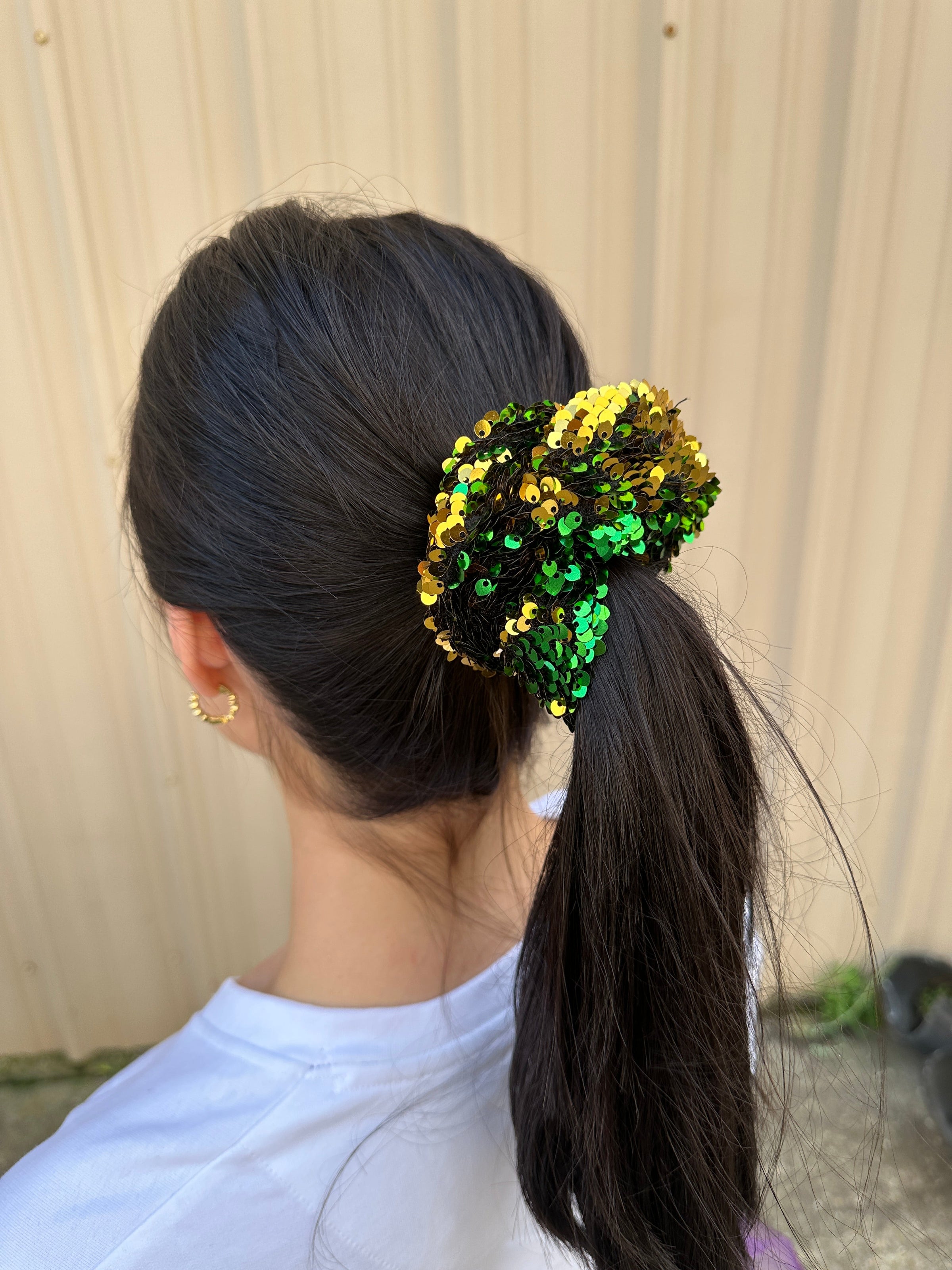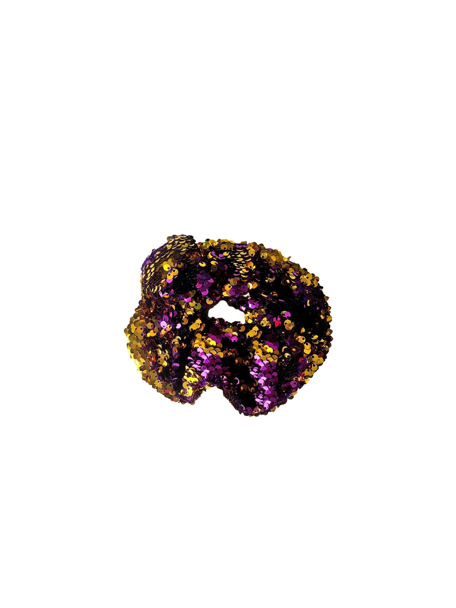 These stylish sequin scrunchies are the perfect finishing touch for all your Mardi Gras looks this season! Each scrunchie is reversible to gold.