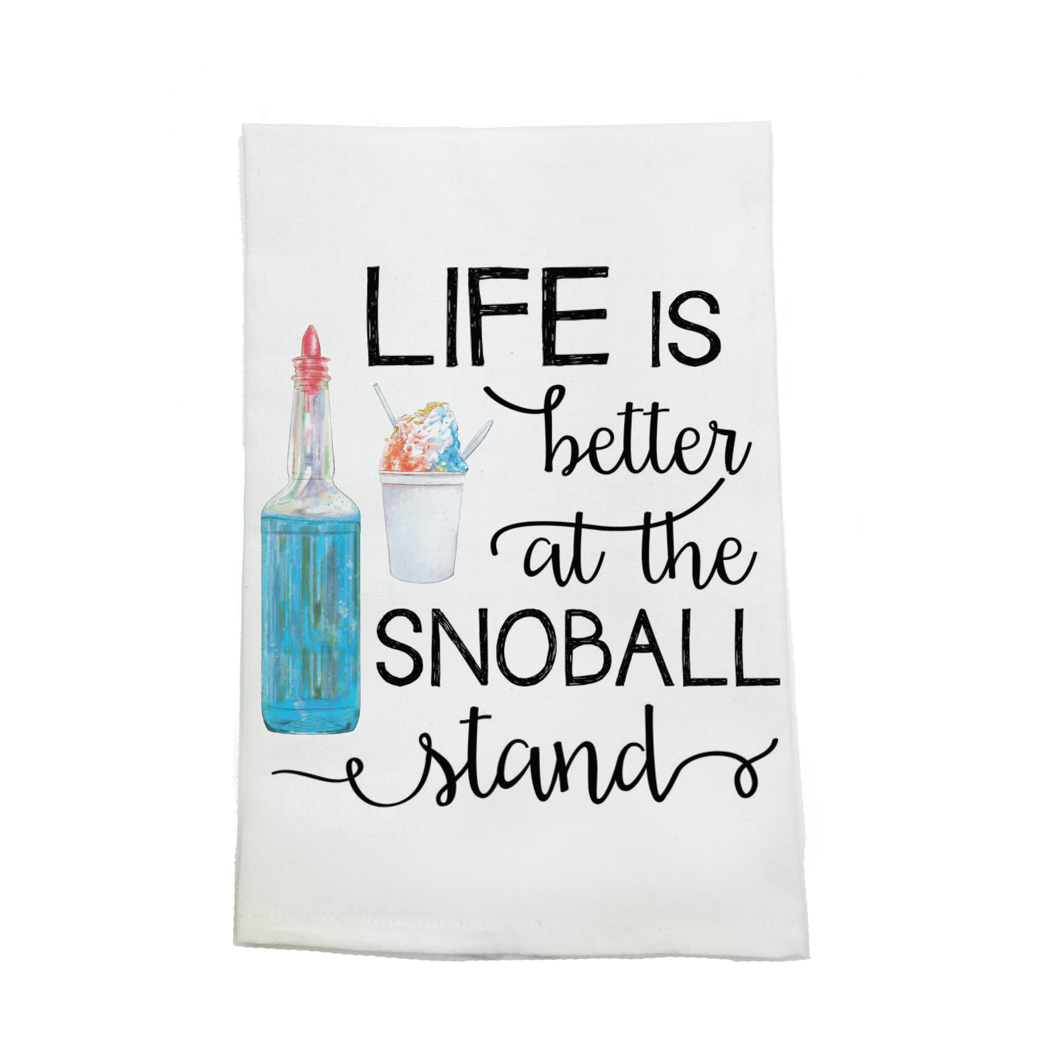 Our Life is Better at the Snoball Stand decorative kitchen towels are an adorable way to dress up your kitchen for summer!