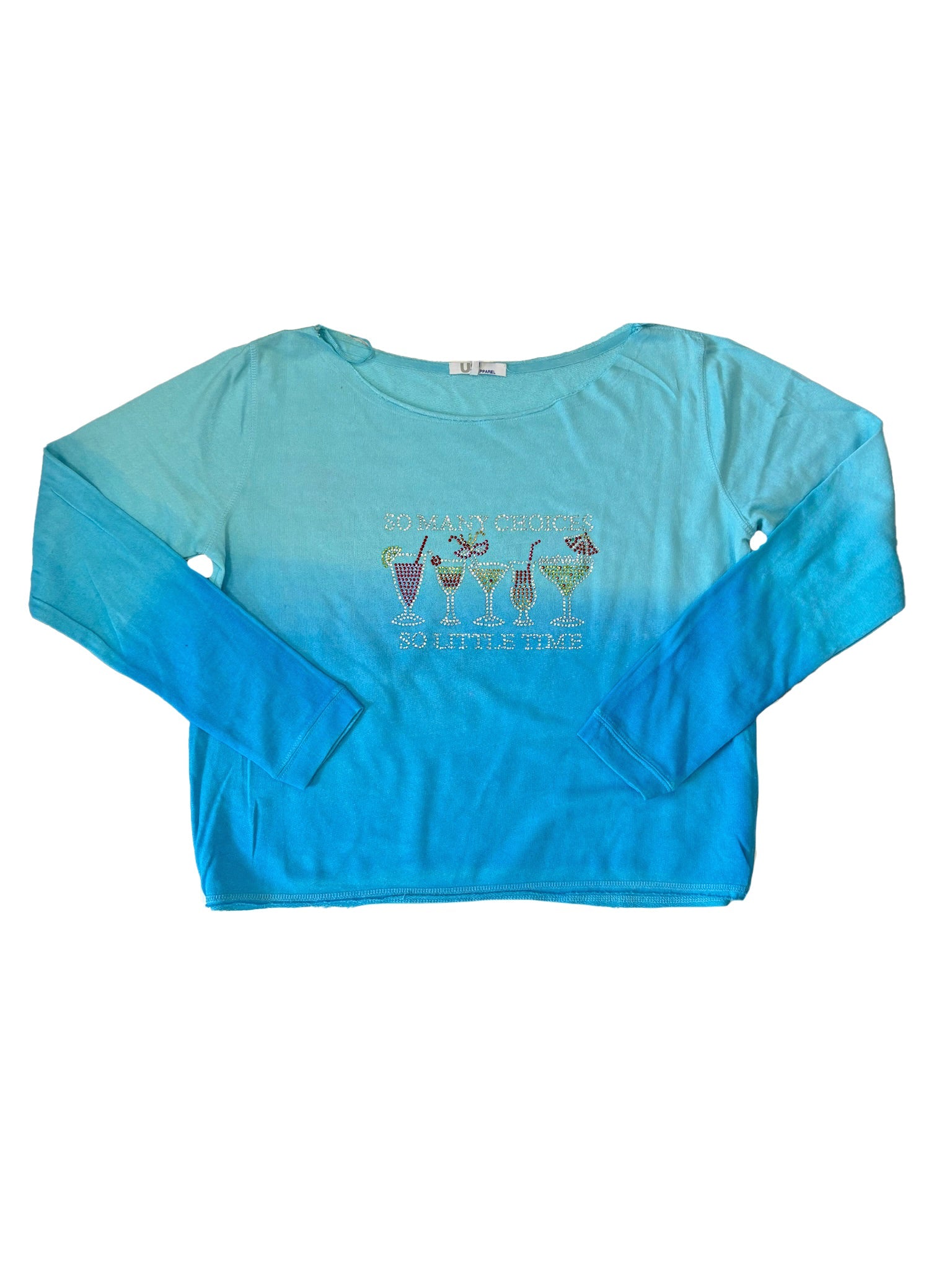 So Many Choices So Little Time Long Sleeve Dip Dye Rhinestone Pullover