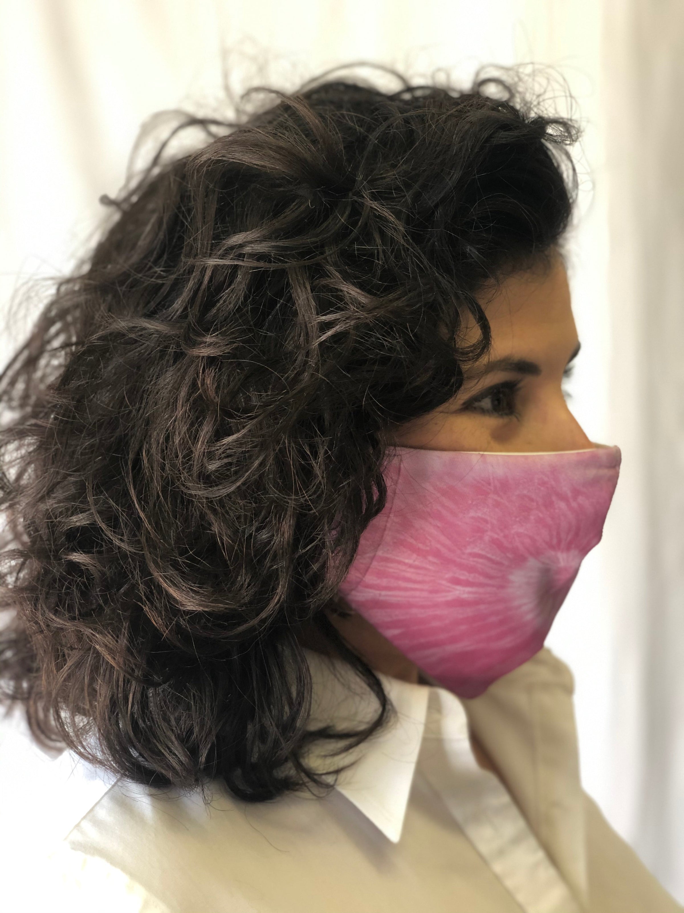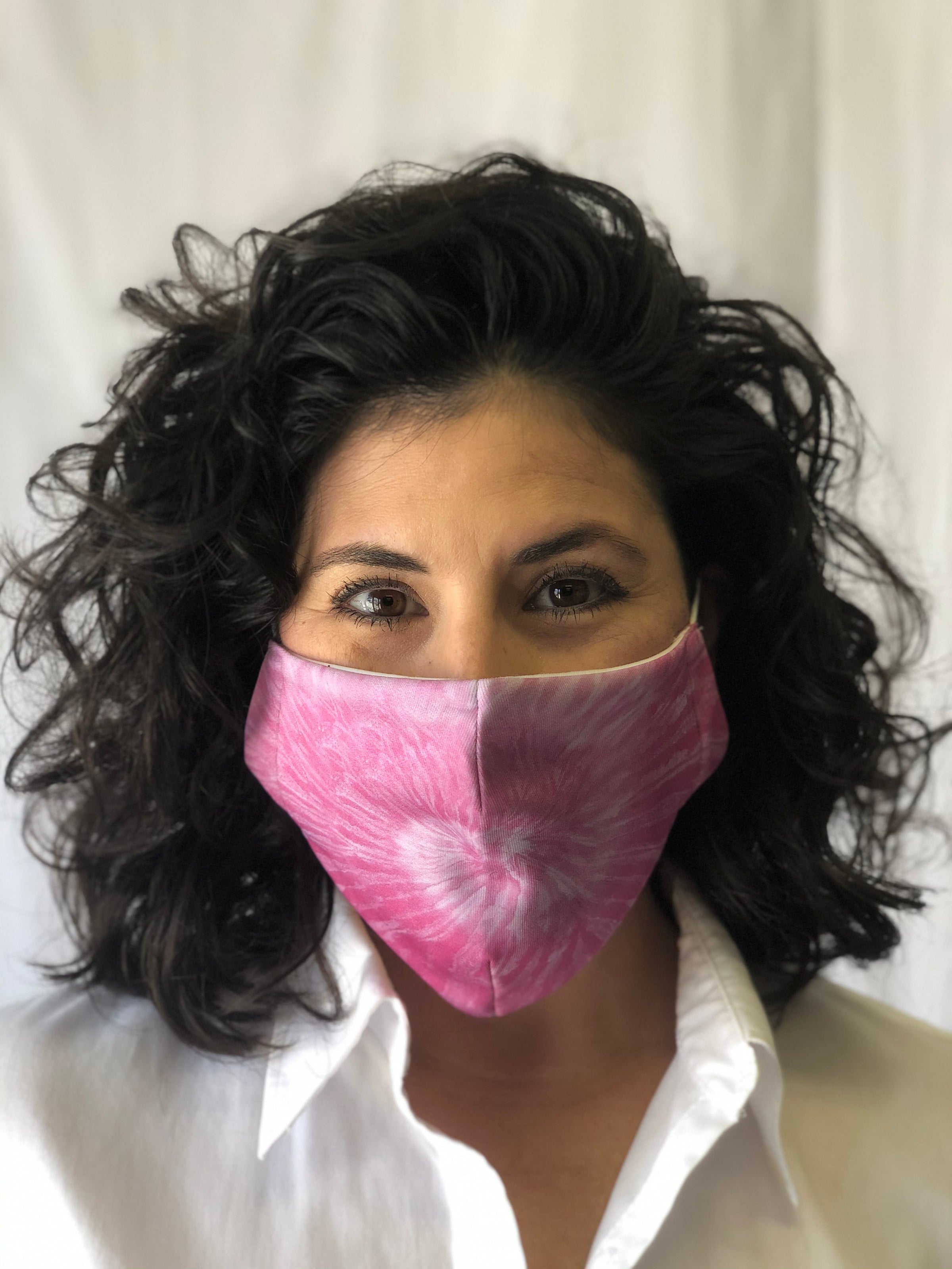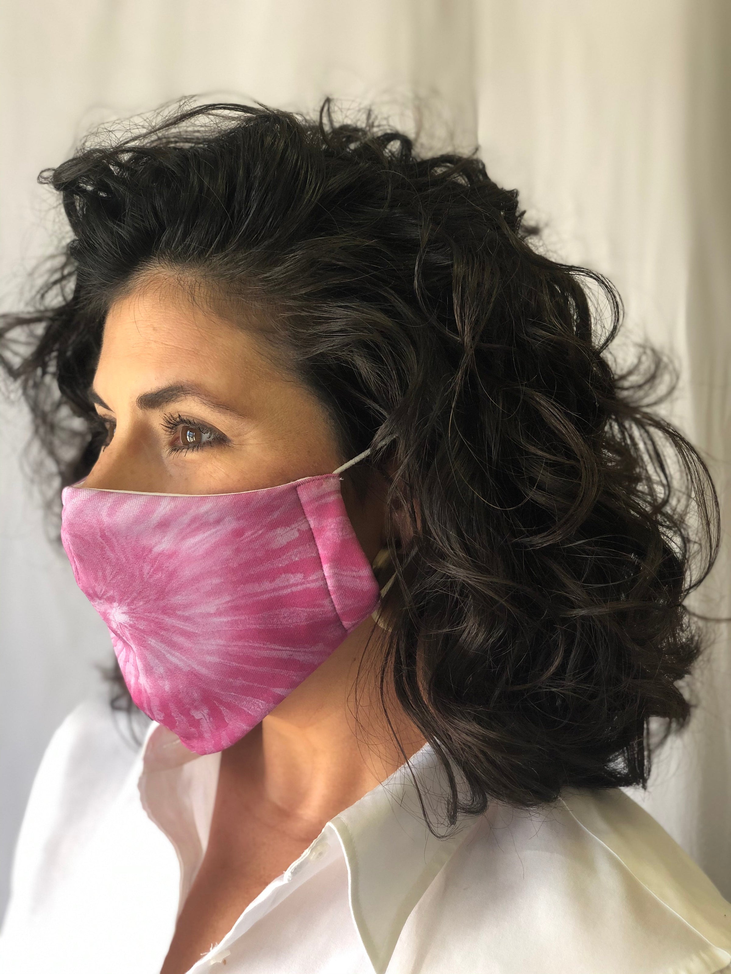 Mask Up in style! This reusable face mask is a soft pink tie dye print and features ear loops. One size fits most.