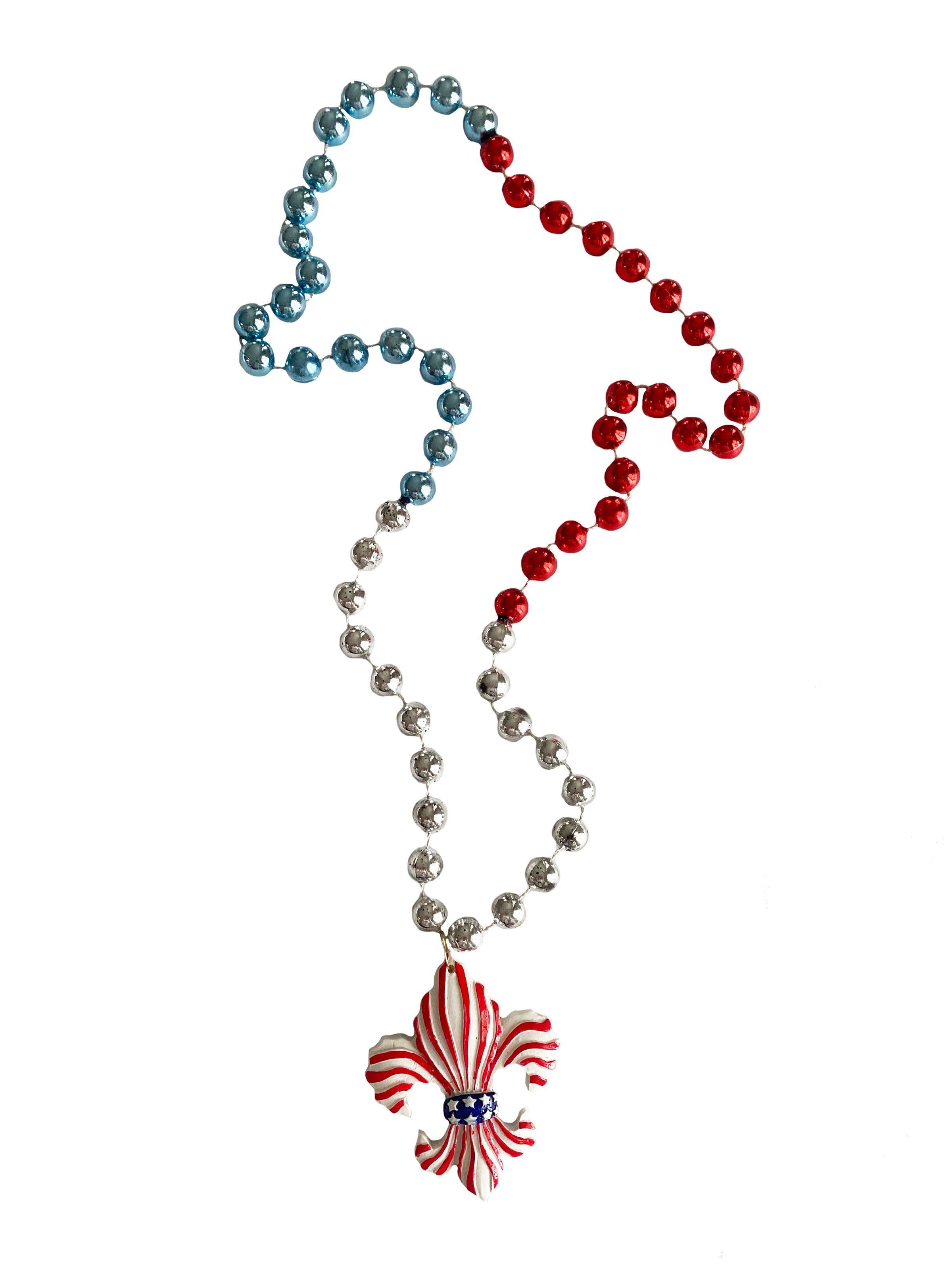 Striped Patriotic Fleur de Lis on Red, White, and Blue Specialty Bead