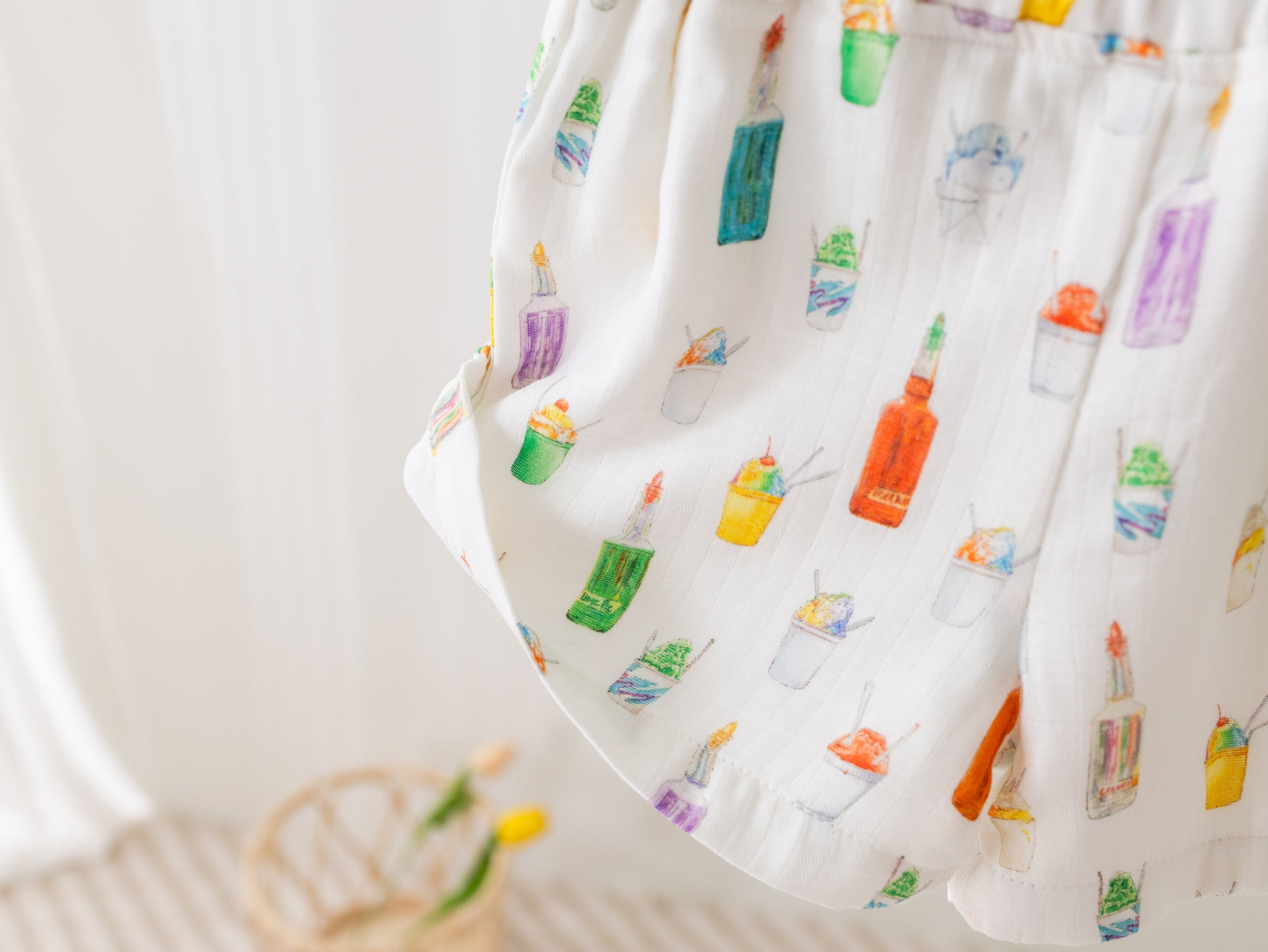 Add a sweet touch of Southern charm to your child’s wardrobe with the Sugar, Ice, & Everything Nice Organic Muslin Shorts!