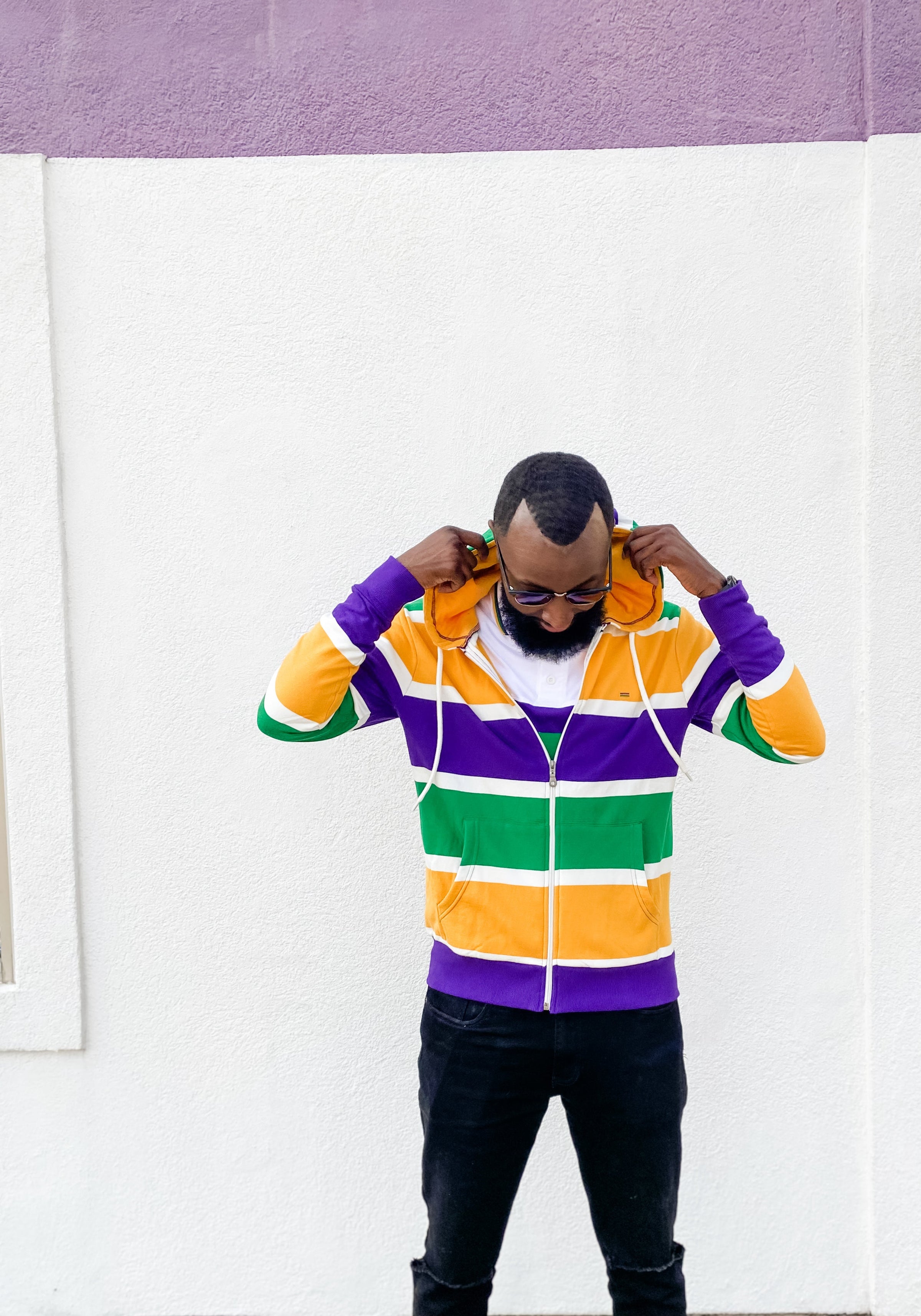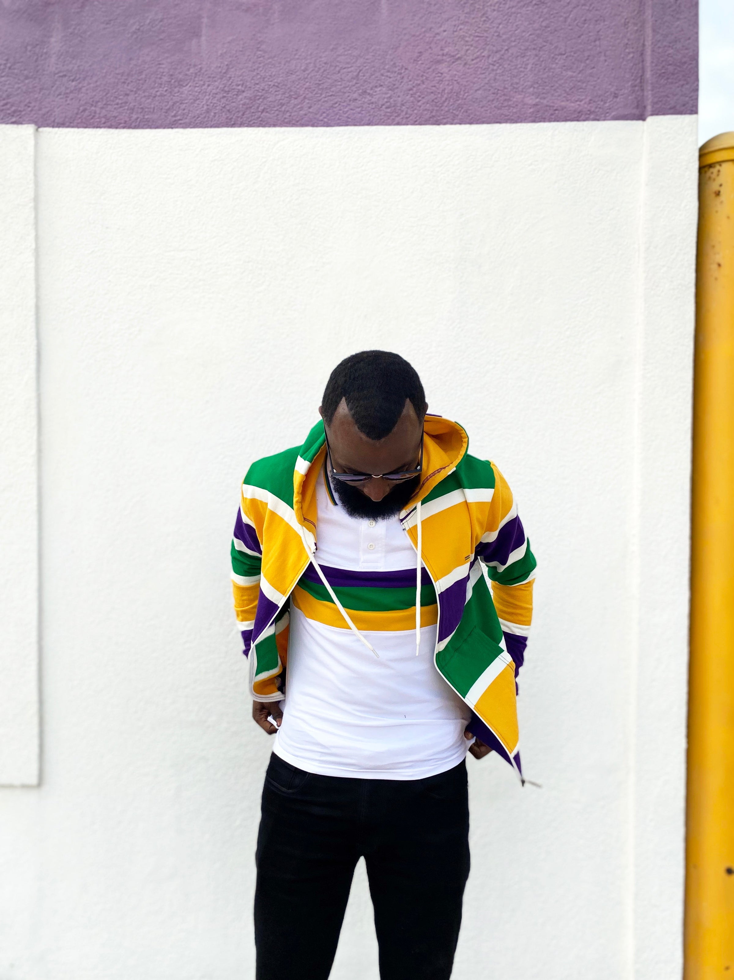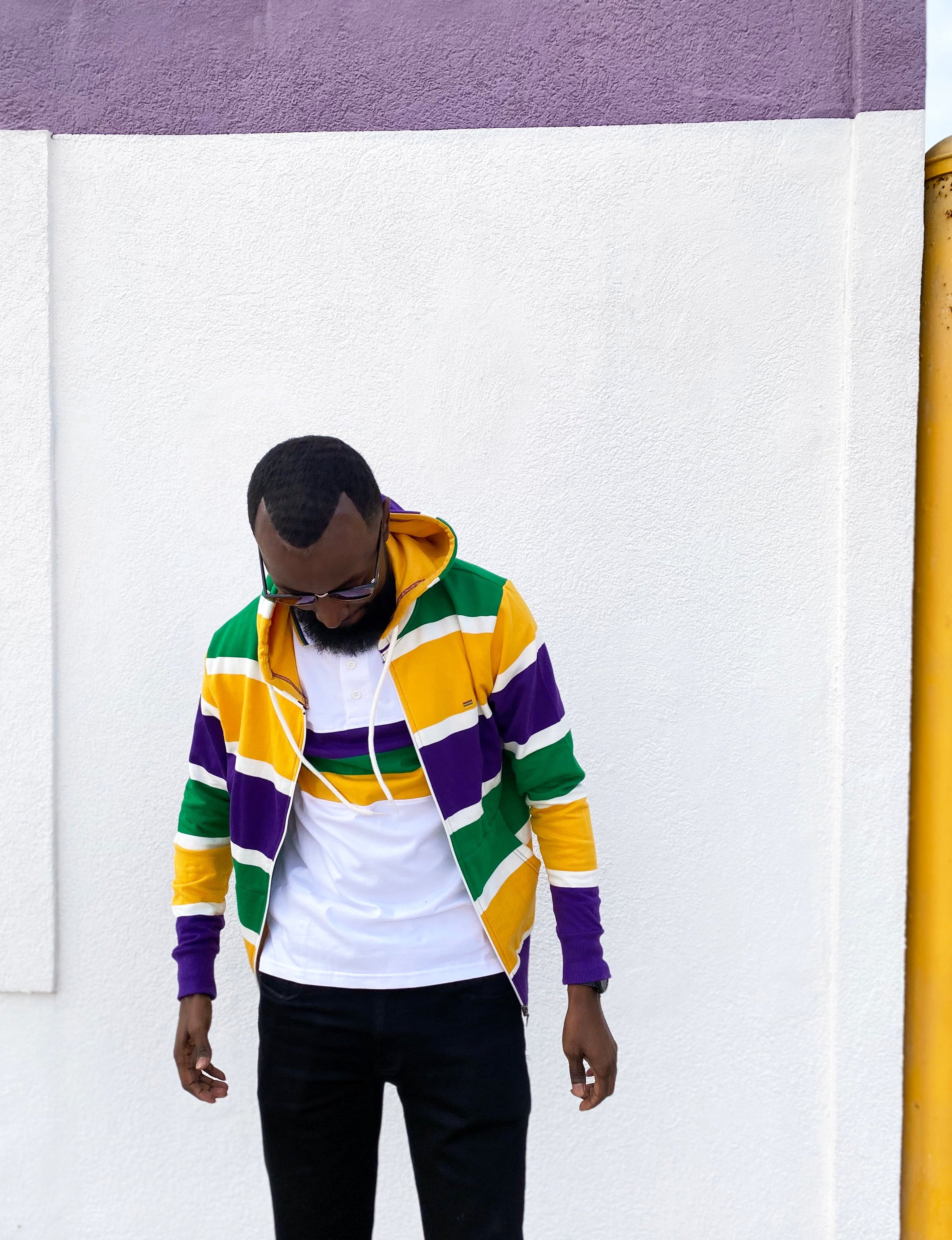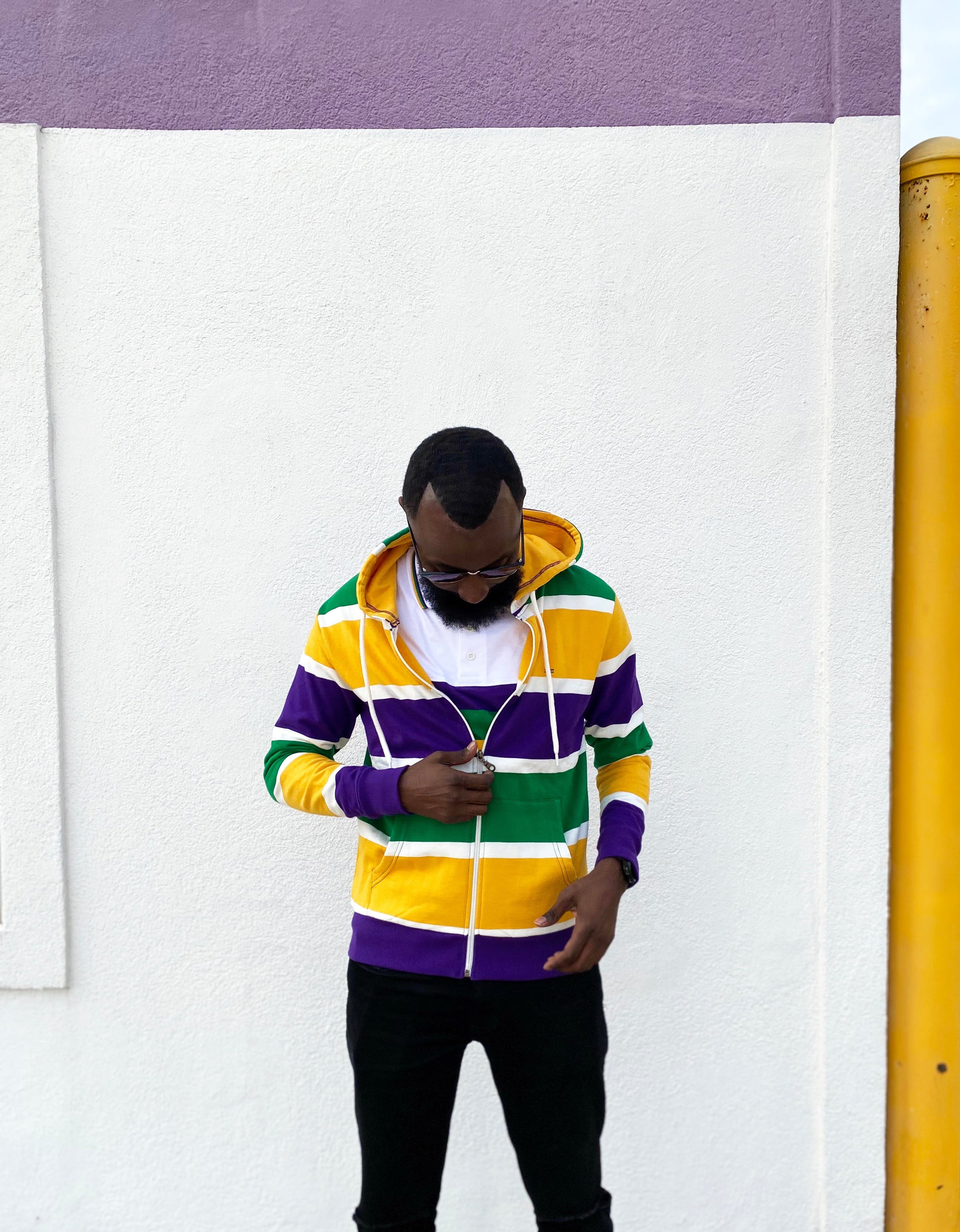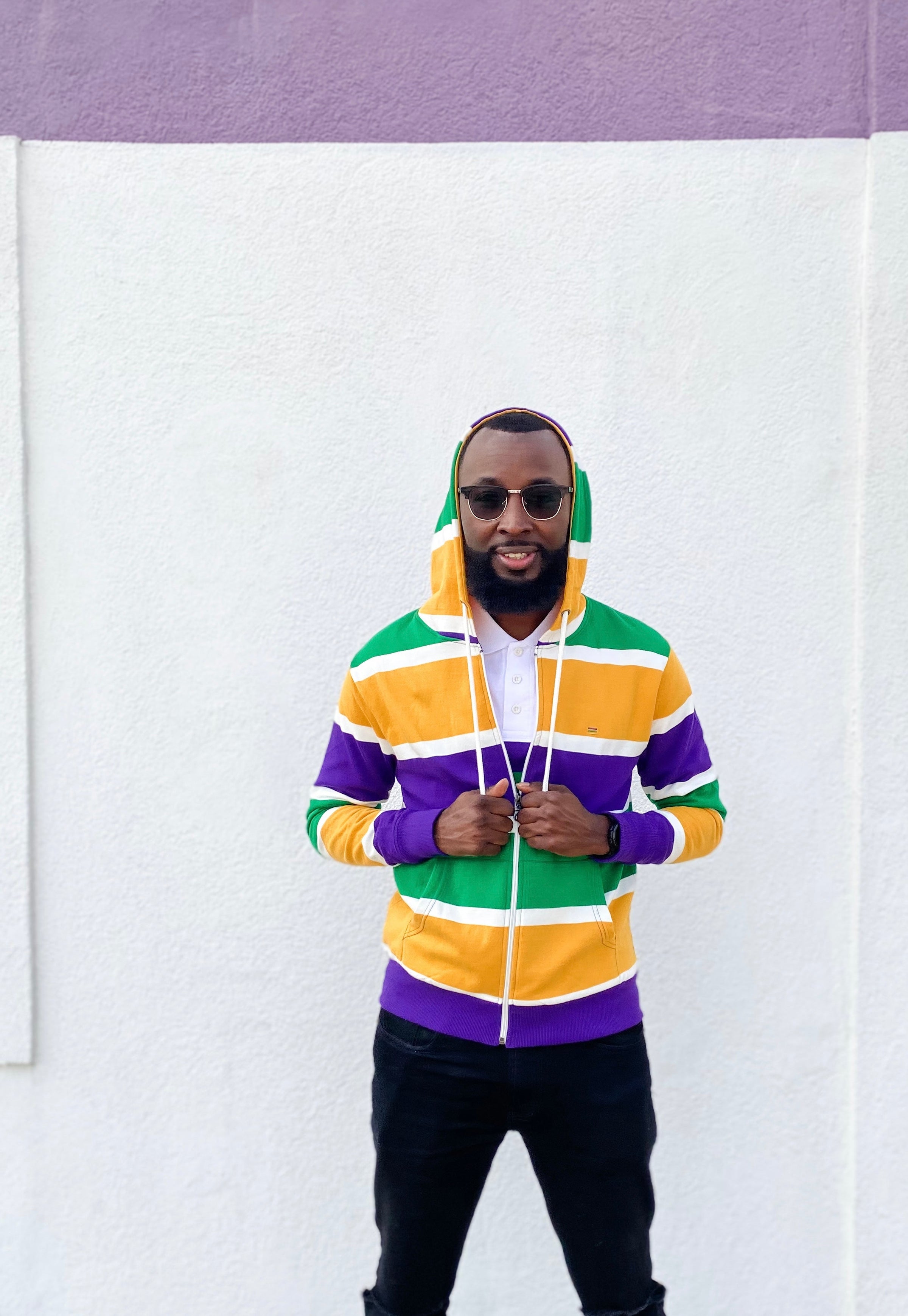 Stay cozy and make a statement with this Thick Stripe Rugby Adult Pullover Hoodie! Featuring purple, green, and gold - perfect for Mardi Gras - you'll be ready to battle cold winter weather AND match your krewe! Get your hoodie and let the good times roll!