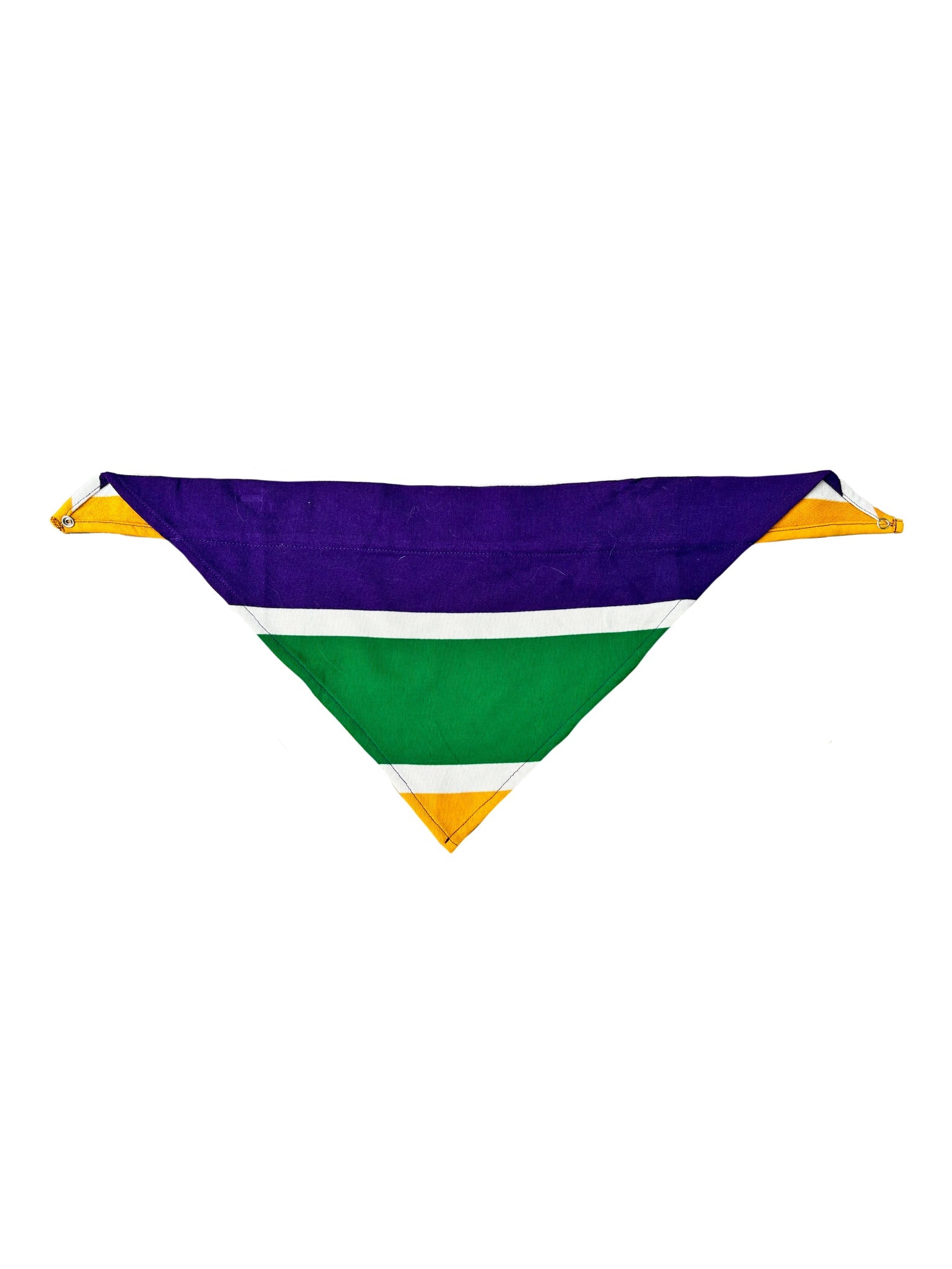 Get ready to party in style with our Thick Stripe Rugby Bandana Scarf! This playful accessory features purple, green, and gold stripes, perfect for any Mardi Gras celebration. Stand out from the crowd with this unique and trendy scarf.