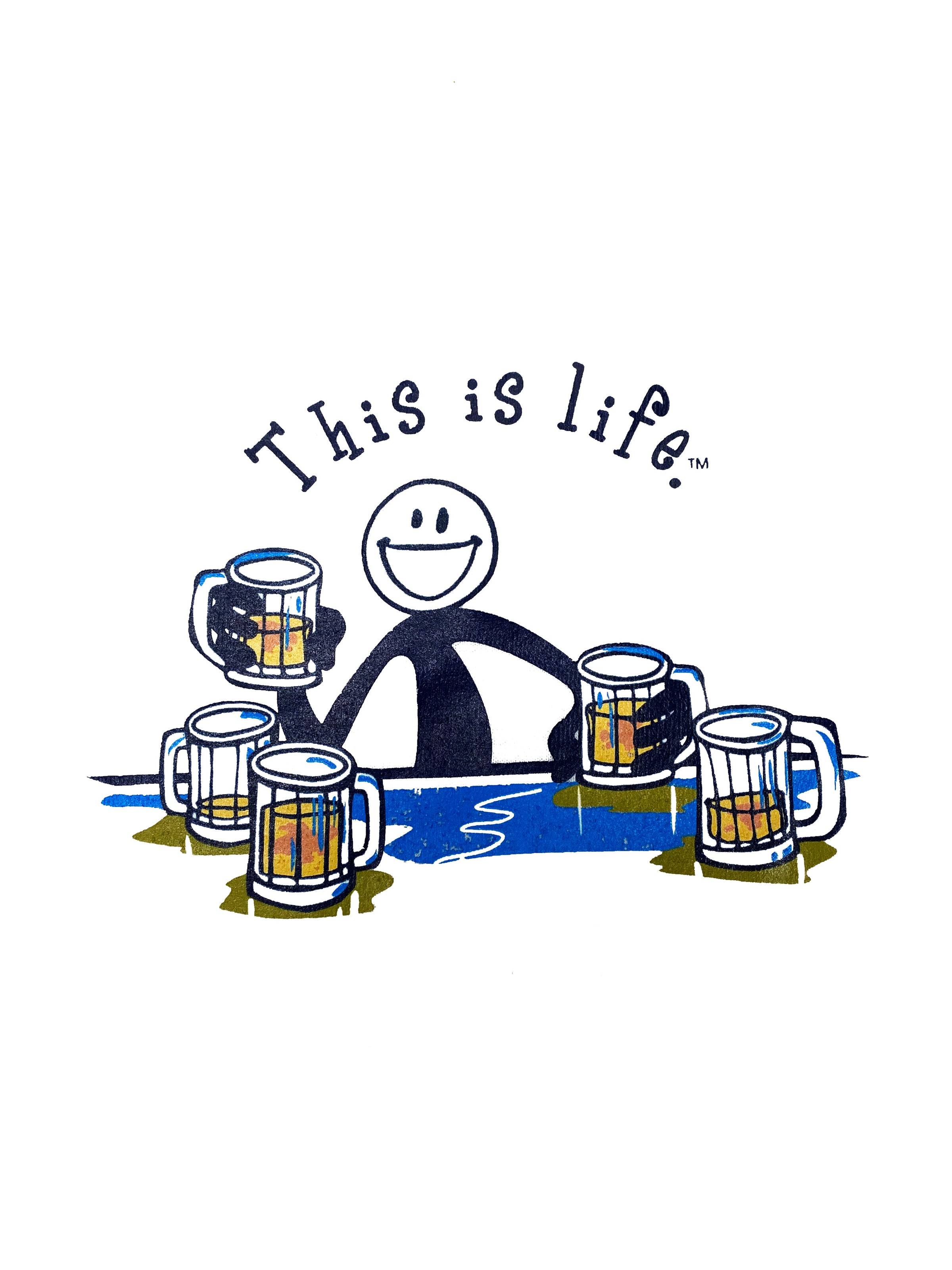 Get ready to raise a glass and celebrate with our "This is Life" beer t-shirt! Featuring a stick man surrounded by beer steins, this shirt is perfect for any beer lover or Oktoberfest enthusiast. Cheers to good times and good brews!