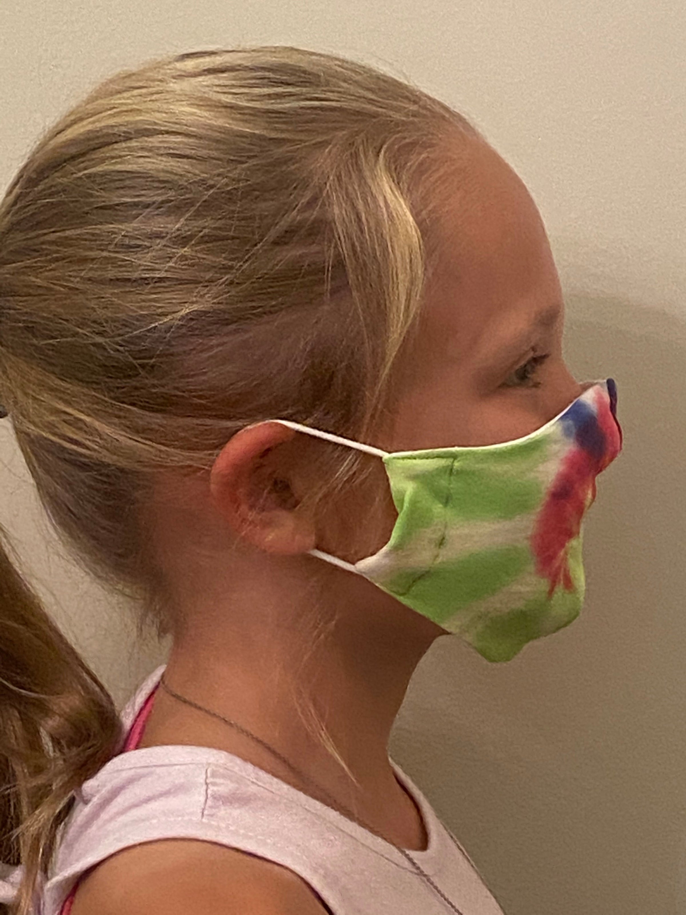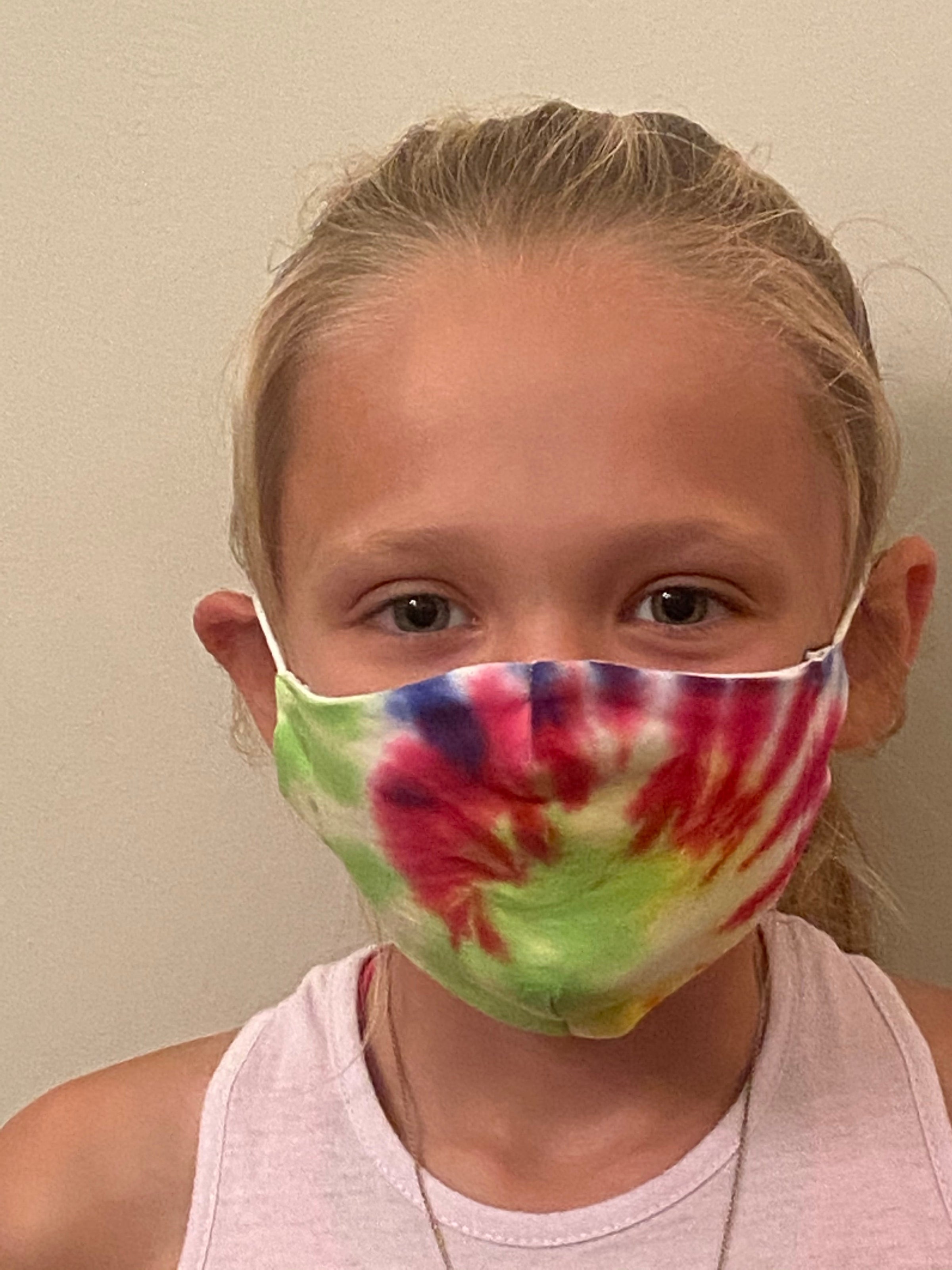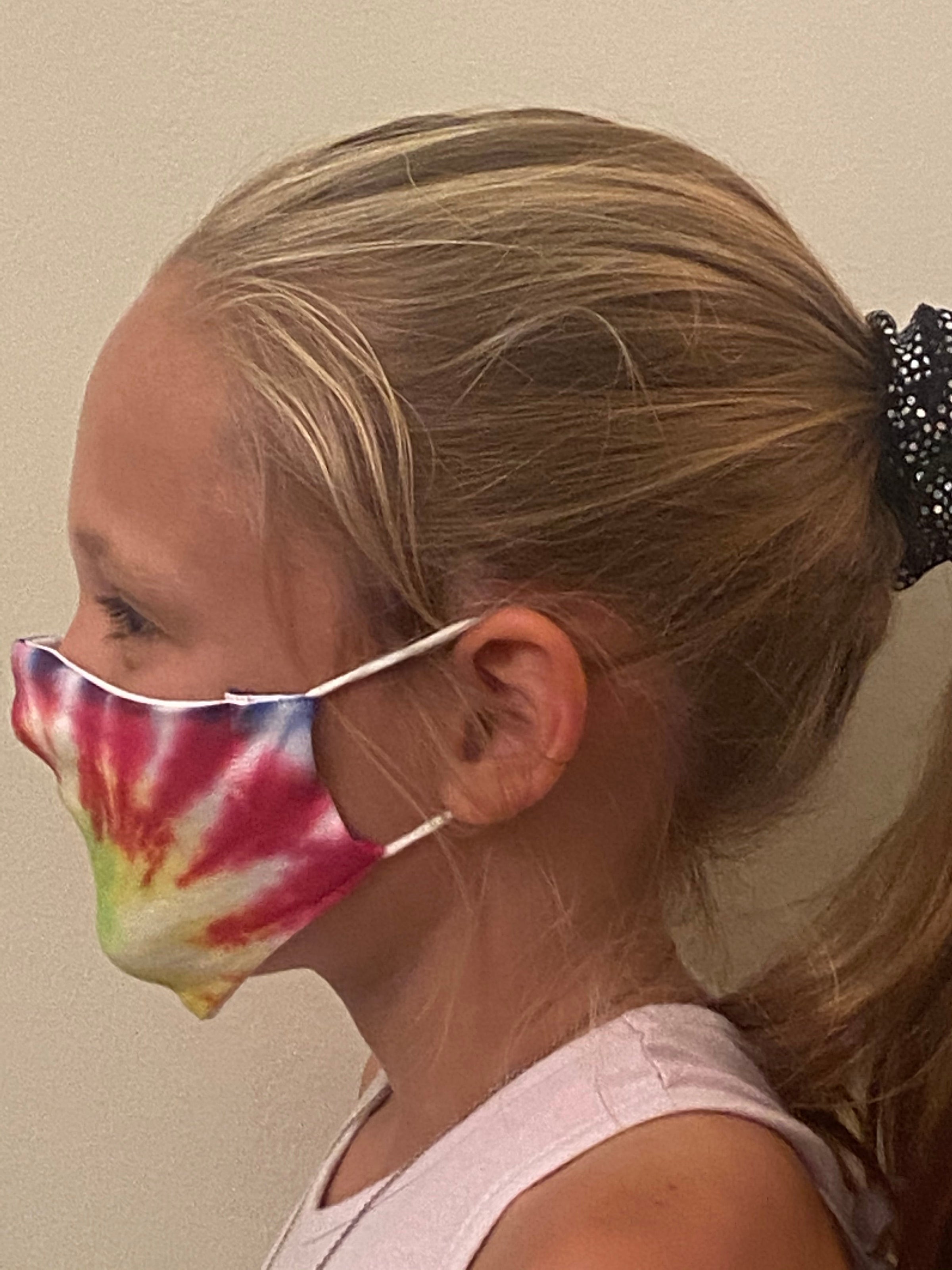Mask Up in style! This Kids reusable face mask is a colorful tie dye and features ear loops.