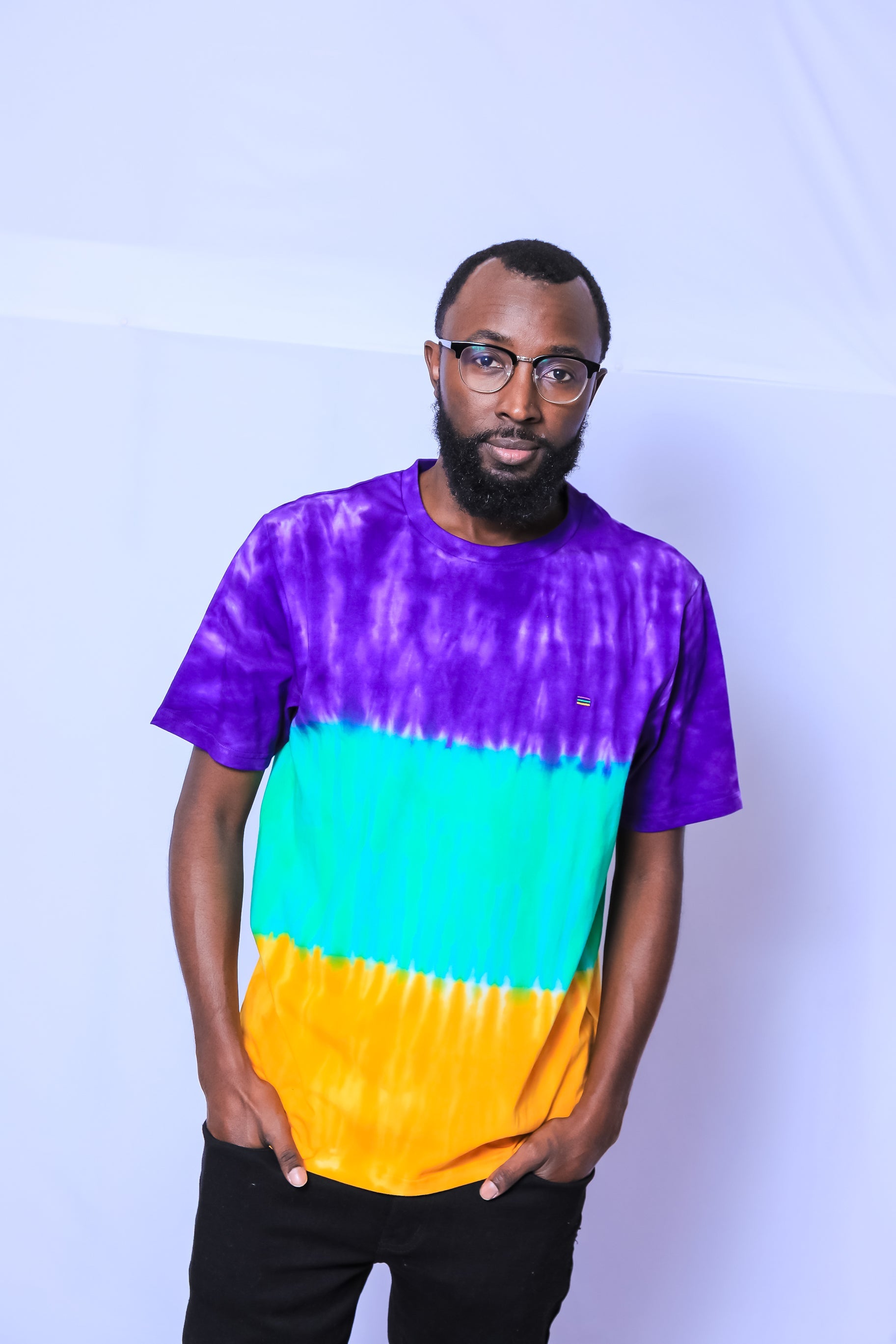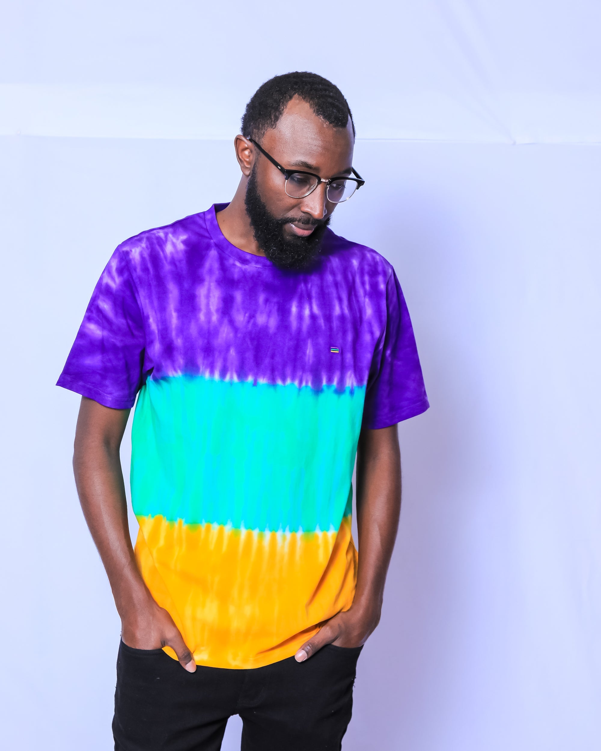 Celebrate Mardi Gras with this stylish tie dye short sleeved Mardi Gras shirt. This shirt features purple, green and gold tie dye striped print.