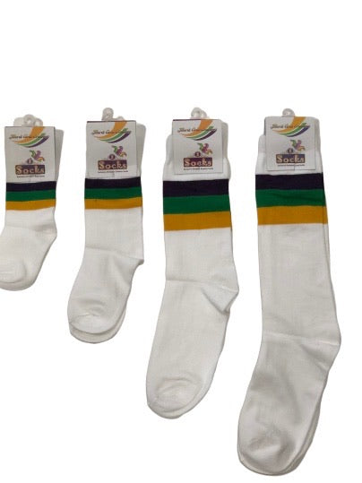 White Socks with Purple Green Gold Stripes (Infants, Kids, and Adults)