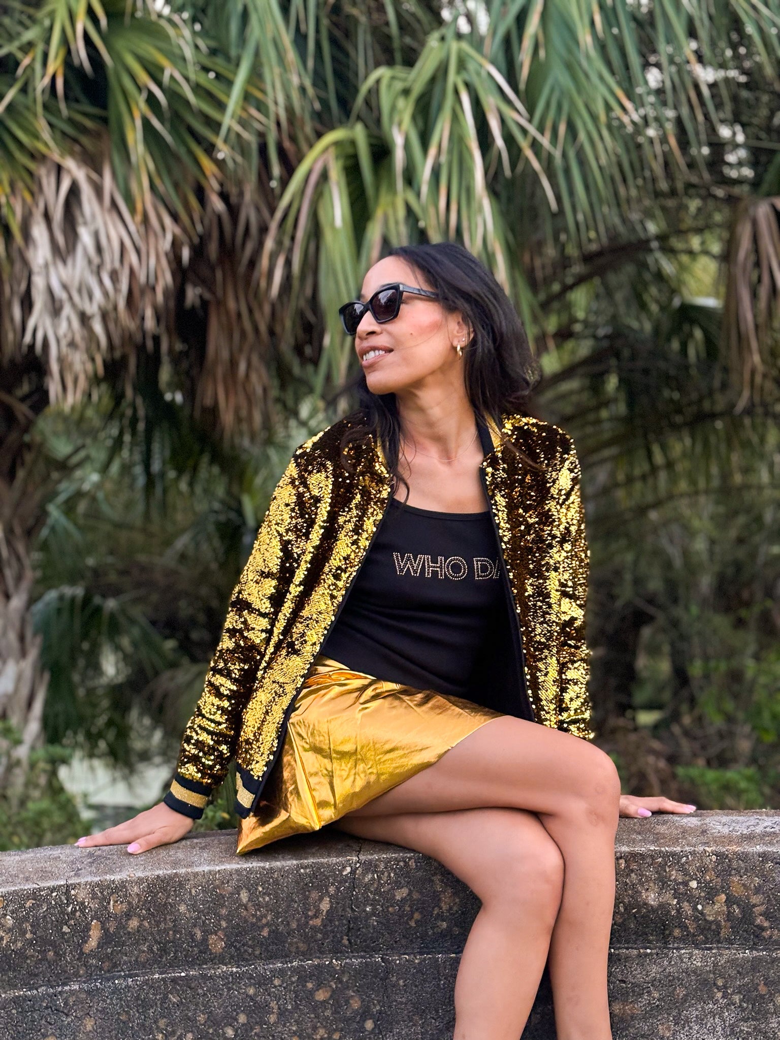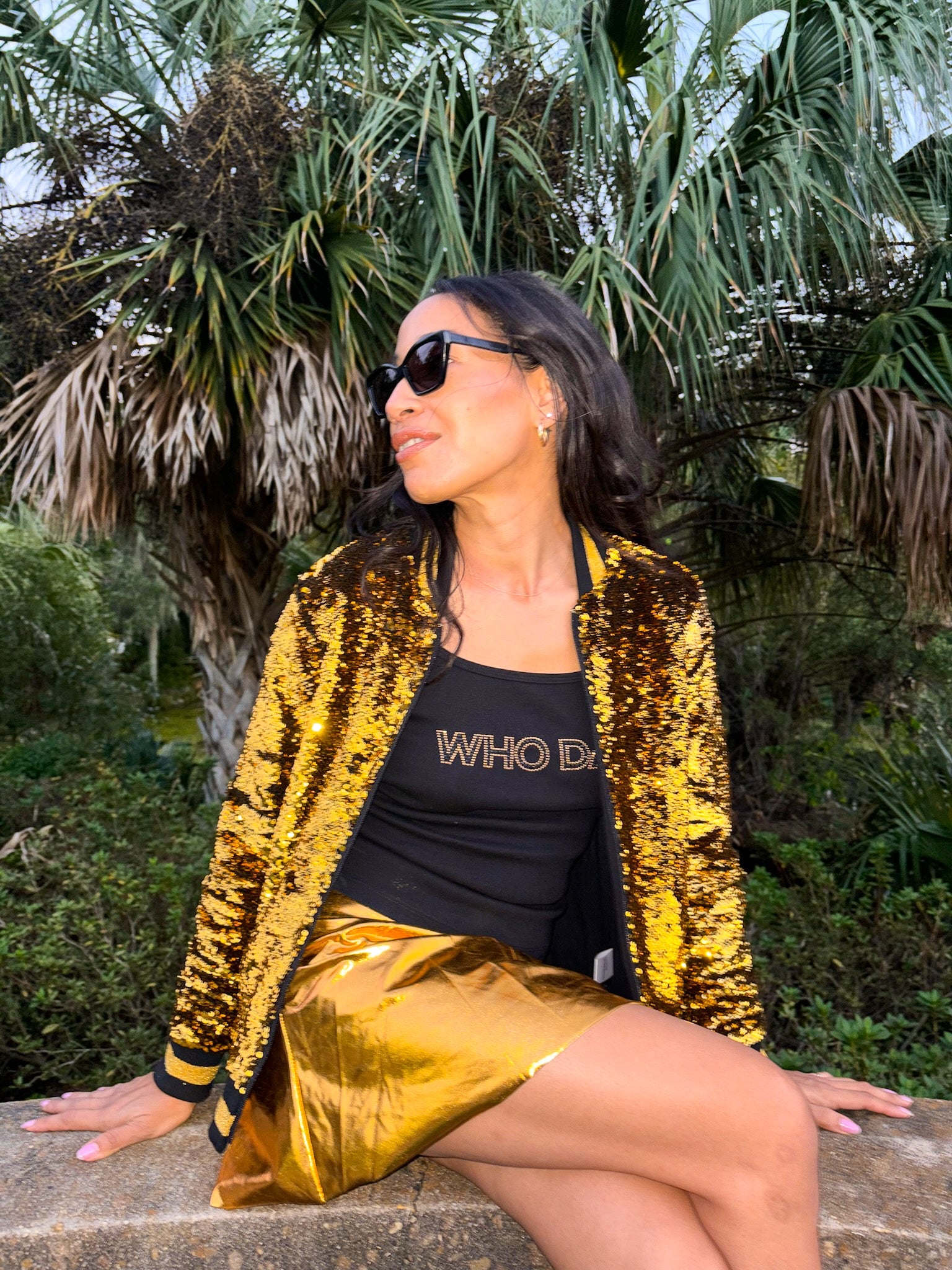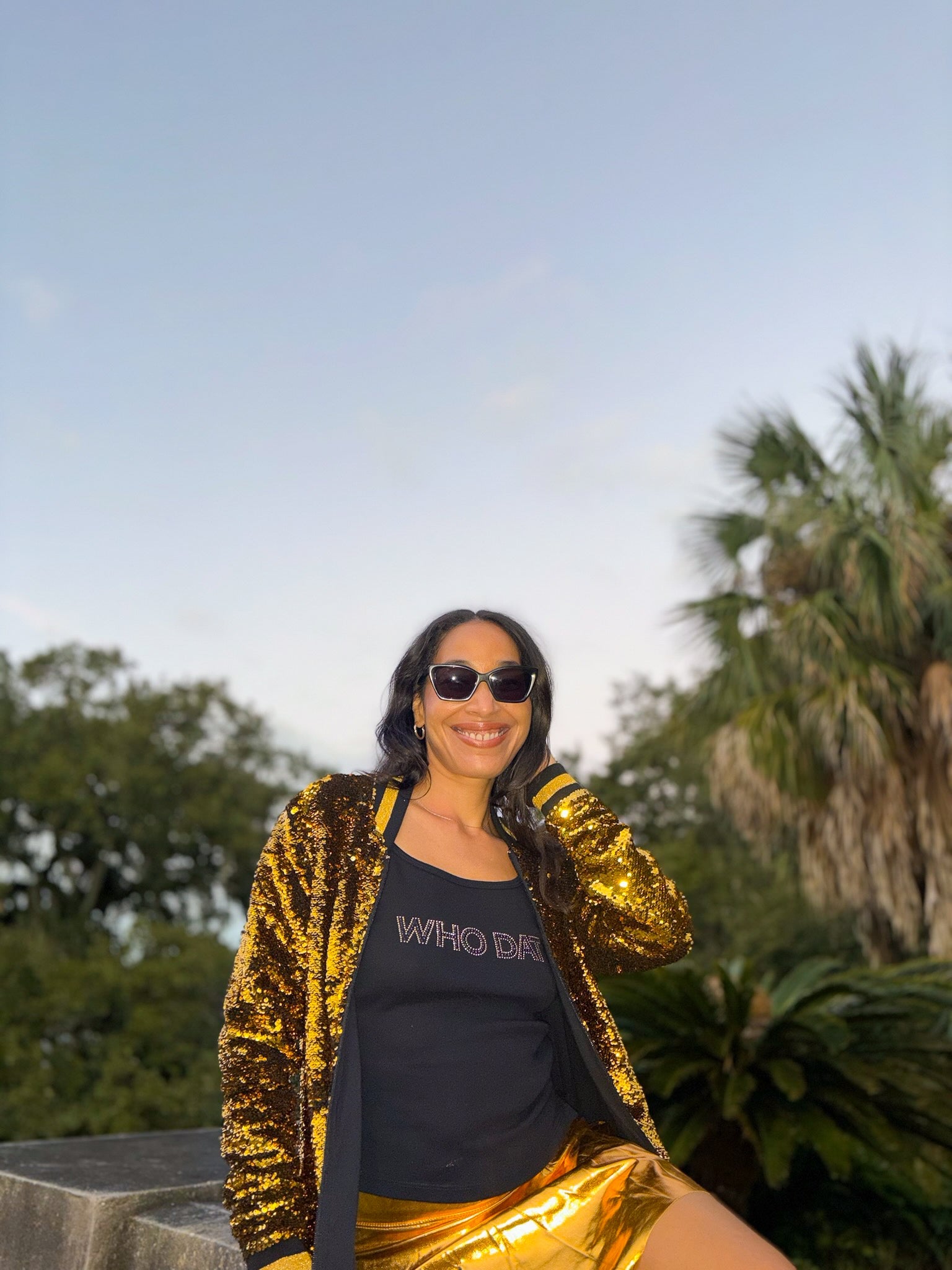 Get ready to cheer on your team in style with our playful and quirky Who Dat Rhinestone Camisole Tank! Perfect for game day, this tank proudly displays your love for the Saints and football with a touch of black and gold bling. Join the fun and show off your team spirit!