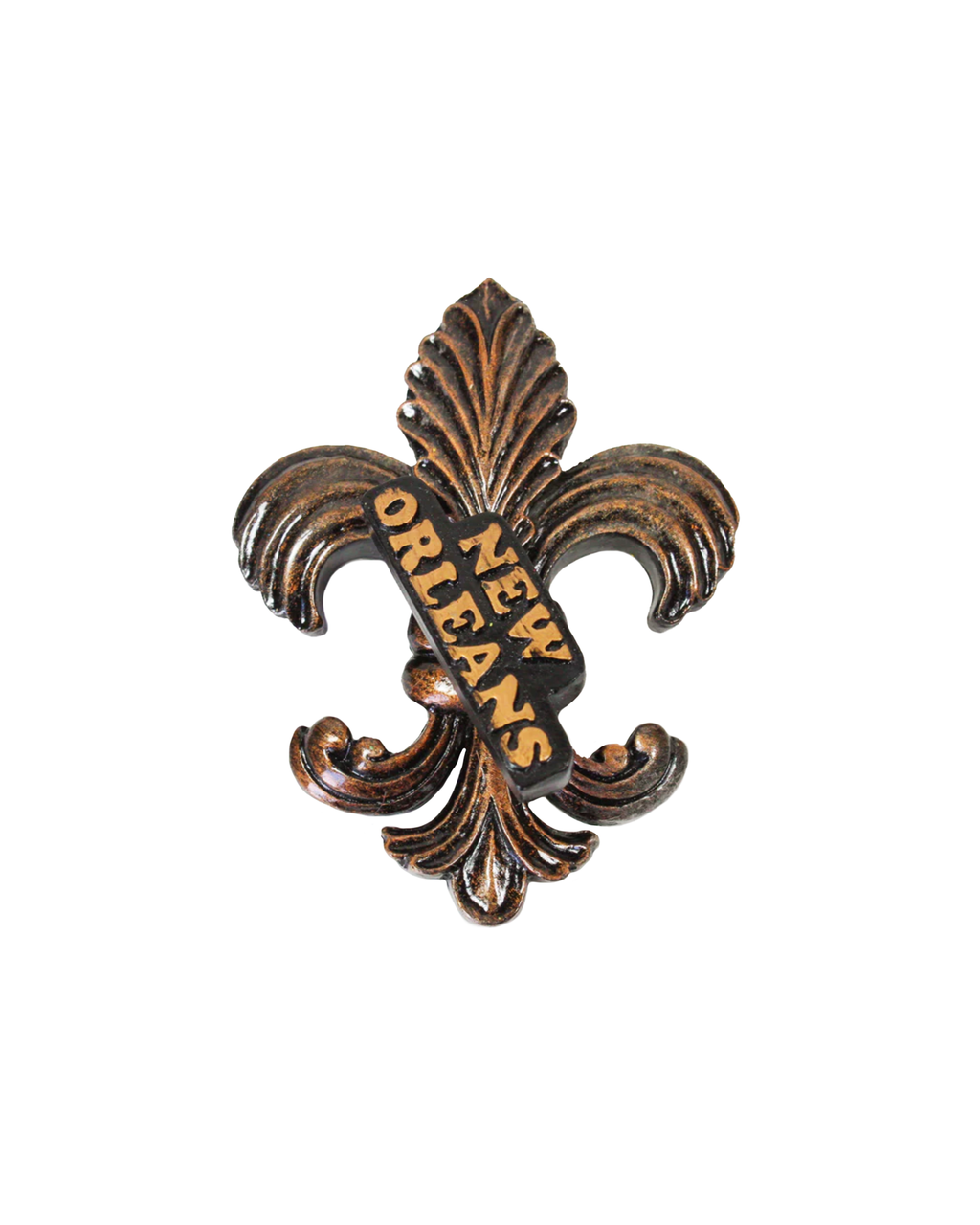 Bronze Fleur de Lis with Diagonal New Orleans Magnet