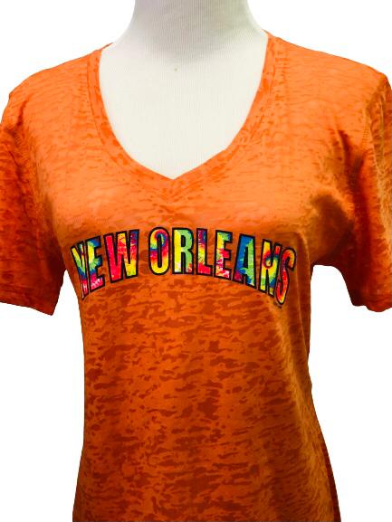New Orleans Tie Dye Orange Burnout T-Shirt