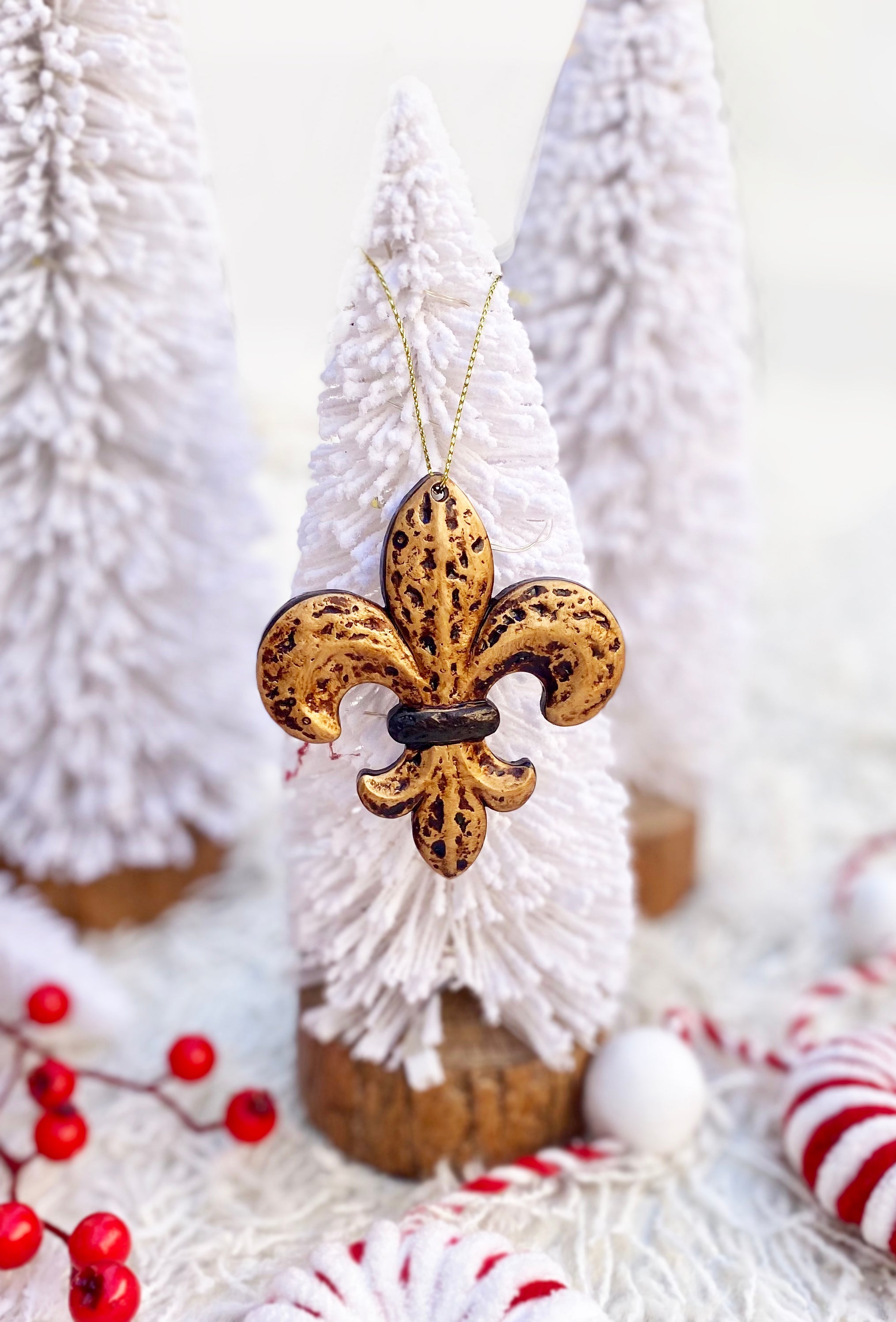 This is a lovely burnished gold painted fleur de lis keepsake ornament and makes a great gift for any occasion!