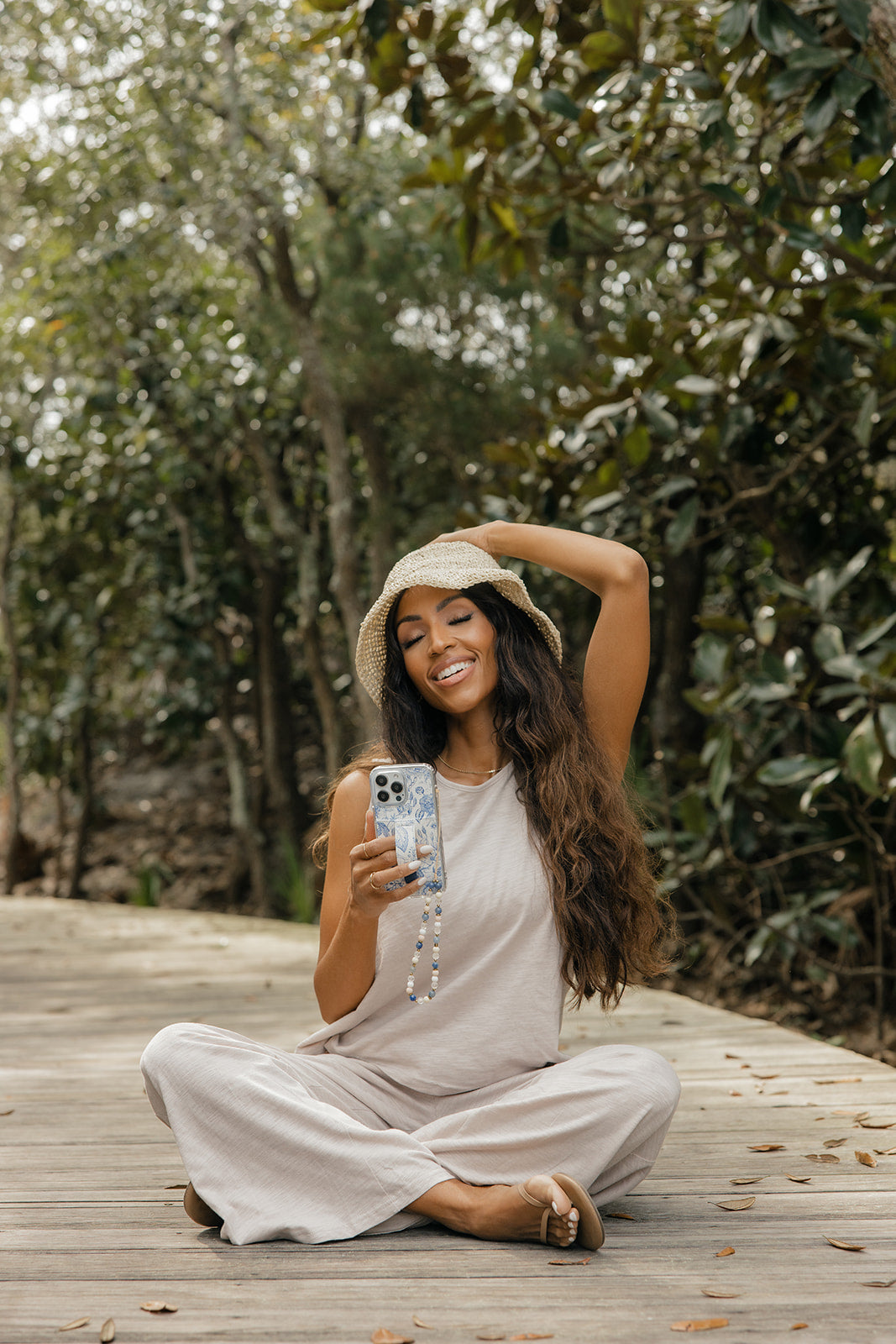 Add this neutral beaded wristlet to your Walli Case for hands-free carrying!