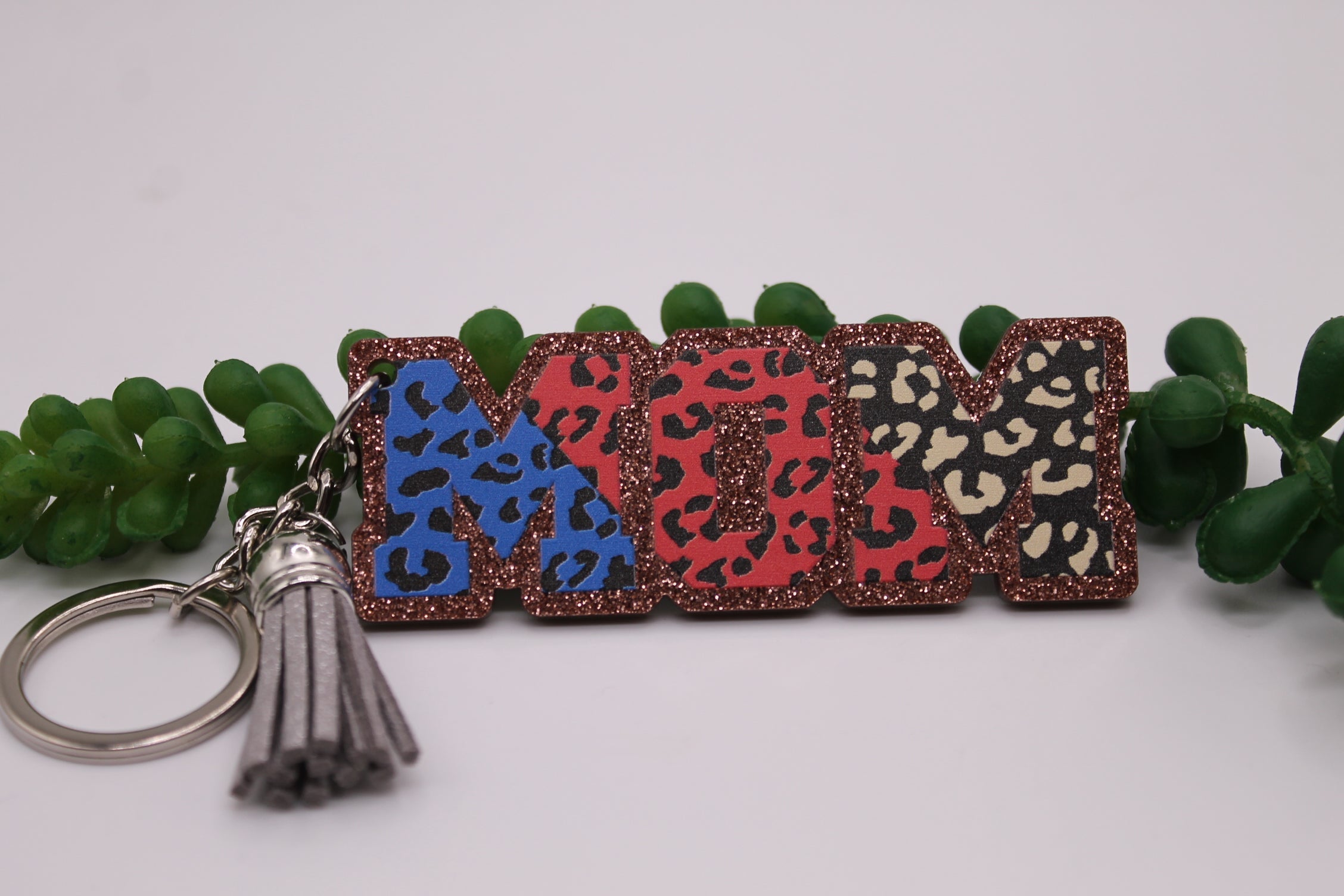 Brown Glitter MOM Leopard || Tassel Keychain