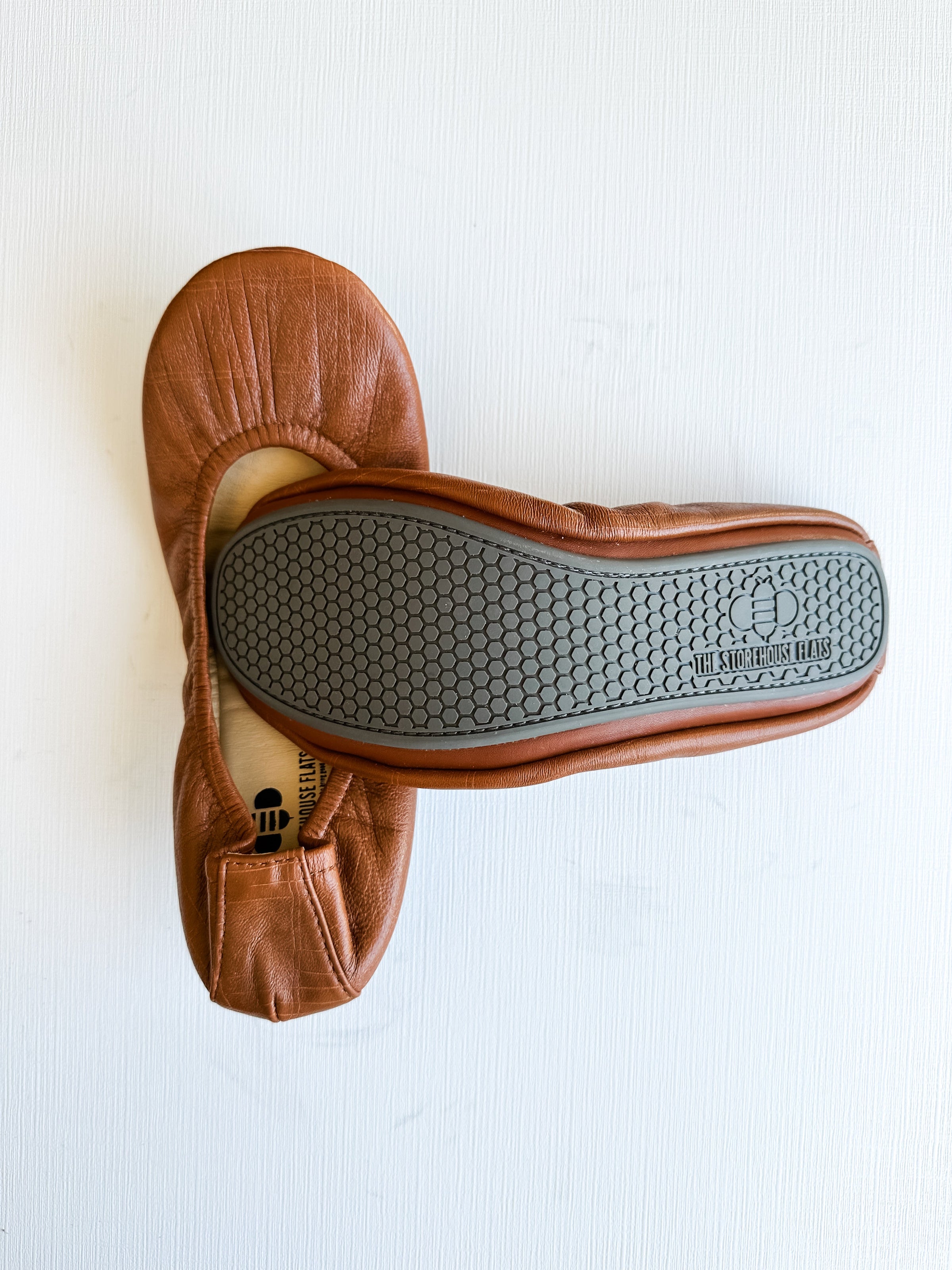All of our The Storehouse Flats ballet flats feature a full coverage flexible sole! Comfort is our number one priority and this new sole checks that box. Not only is it comfy but the flats are foldable for easy travel and storage. The Storehouse Signature Collection is the softest leather we could find, with a slightly embossed texture.