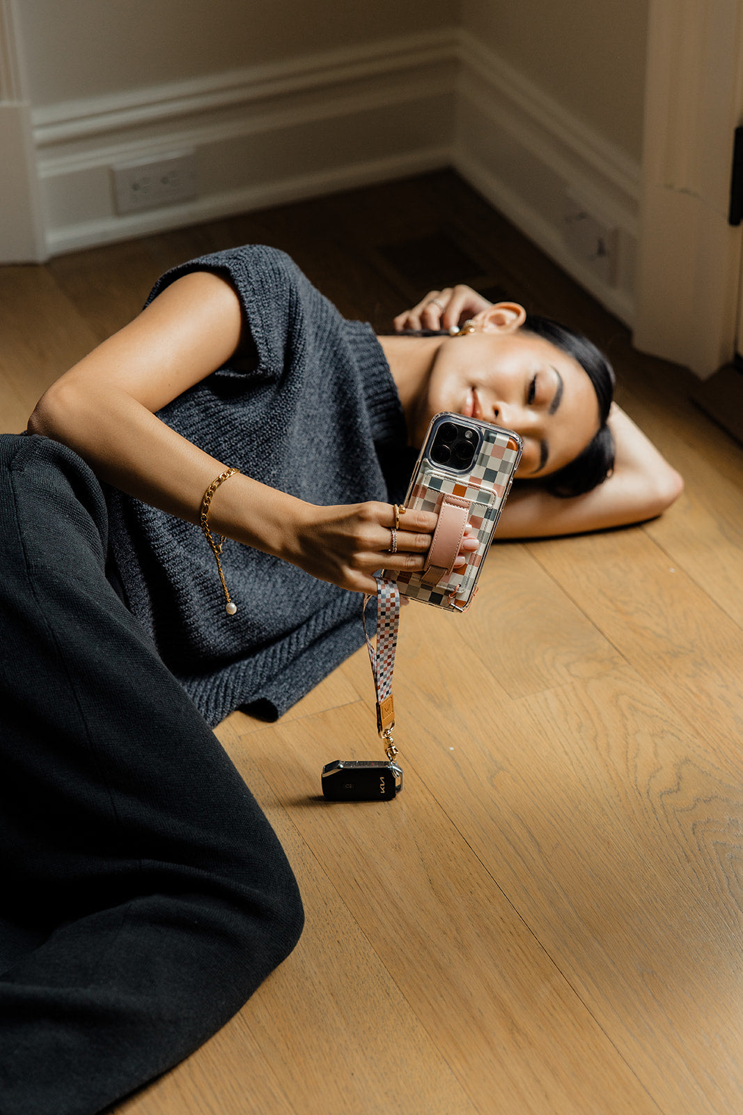 Hang tight to your possessions with the Coastal Check wrist lanyard. It is perfect to keep track of your keys and other accessories. Complete the trio with the coordinating Coastal Check case and Apple watch band!